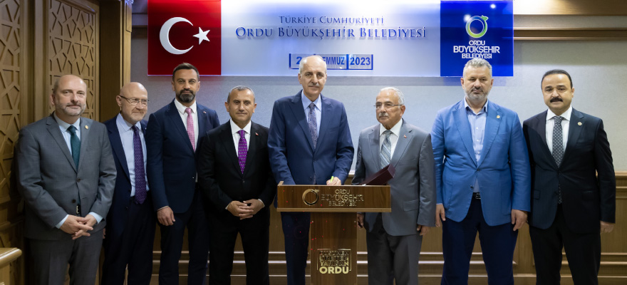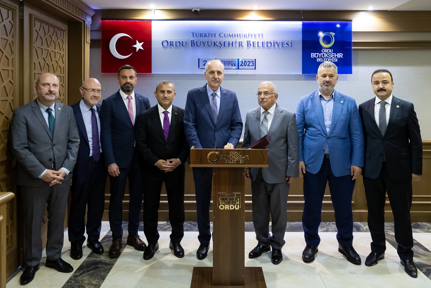 Ordu Büyükşehir Belediyesi'ni ziyaret eden Meclis Başkanı Kurtulmuş, Belediye Başkanı Mehmet Hilmi Güler ile görüştü.