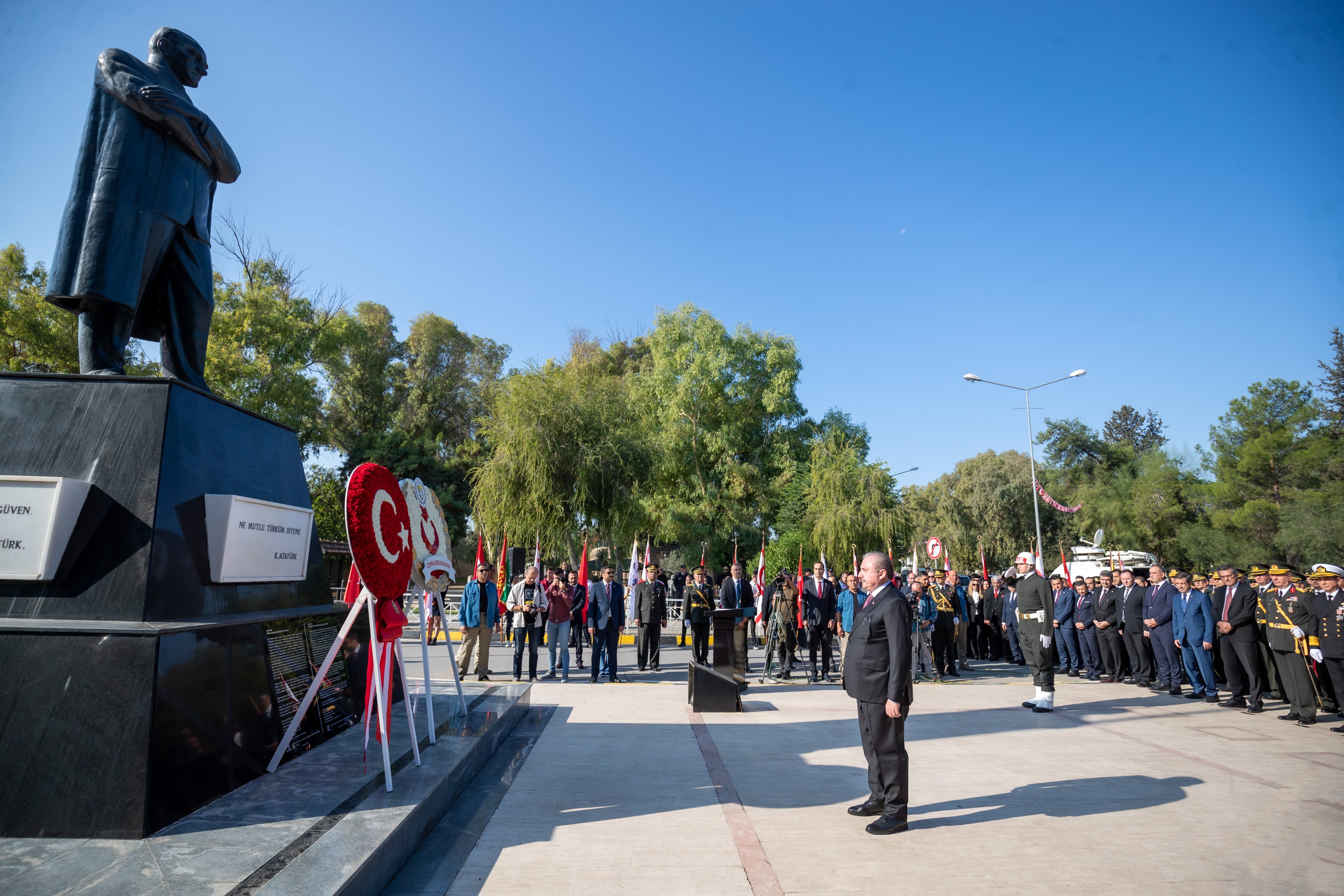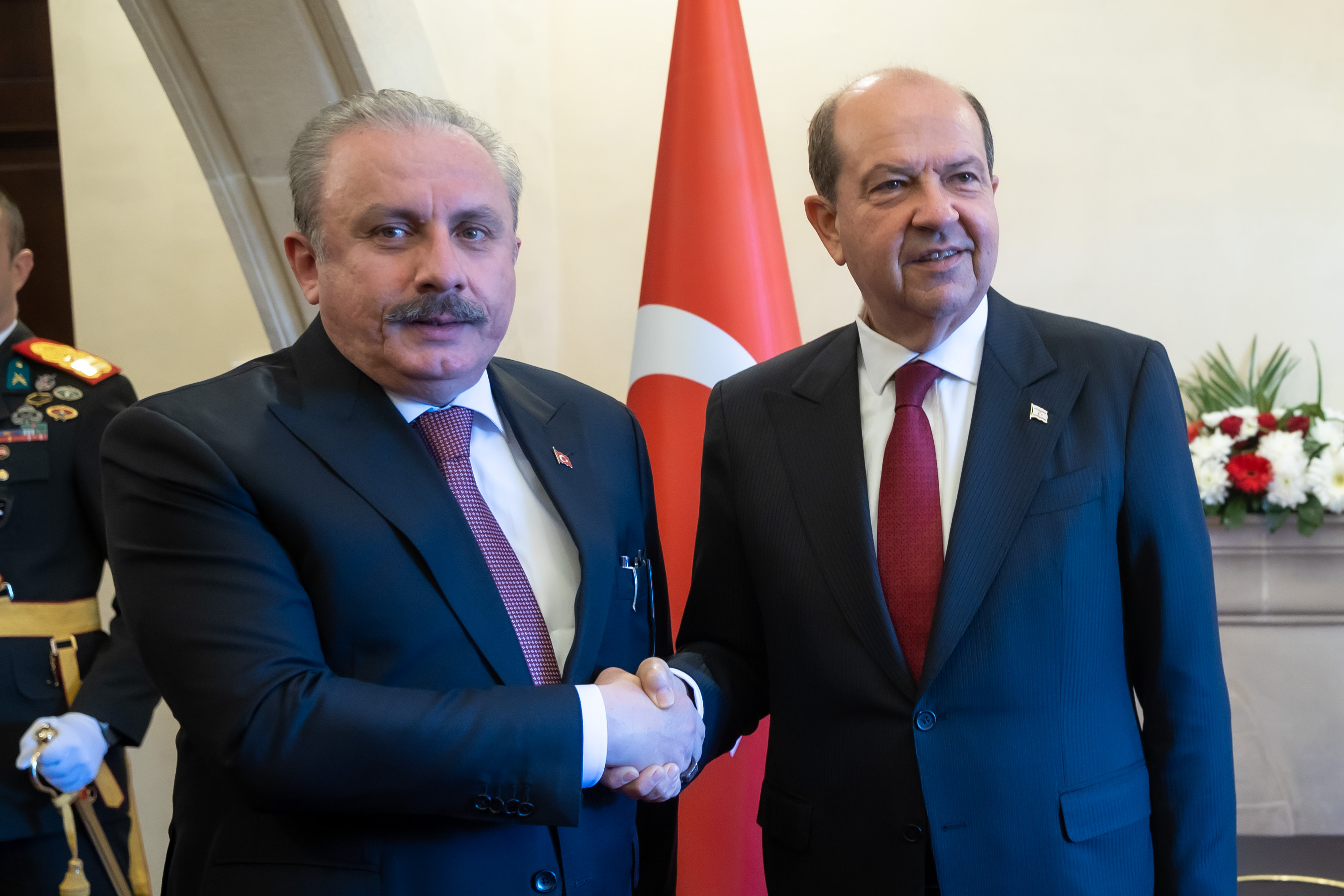 Cumhurbaşkanı Recep Tayyip Erdoğan'ı temsilen KKTC'nin 39. Kuruluş yıl dönümü törenlerine katılan TBMM Başkanı Mustafa Şentop, ilk olarak KKTC Cumhurbaşkanı Ersin Tatar'ın tebrikleri kabul törenine iştirak etti. Ardından Lefkoşa Atatürk Anıtı'ndaki tören gerçekleştirildi.