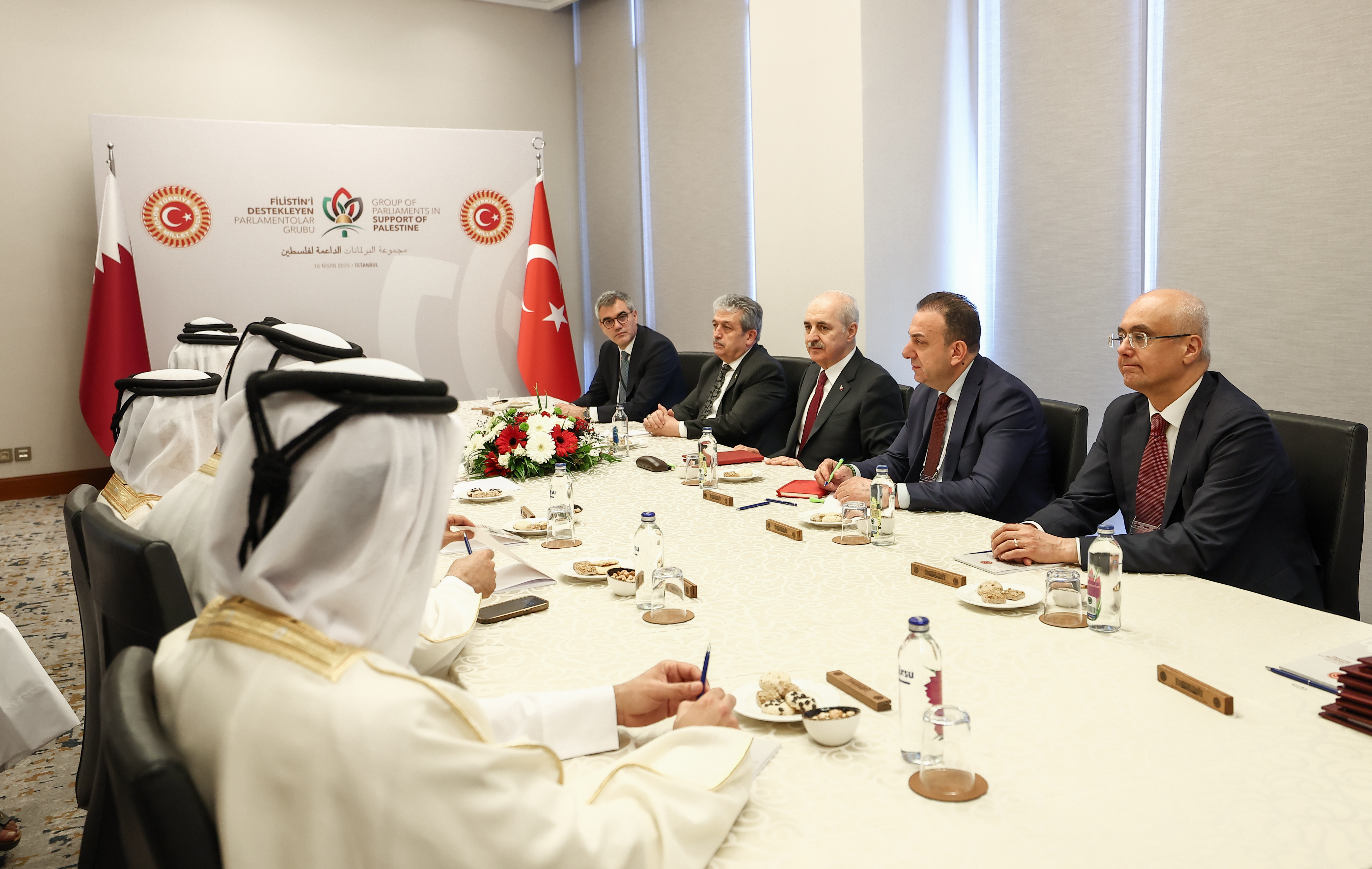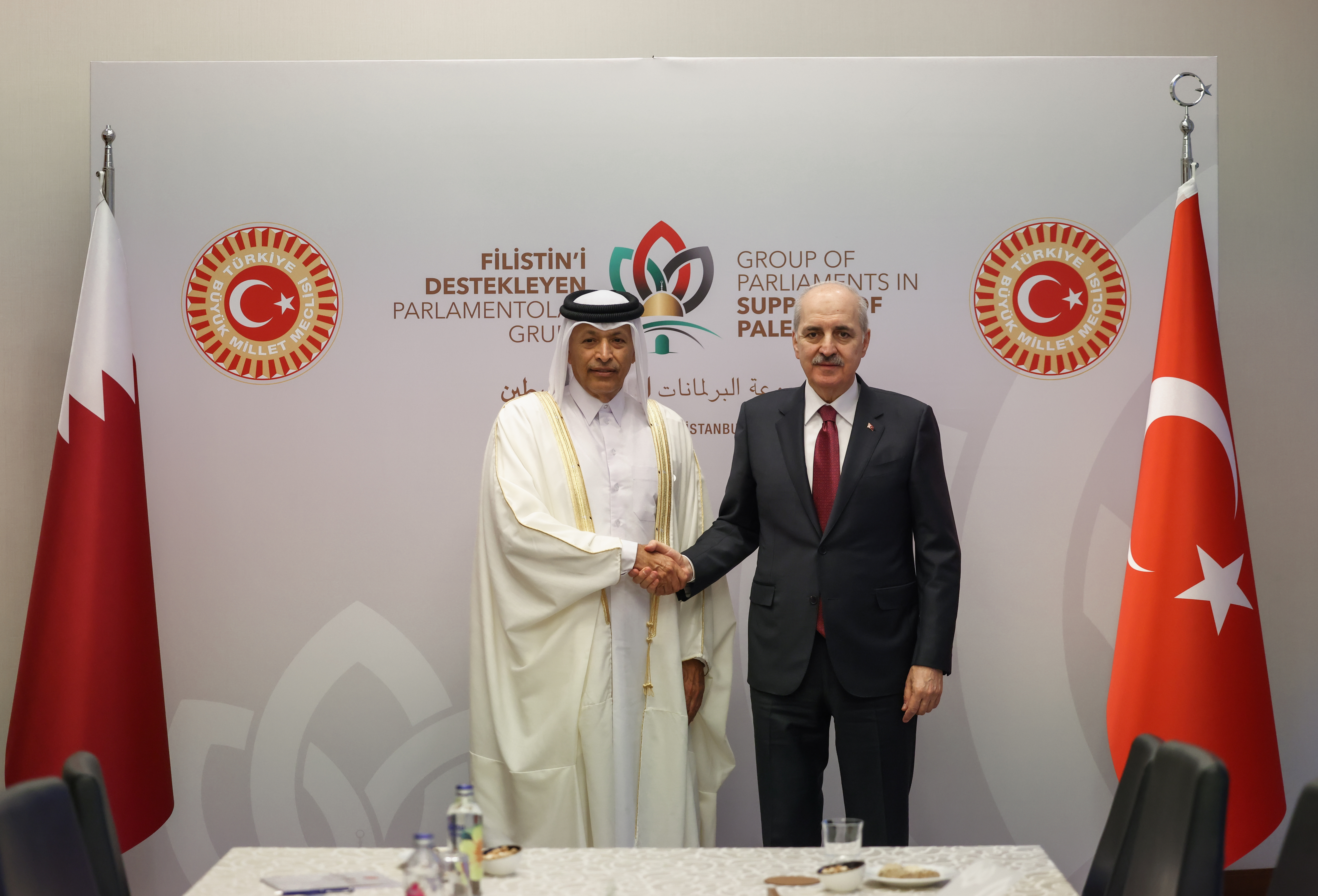 TBMM Başkanı Kurtulmuş, İstanbul’daki Conrad Otel'de gerçekleşen görüşmede, Filistin davasının bayraktarından birisinin Katar olduğunu belirterek, Katar’ın Filistin davası için verdiği destek dolayısıyla teşekkür etti.