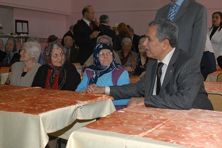 Eşi Münevver Arınç ile birlikte huzurevine gelen TBMM Başkanı Arınç, protokol için ayrılan bölüme oturmak yerine, yaşlılarla birlikte yemekhane sandalyelerinde oturarak programı izledi.