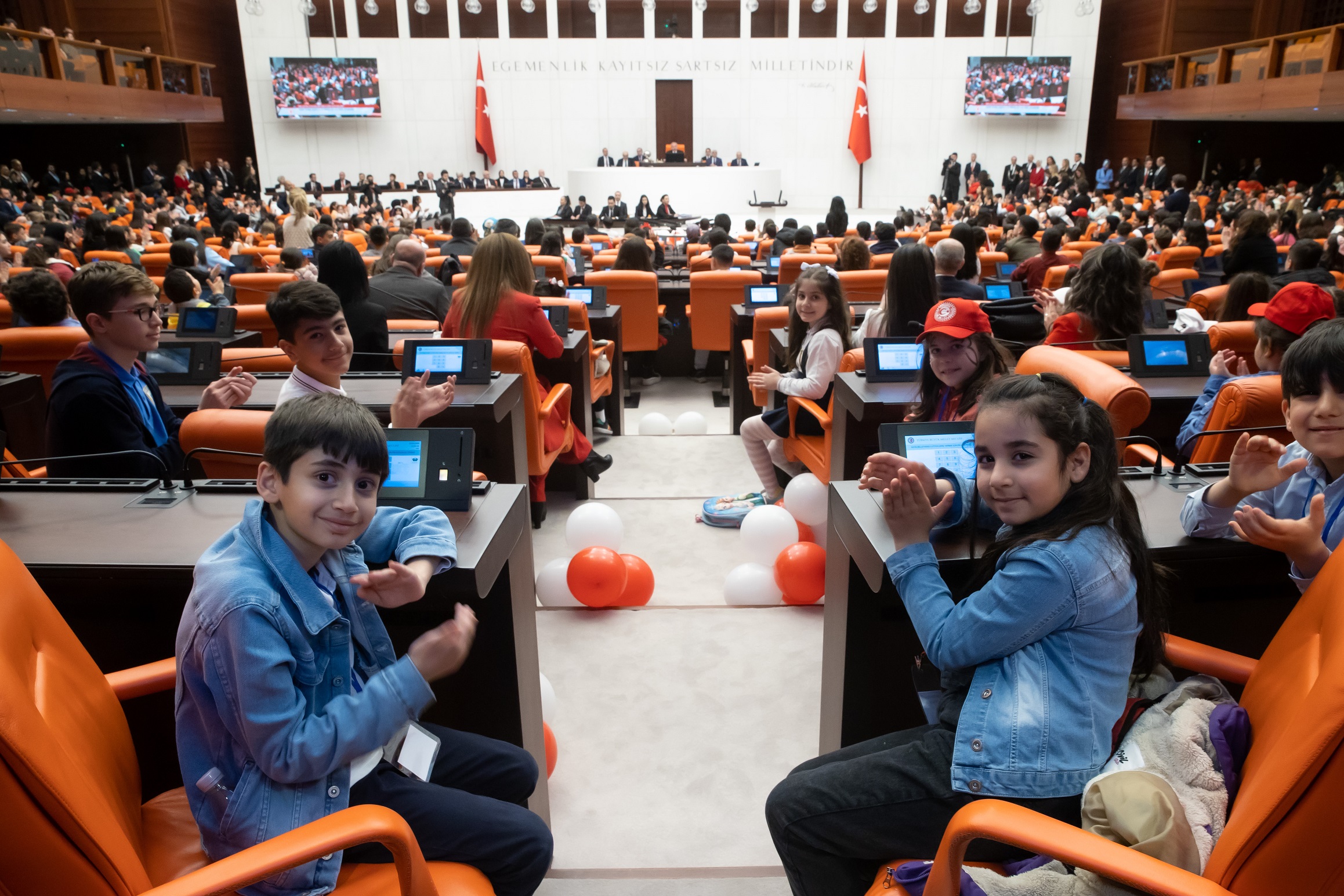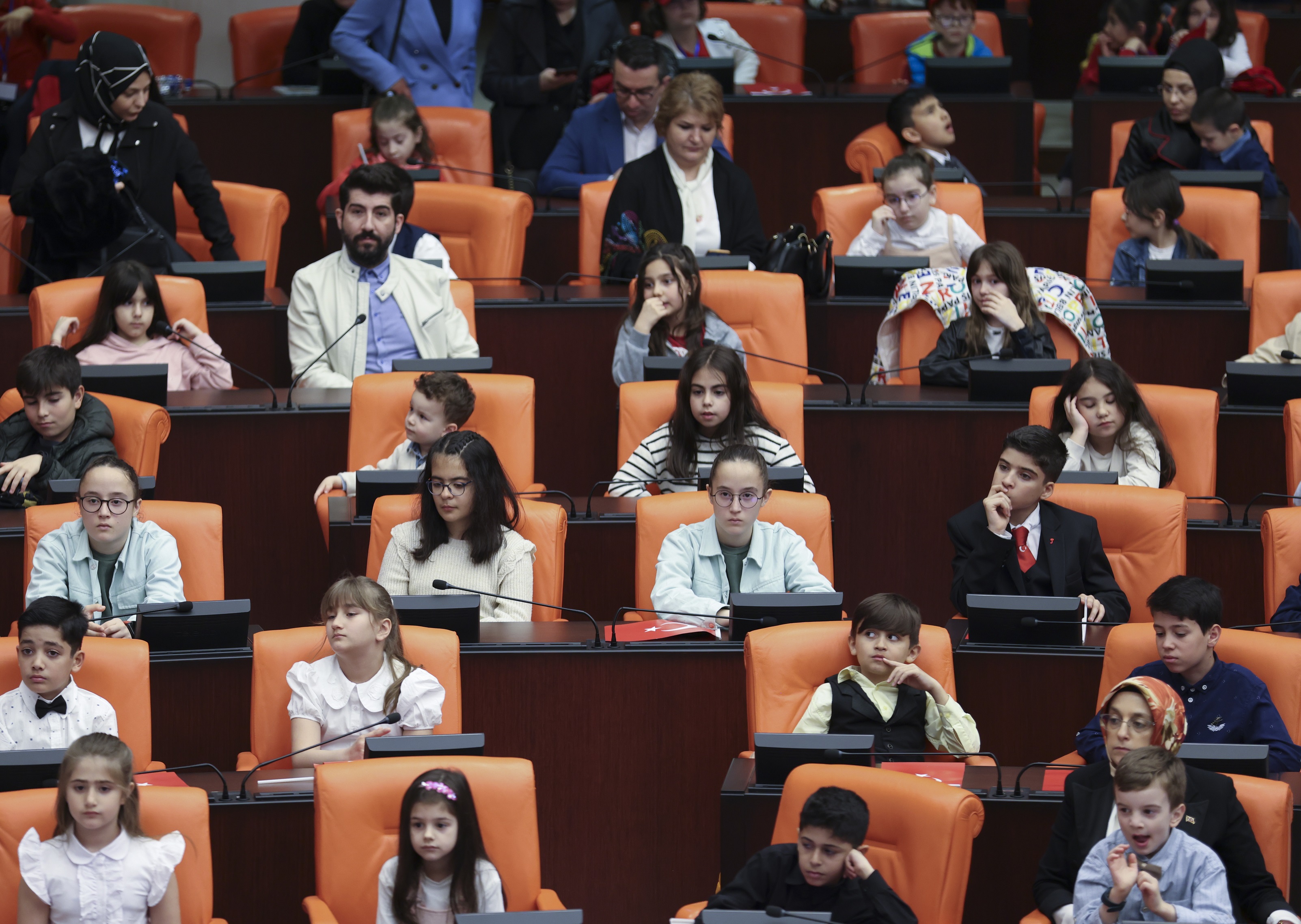TBMM'nin açılışının 103. yılı dolayısıyla katılımcıların çoğunu depremzede çocukların oluşturduğu çocuk özel oturumu gerçekleştirildi.