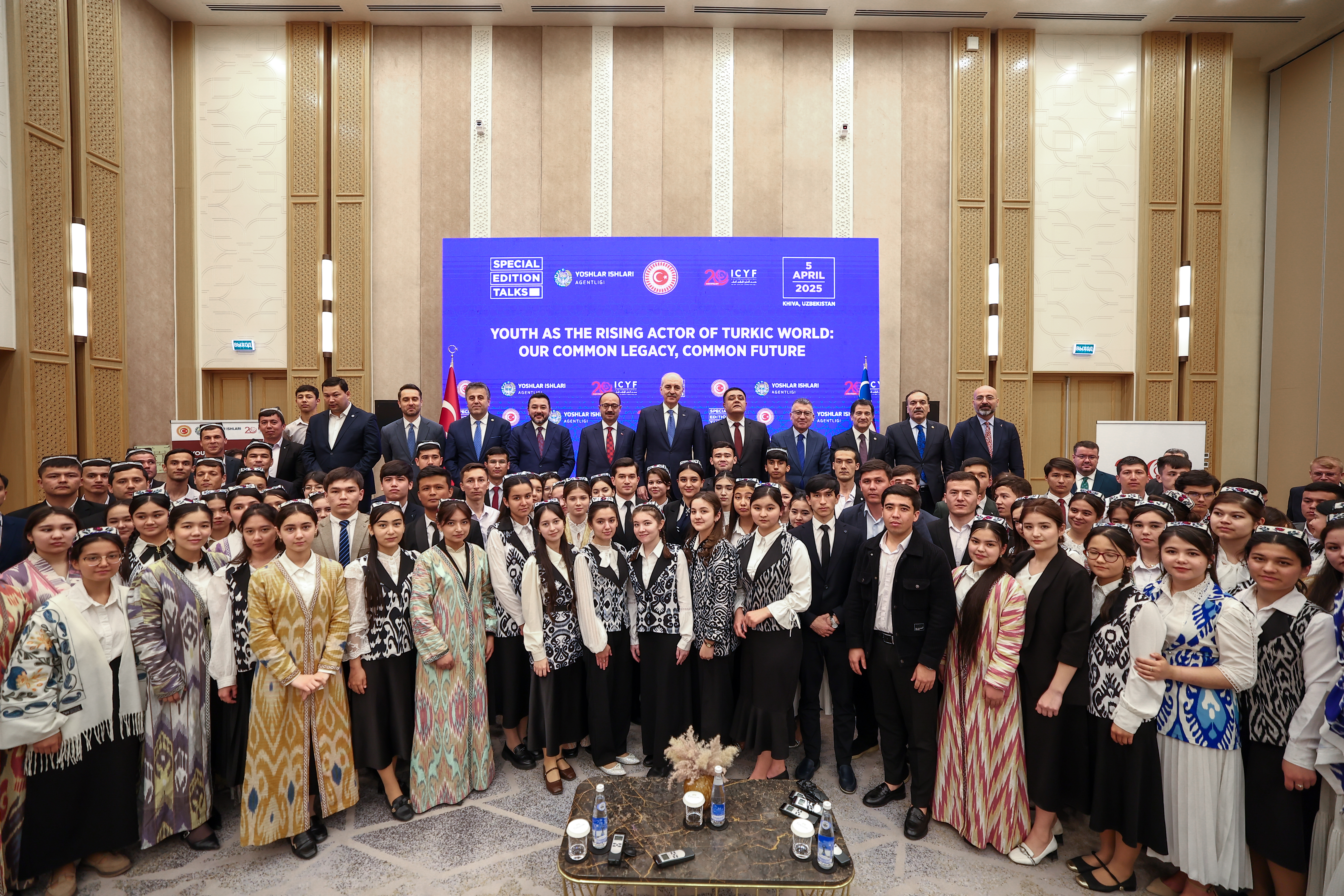 Kurtulmuş, resmi ziyaret gerçekleştirdiği Özbekistan’ın Hive şehrinde İslam İşbirliği Gençlik Forumu (ICYF) tarafından düzenlenen “Türk Dünyasının Yükselen Yıldızı Olarak Gençlik: Ortak Mirasımız, Ortak Geleceğimiz” temalı konferansta katılımcılara hitap etti.