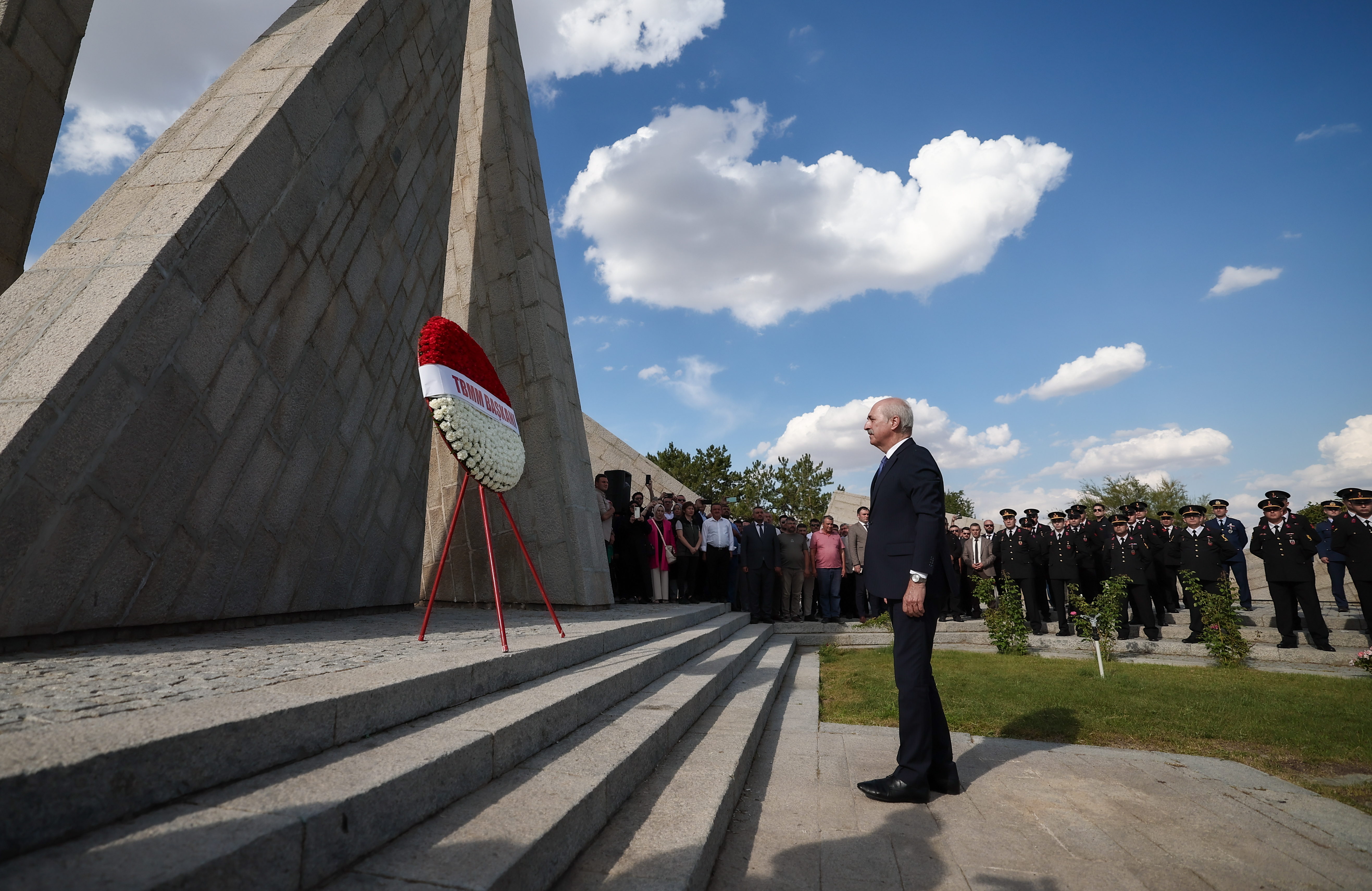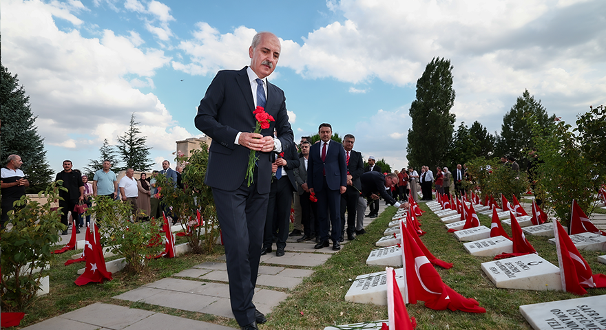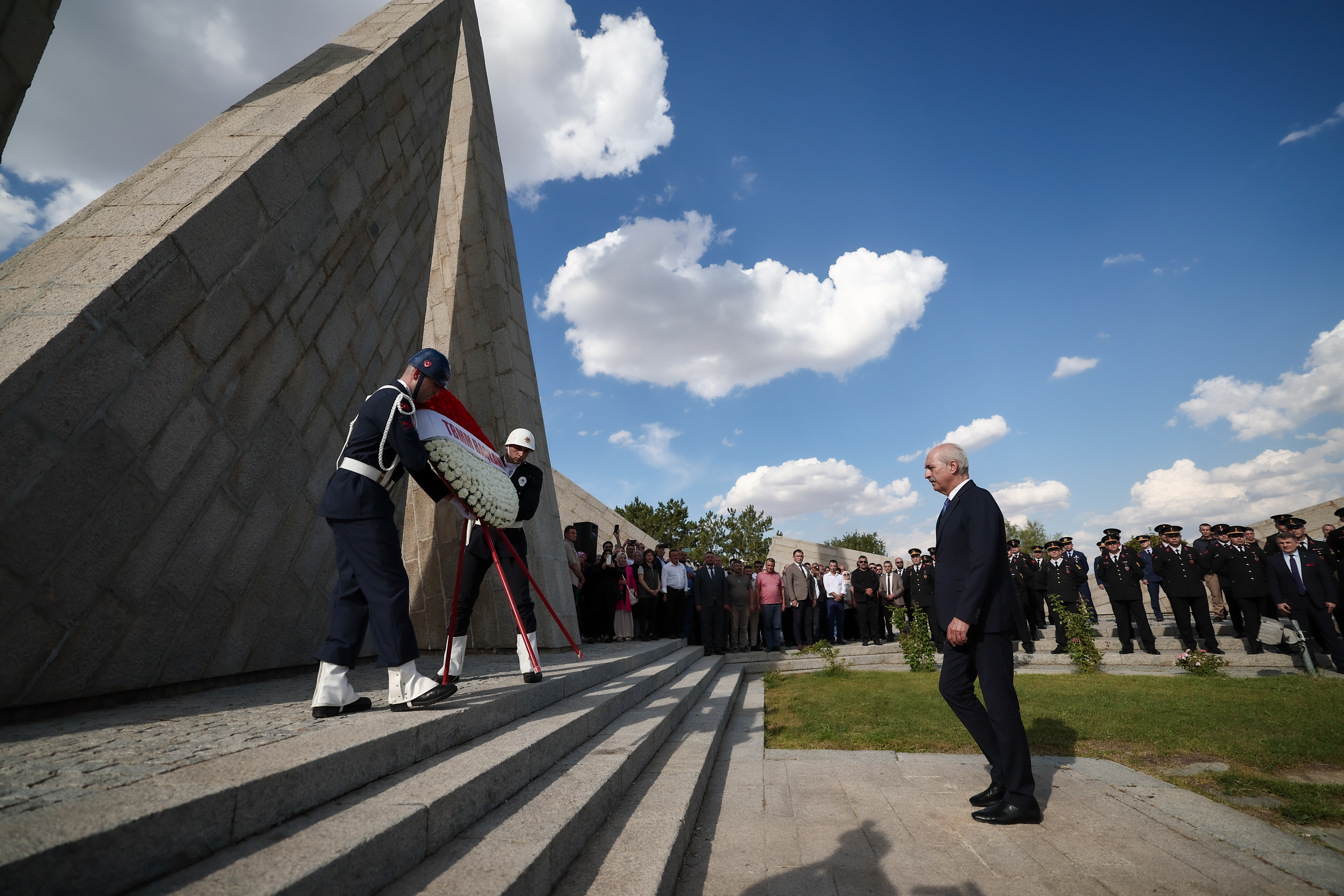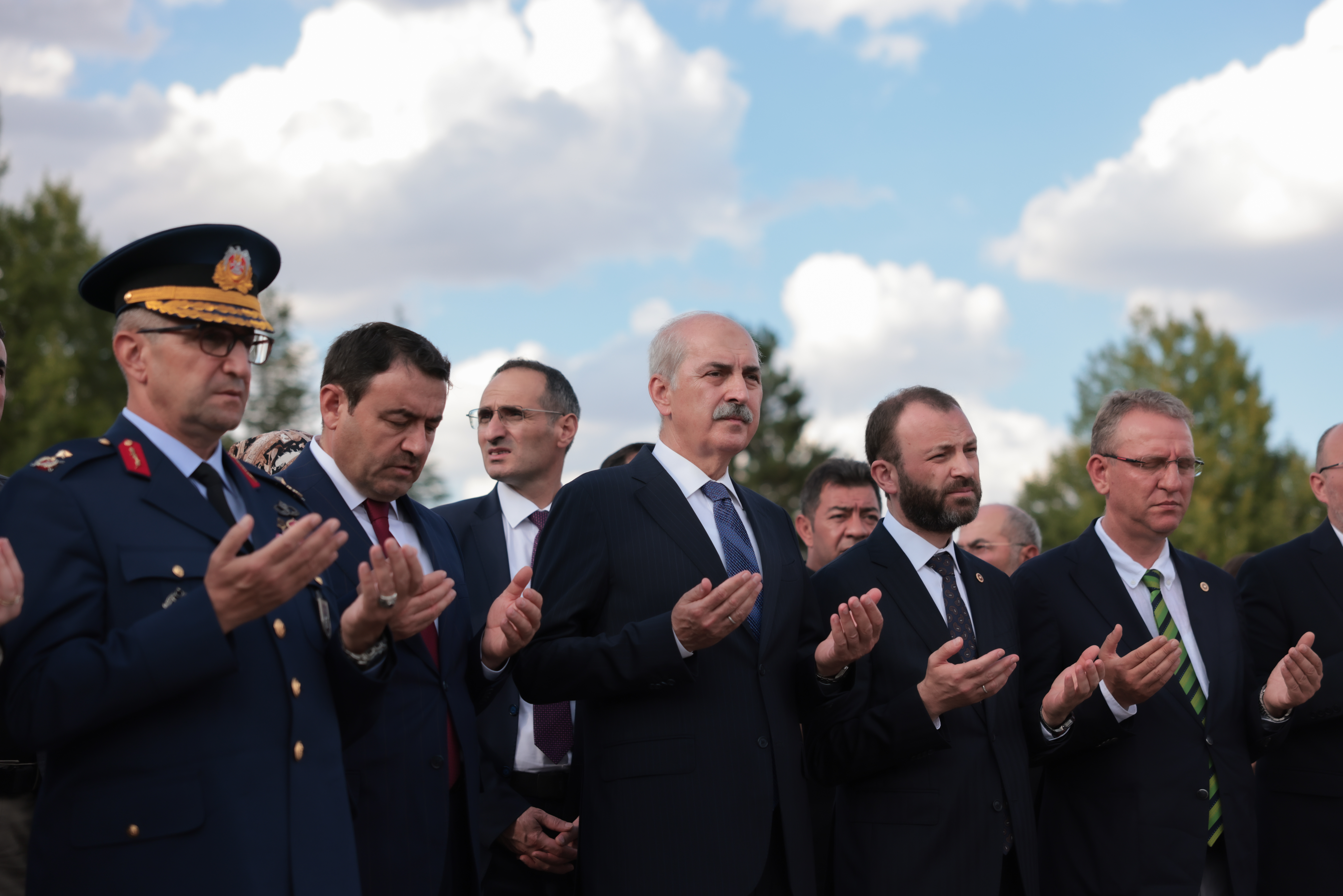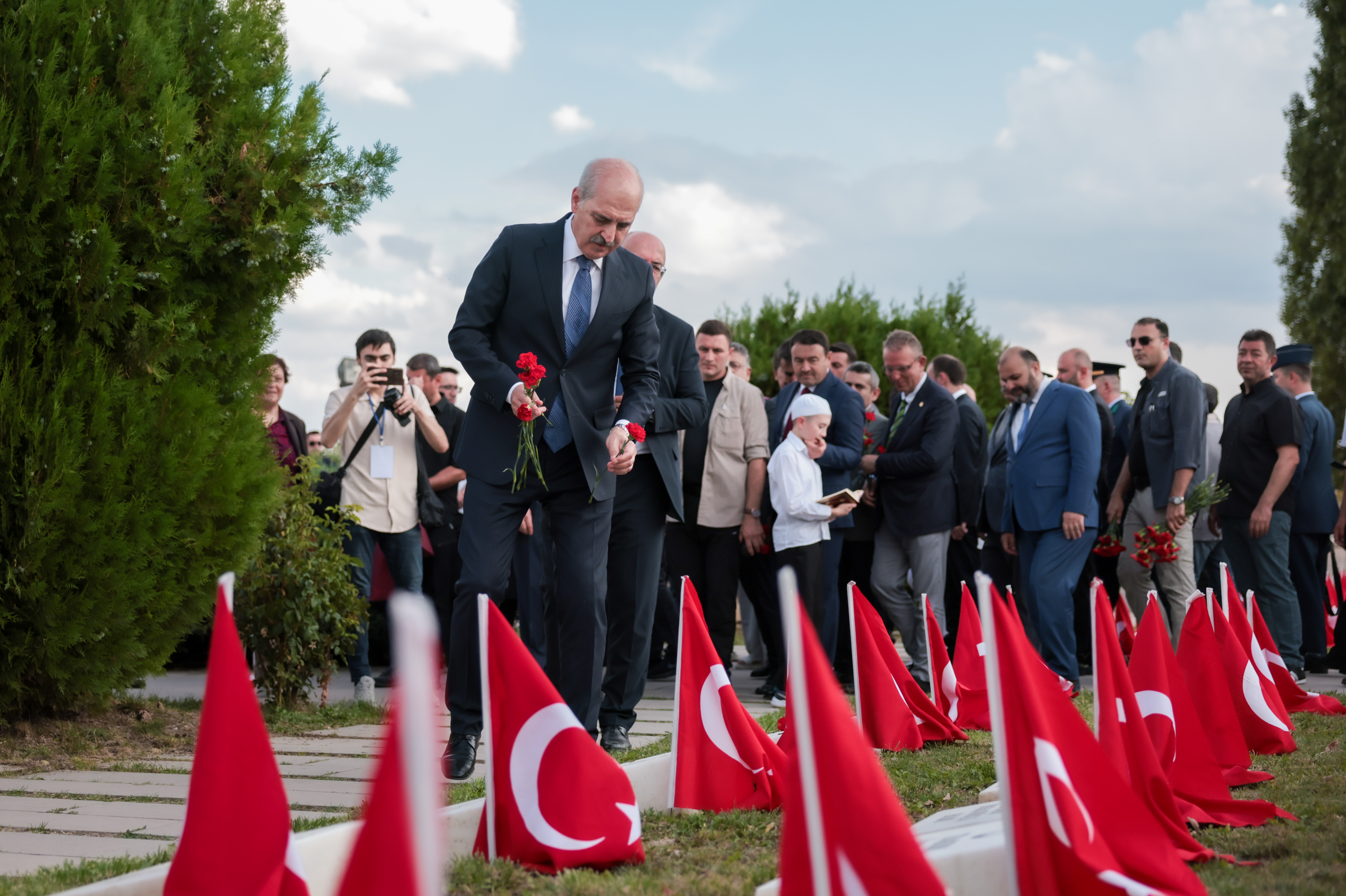 Kurtulmuş, daha sonra abideye üzerinde “TBMM Başkanı” yazılı kırmızı beyaz karanfillerden oluşan çelenk sundu.