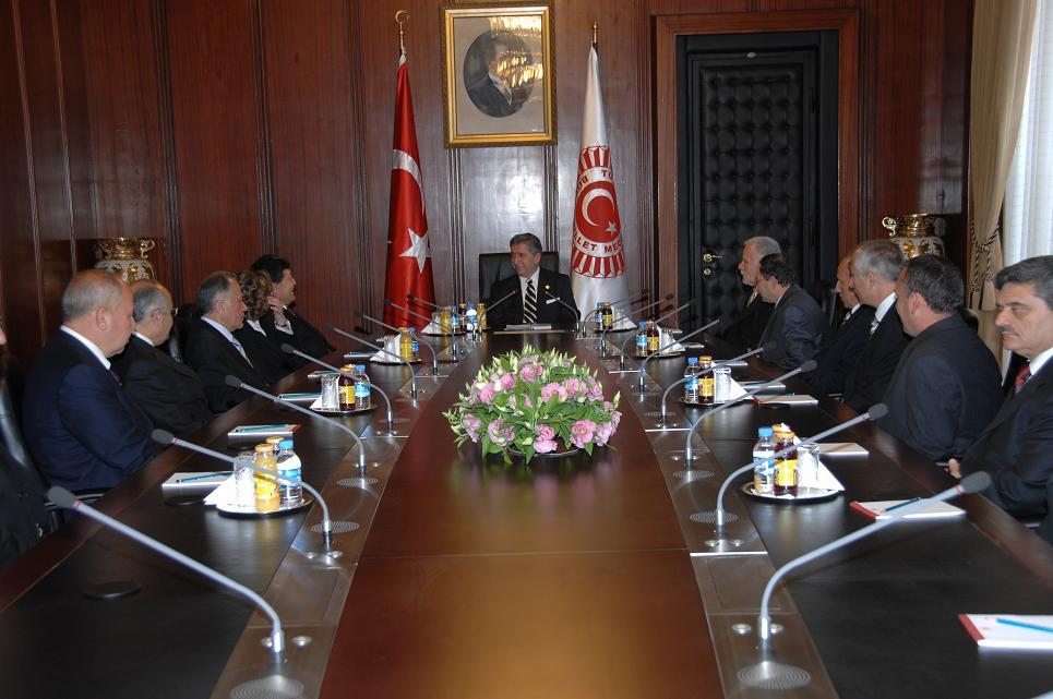 TBMM Başkanı Köksal Toptan'ın Sayıştay Başkanı Mehmet Damar ile yeni seçilen Sayıştay üyelerini kabulu görüntü alınmasının ardından basına kapalı olarak devam etti.