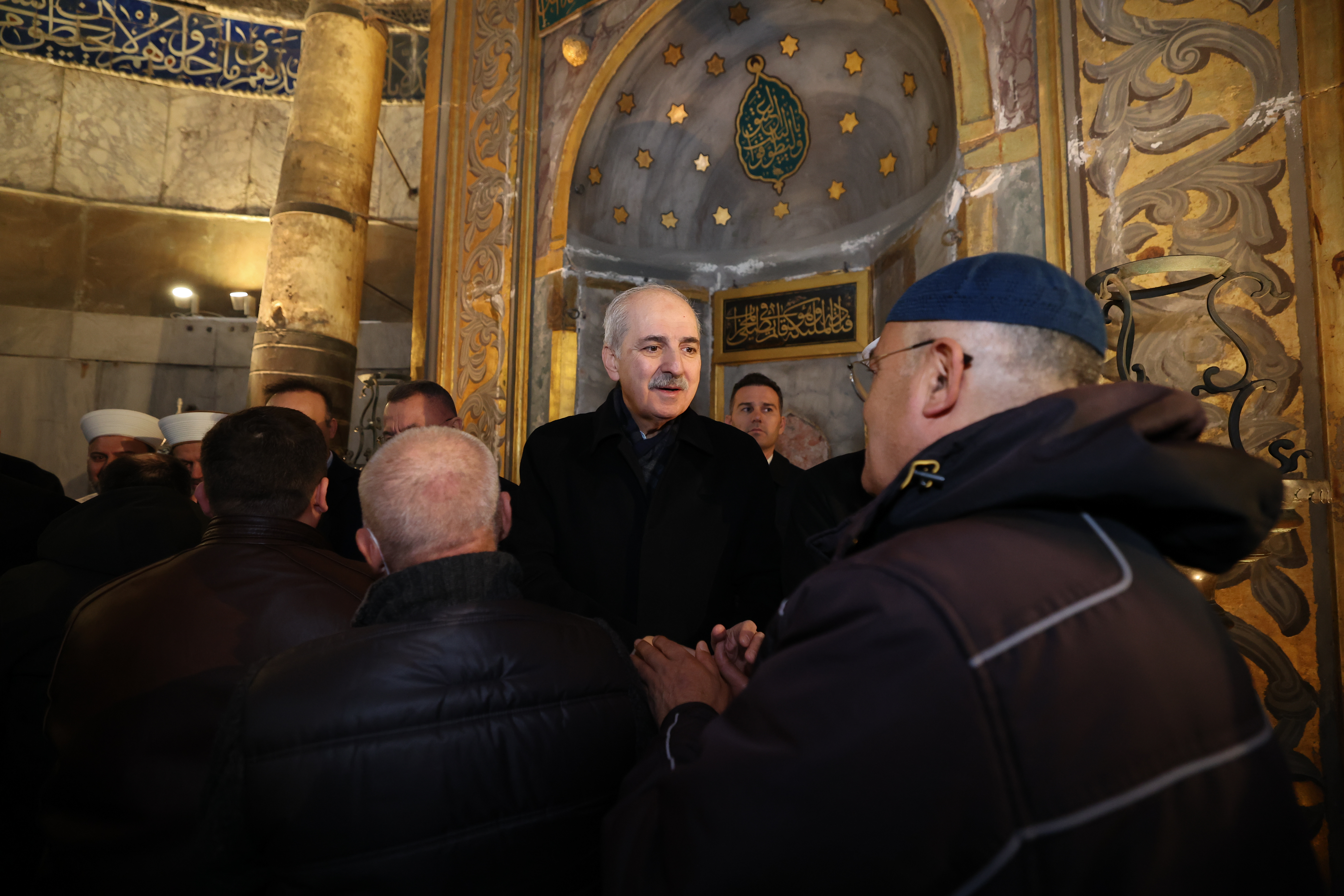 Kurtulmuş, açıklamanın ardından basın mensuplarıyla fotoğraf çektirerek, camiden ayrıldı.