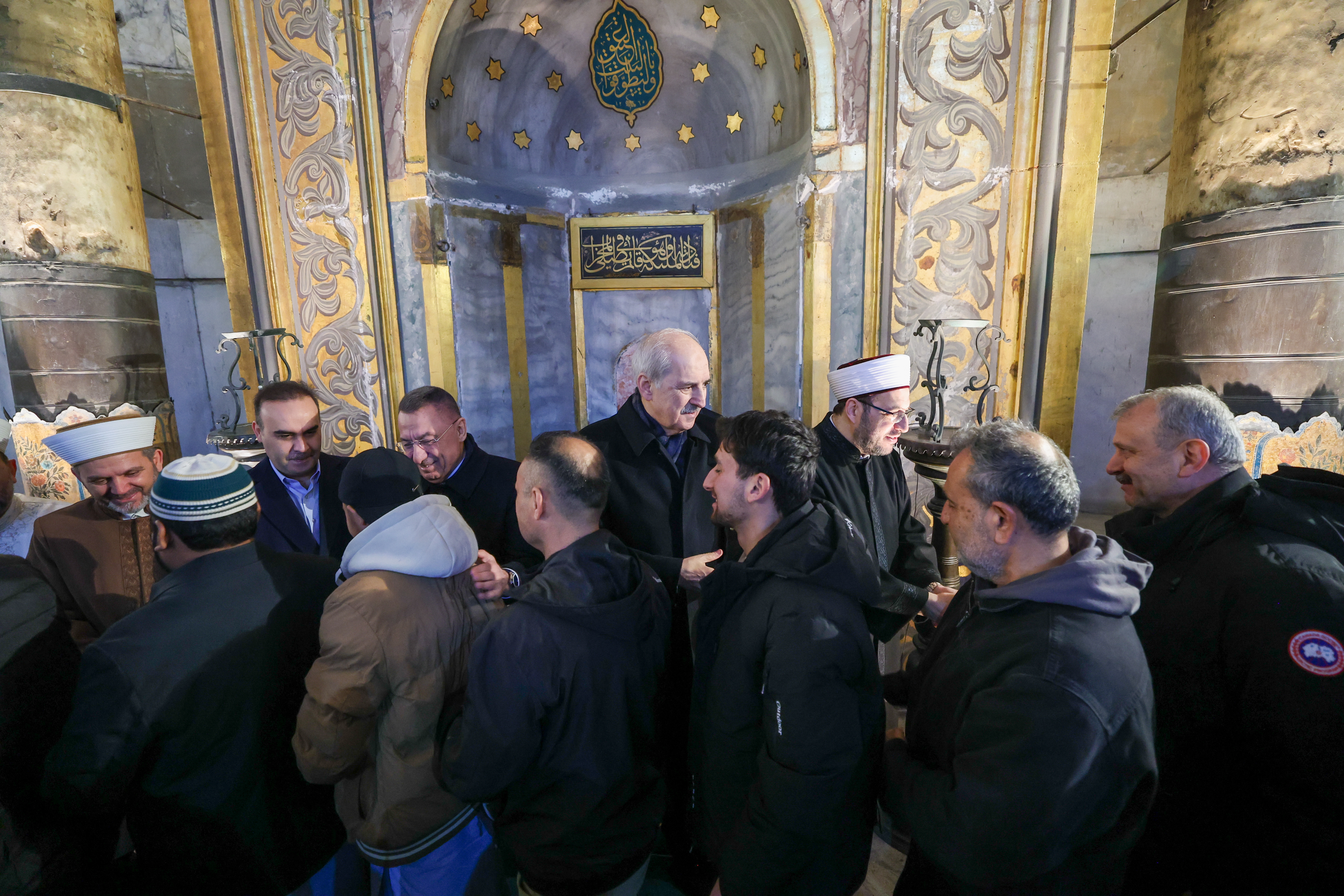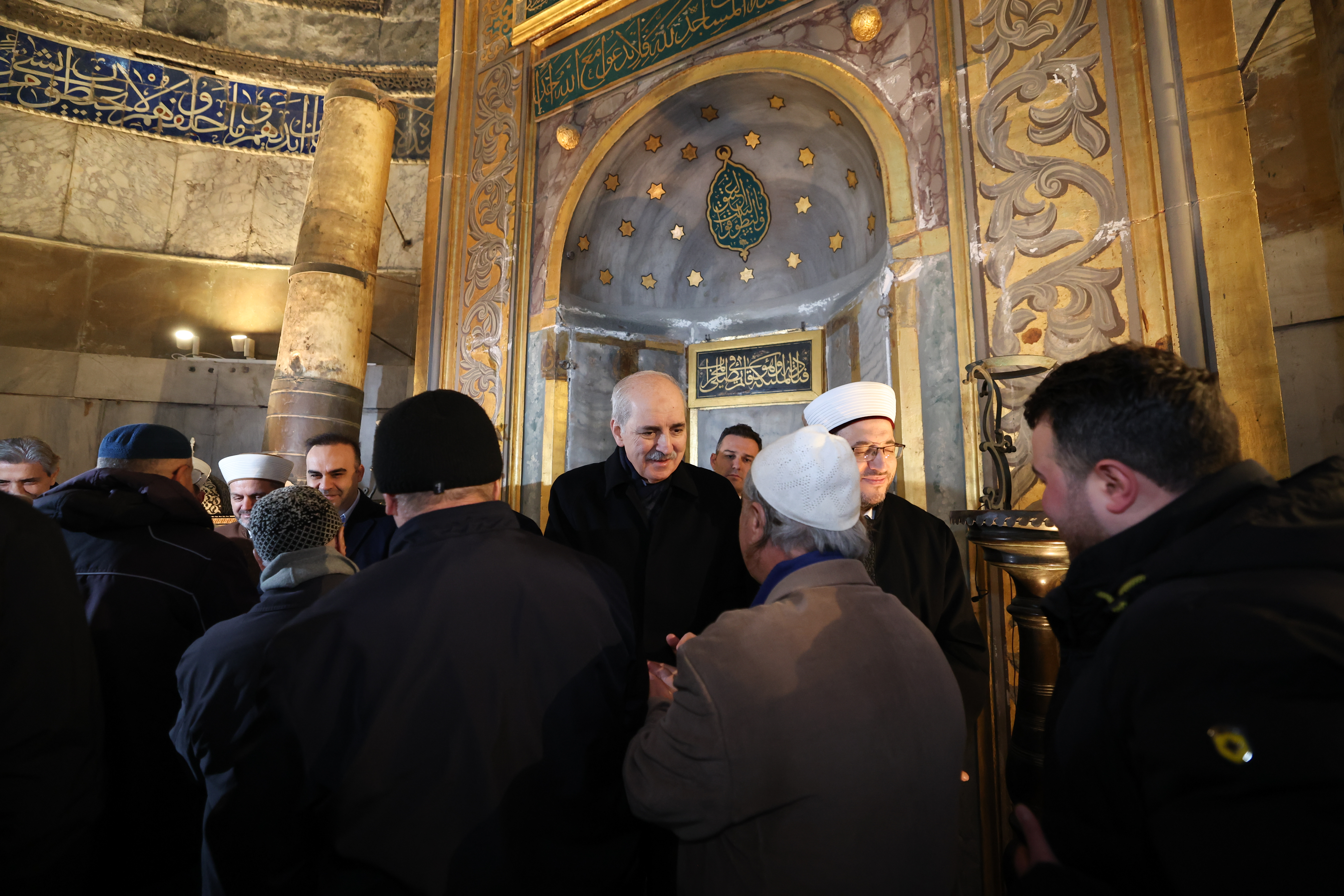 Bayram namazını Ayasofya-i Kebir Cami-i Şerifi'nde kılan Kurtulmuş, namazın ardından vatandaşlarla bayramlaştı.