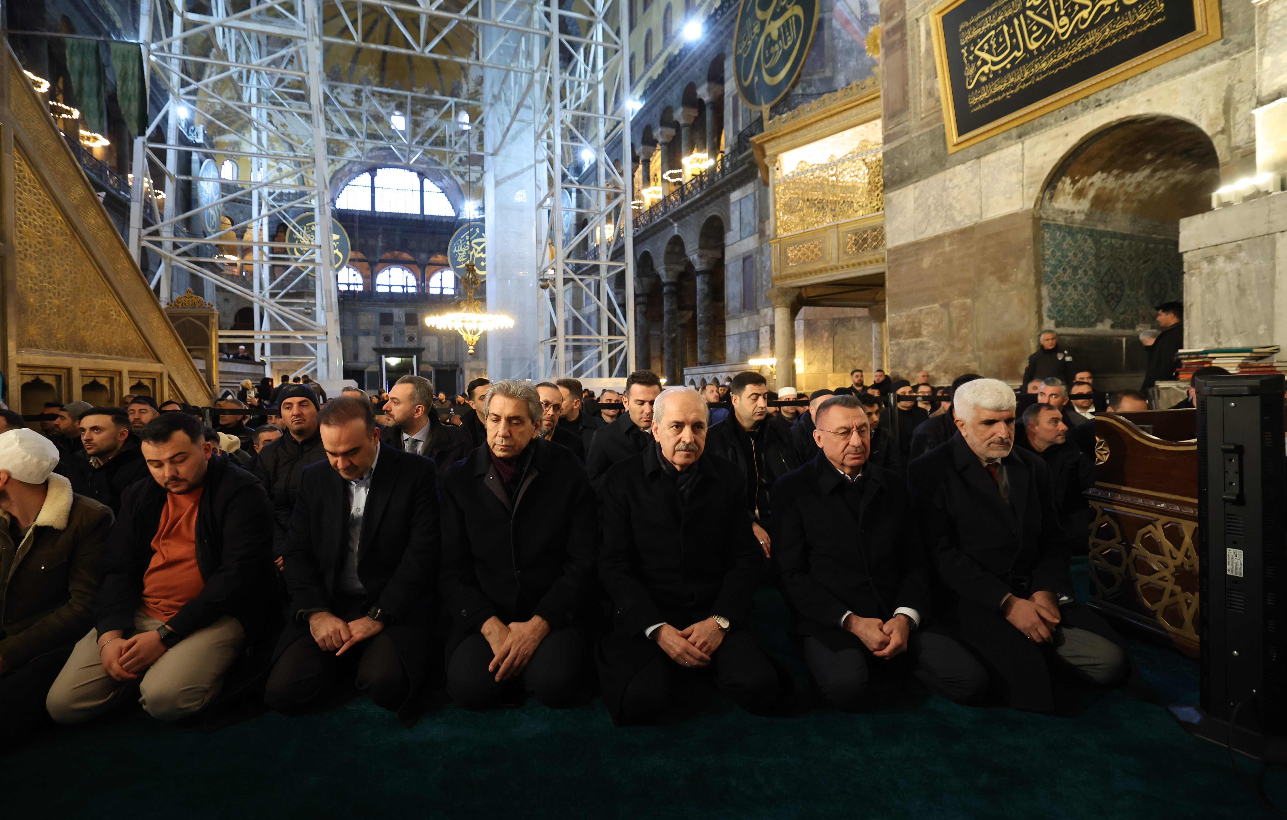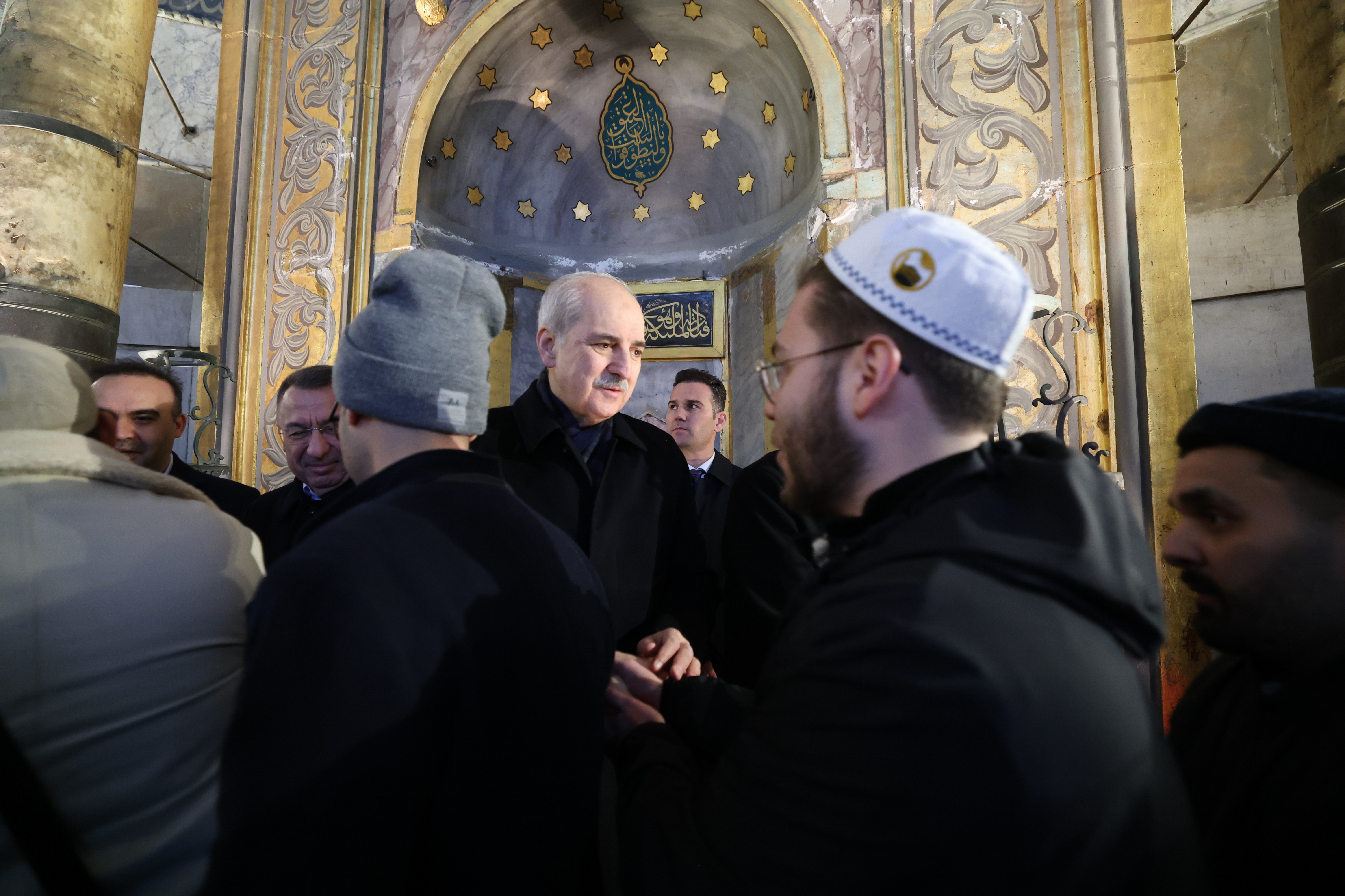 Kurtulmuş, "Ayasofya'dan, İstanbul'un kalbi olan, Osmanlı Cihan Devleti'nin kalbi olan bu Topkapı Sarayı'nın gölgesinden Filistinli kardeşlerimize, Kudüs'te, Gazze'de zulme uğrayan, Batı Şeria'nın her yerinde zulme uğrayan Filistinli kardeşlerimize de hem bayram tebriklerimizi iletiyoruz hem de sevgilerimizi ve onlarla dayanışma duyguları içinde olduğumuzu 86 milyon Türkiye Cumhuriyeti vatandaşı adına ifade ediyoruz." diye konuştu.