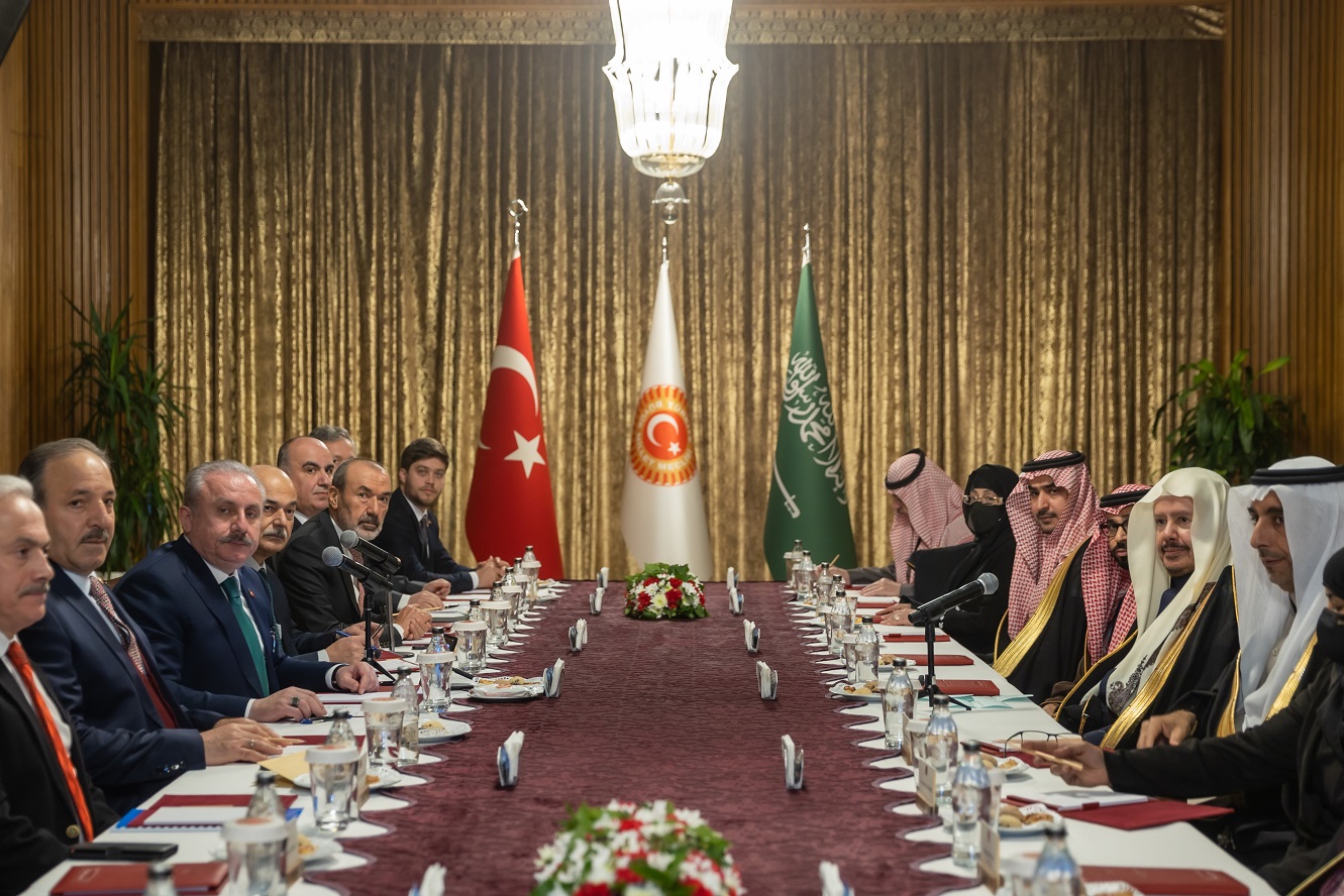 TBMM Başkanı Mustafa Şentop, önce baş başa görüştüğü Suudi Arabistan Şura Meclisi Başkanı Abdullah Bin Muhammed Bin İbrahim El-Şeyh ile daha sonra heyetler arası görüşme gerçekleştirdi.