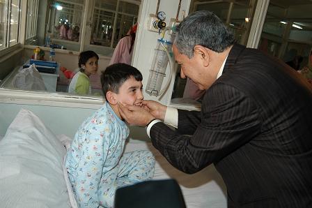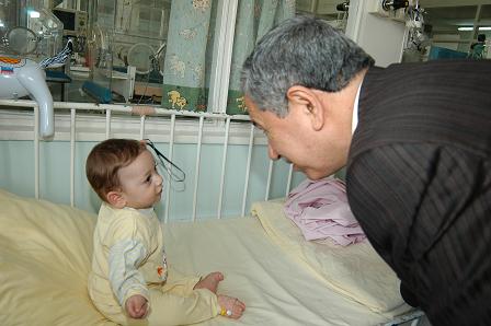 Hastane Başhekimi Prof. Dr. Bahattin Tunç'la birlikte servisleri dolaşan Arınç, çocuklarla ilgilendi, oyuncak ve kitap dağıttı. Hasta çocukların aileleri ve doktorlarından sağlık durumları hakkında bilgi alan Arınç, kemoterapi ünitesini de özel steril giysilerle dolaştı.