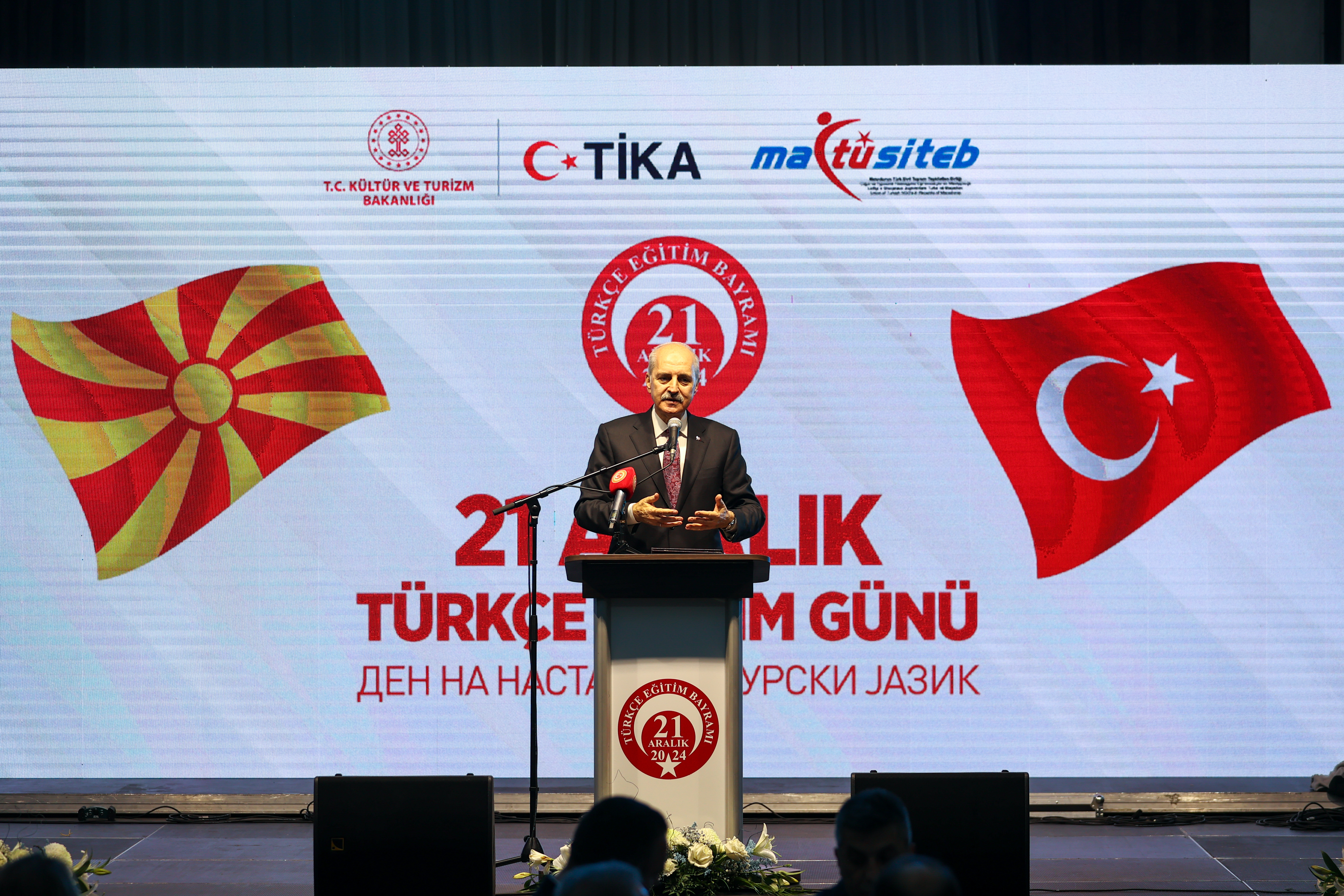 Kurtulmuş, Türk İşbirliği ve Koordinasyon Ajansı Başkanlığı (TİKA) ve Makedonya Türk Sivil Toplum Teşkilatları Birliği (MATÜSİTEB) tarafından Kuzey Makedonya’nın başkenti Üsküp’teki bir otelde düzenlenen 21 Aralık Türkçe Eğitim Bayramı programında yaptığı konuşmada, 21 Aralık’ın Türk toplumu tarafından Kuzey Makedonya’da Türkçe Eğitim Bayramı olarak kutlanmasının ve bu günün resmi bir gün olarak ilan edilmesinin her türlü takdirin üzerinde olduğunu belirtti.
