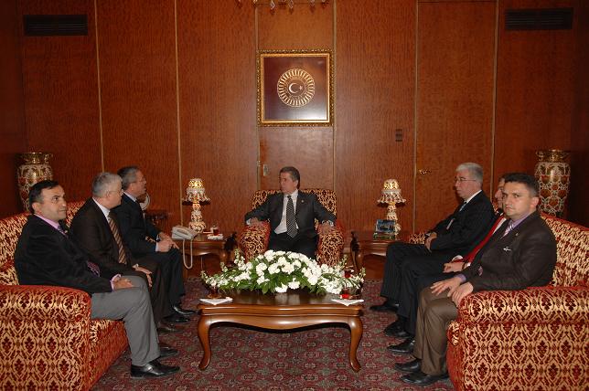 TBMM Başkanı Köksal Toptan, Genel Maden İşçileri Sendikası Genel Başkanı Ramazan Denizer ve beraberindeki heyeti kabul etti.