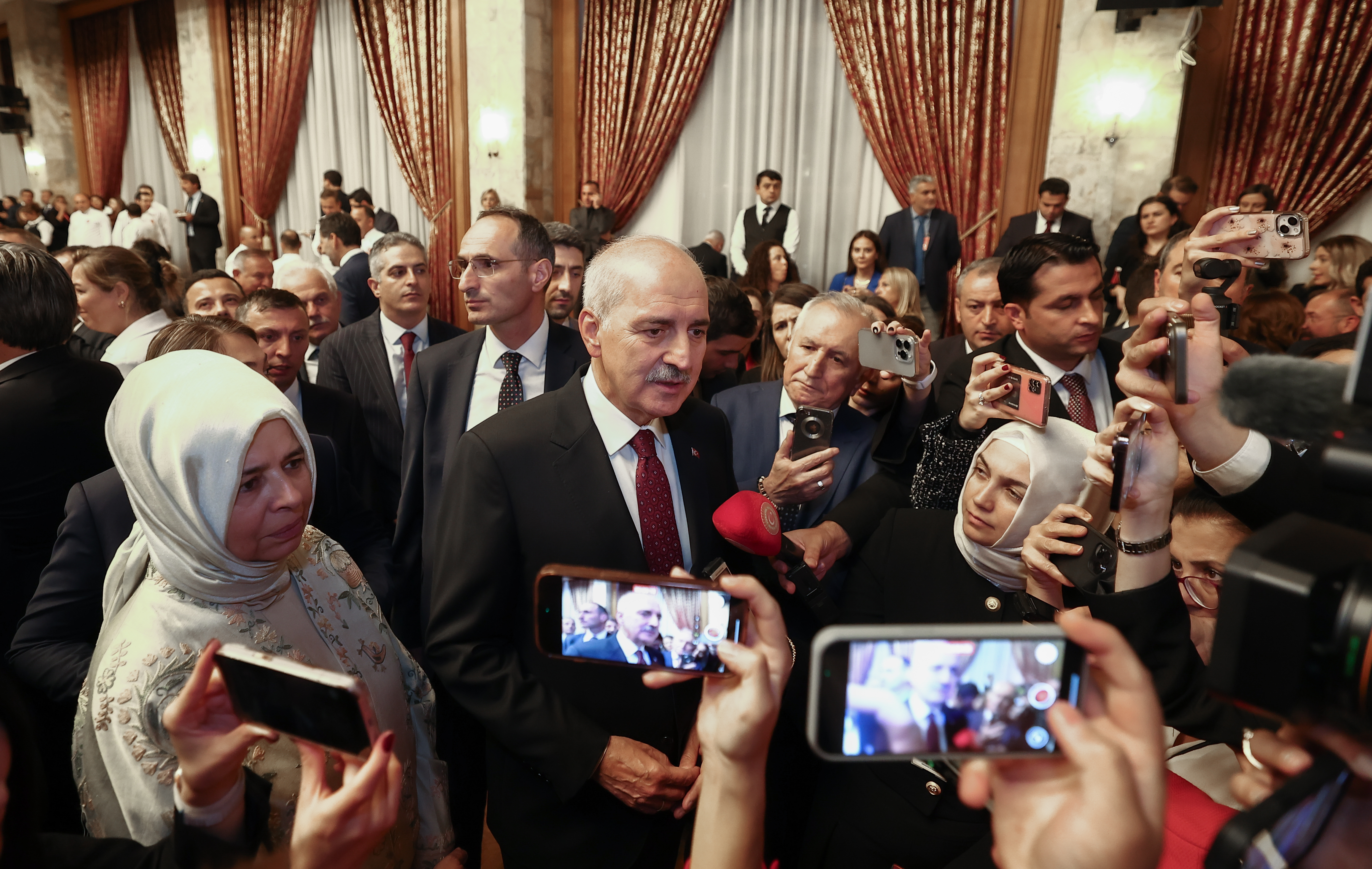 TBMM Tören Salonu'ndaki resepsiyona, CHP Genel Başkanı Özgür Özel, Adalet Bakanı Yılmaz Tunç, AK Parti Grup Başkanı Abdullah Güler, MHP Genel Başkanı Devlet Bahçeli, İYİ Parti Genel Başkanı Müsavat Dervişoğlu, DSP Genel Başkanı Önder Aksakal, Gelecek Partisi Genel Başkanı Ahmet Davutoğlu, DEVA Partisi Genel Başkanı Ali Babacan, HÜDA PAR Genel Başkanı Zekeriya Yapıcıoğlu, Demokrat Parti Genel Başkanı Gültekin Uysal, partilerin grup başkanvekilleri, YSK Başkanı Ahmet Yener, milletvekilleri, bürokratlar, yabancı misyon temsilcileri, sivil toplum kuruluşu temsilcileri, sporcular, sanatçılar, çok sayıda davetli katıldı.