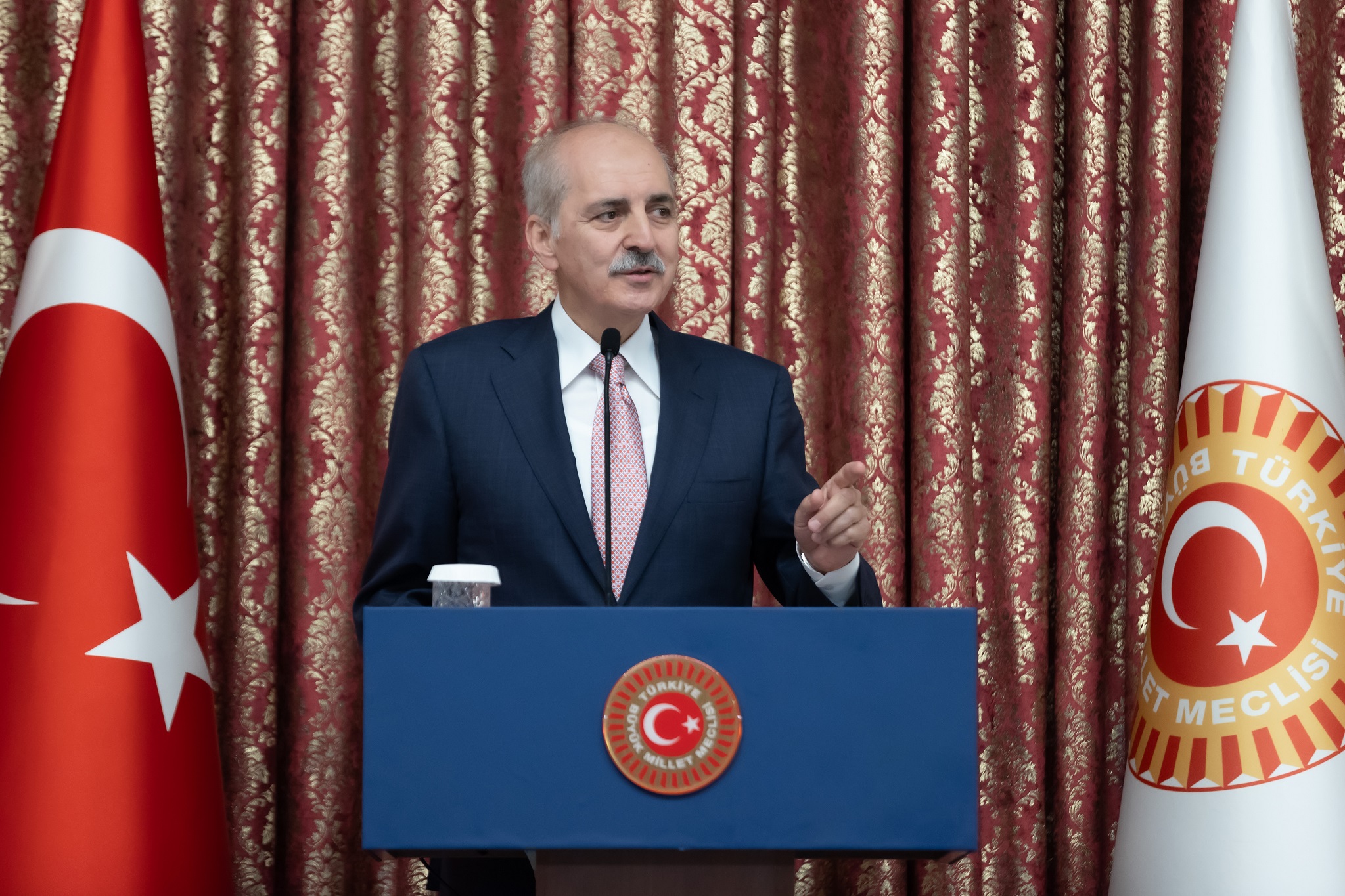 Numan Kurtulmuş, Türkiye'nin barış, güven ve istikrar konusundaki politikalarının somut göstergelerinden birinin de vekalet savaşlarına topyekun karşı çıkma tavrı olduğunu söyleyerek, artık vekalet savaşlarının unsuru olan terör örgütlerini kullanan ülkelerin, desteklerine son vermesinin elzem olduğunu dile getirdi.