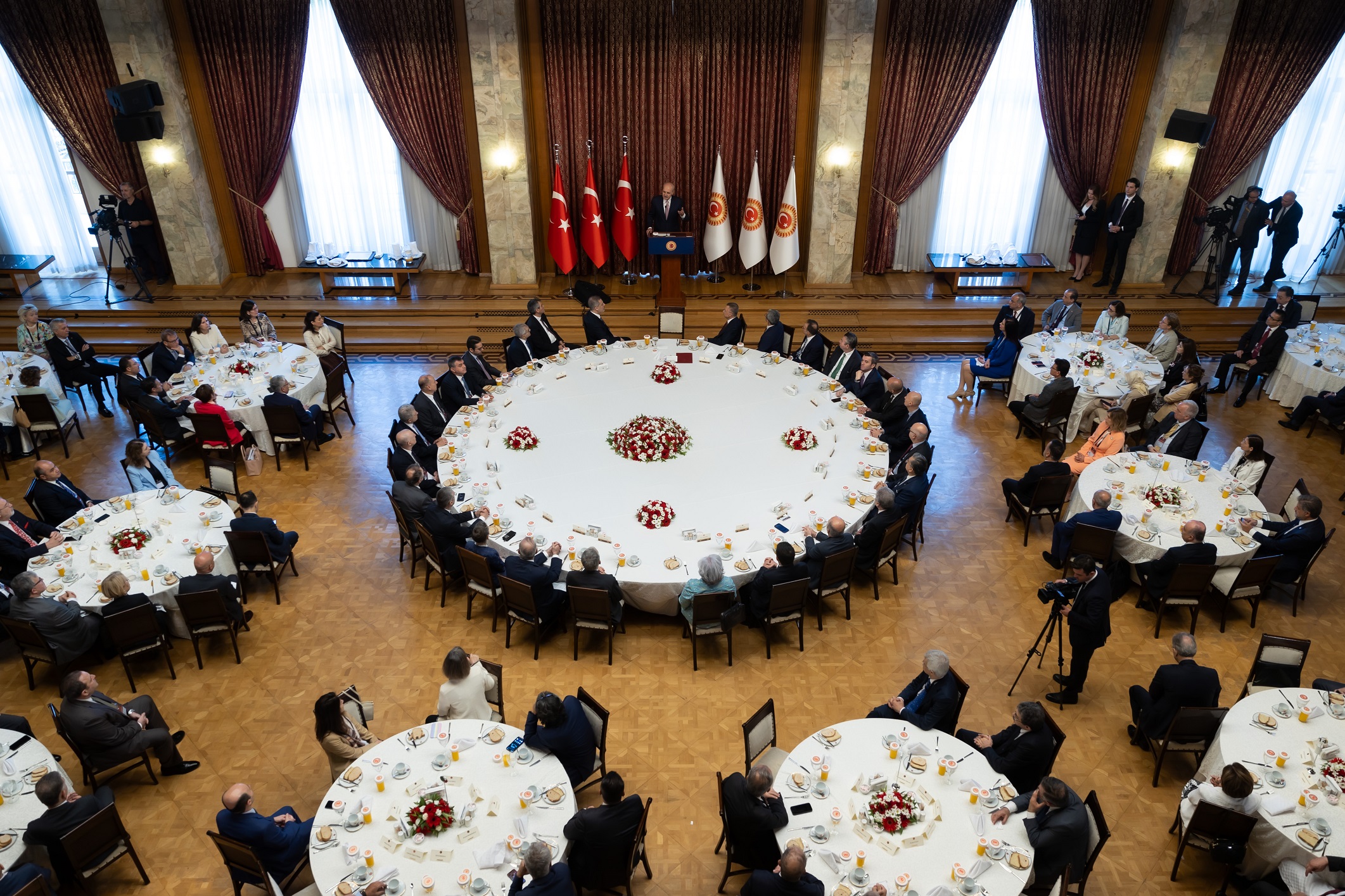 Konuşmasının ardından Kurtulmuş, "14. Büyükelçiler Konferansı" katılımcıları onuruna TBMM Tören Salonu'nda kahvaltı verdi.