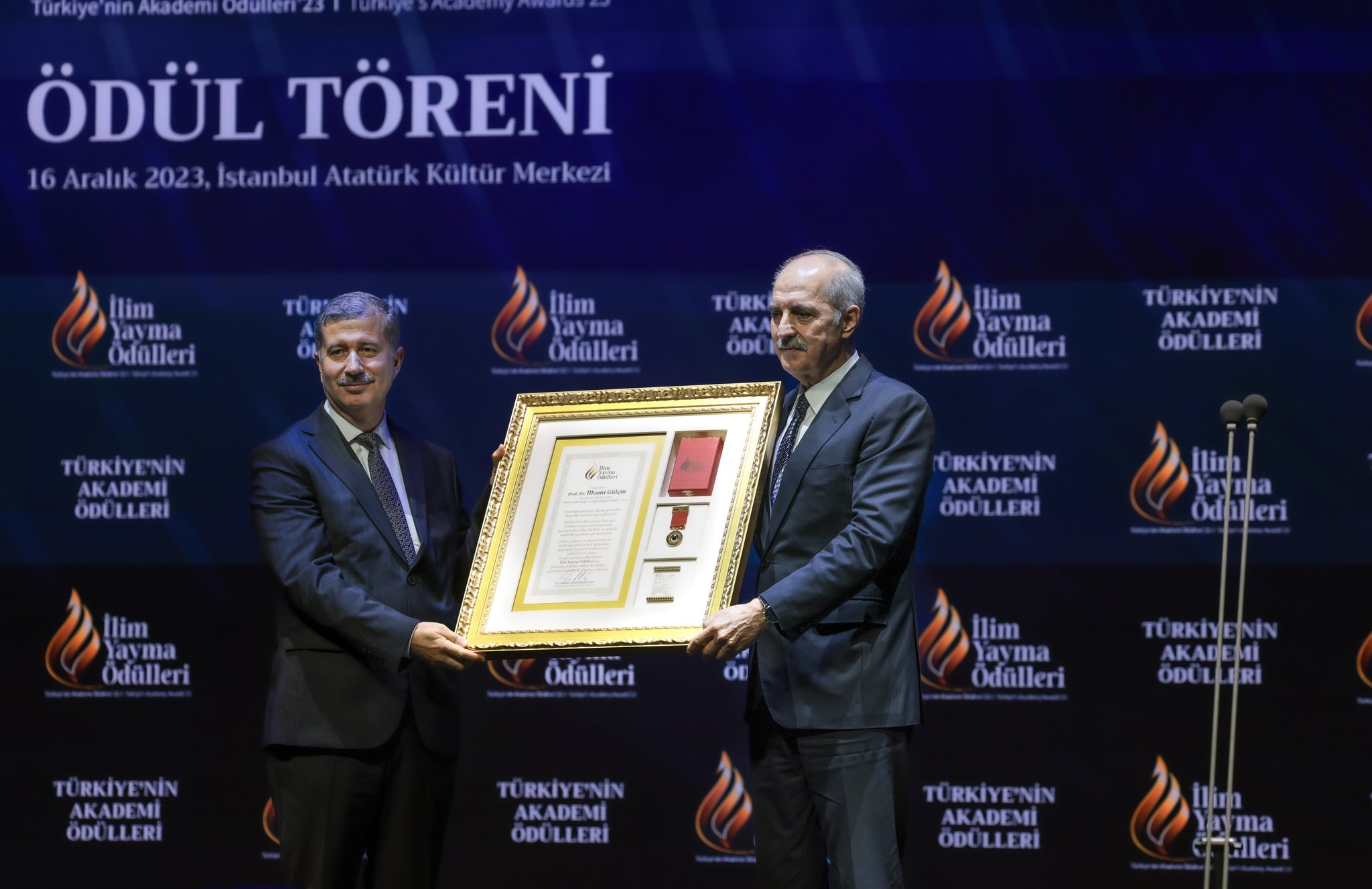 TBMM Başkanı Kurtulmuş, törende, "Mühendislik, Doğa ve Sağlık Bilimleri Ödülü"nü kazanan Erzurum Atatürk Üniversitesi Öğretim Üyesi Prof. Dr. İlhami Gülçin'in ödülünü takdim etti.