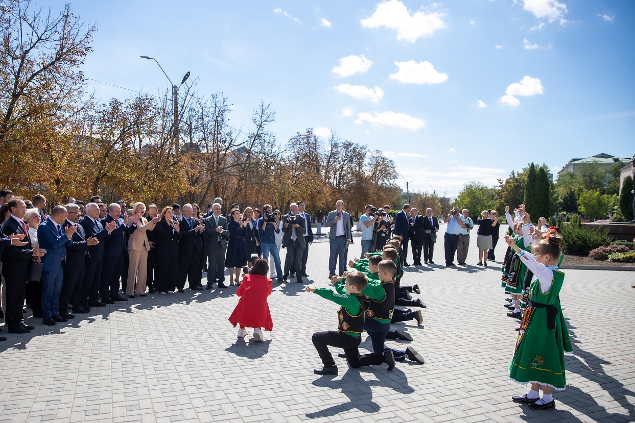 Kişinev'deki temaslarının ardından Komrat'ı ziyaret eden TBMM Başkanı Mustafa Şentop, Gagavuz Özerk Yeri İcra Kurulu binası önünde, Gagavuz Özerk Yeri Başkanı İrina Vlah, Gagavuz Özerk Yeri Meclis Başkanı Dimitri Constantinov ve soydaşlar tarafından Türk bayraklarıyla karşılandı.