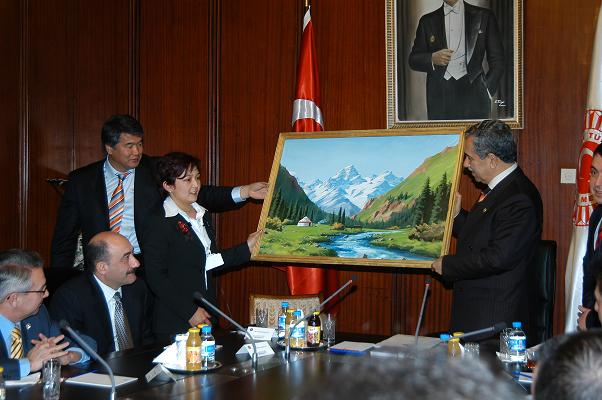 Arınç, konuk heyet adına Hakas Cumhuriyeti temsilcisi ressam Aleksander Kotosev'e çeşitli sorular sordu.