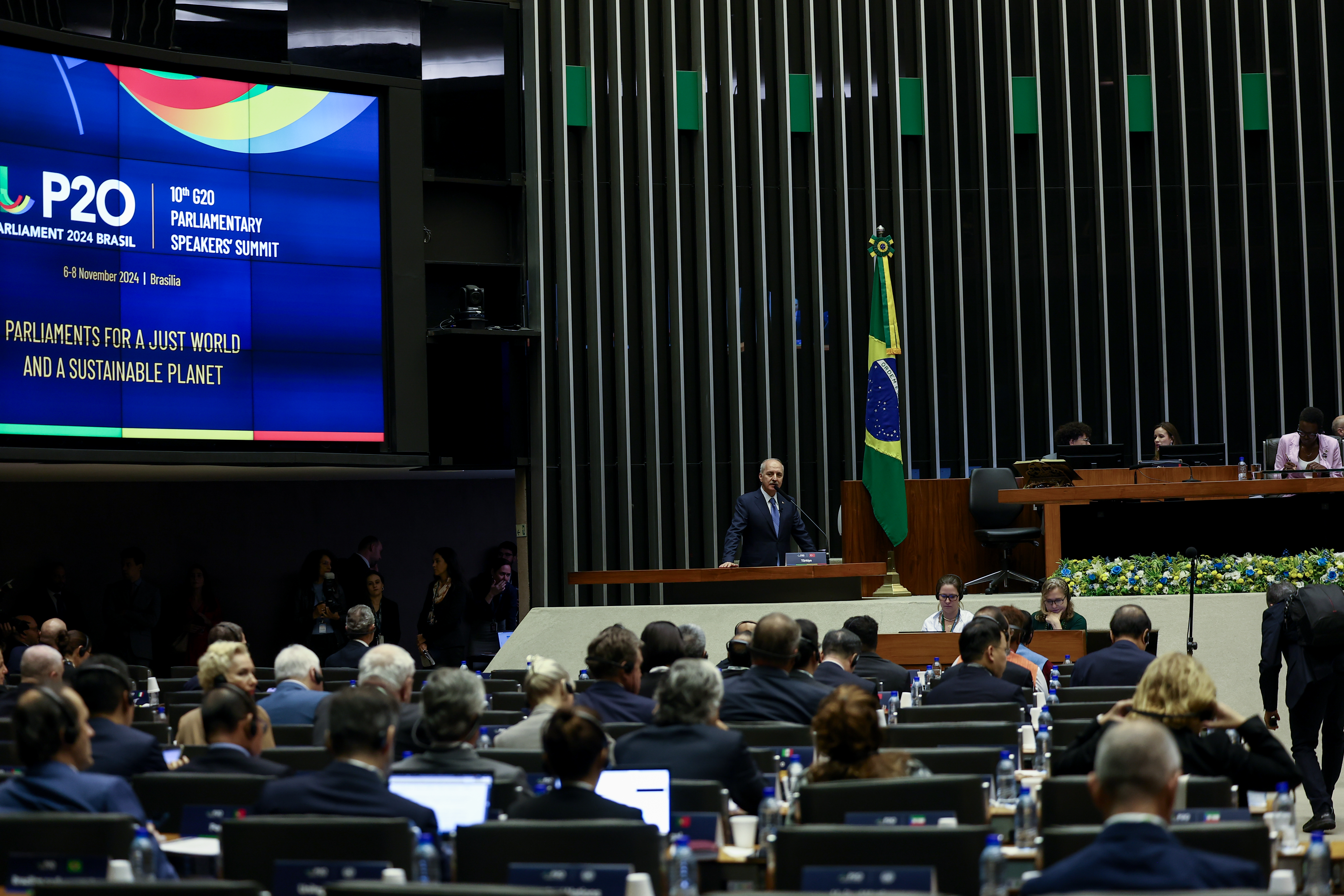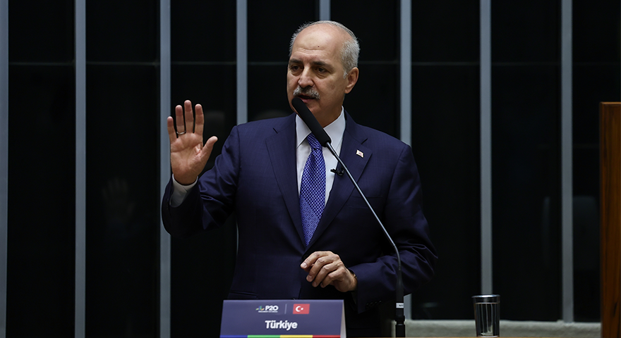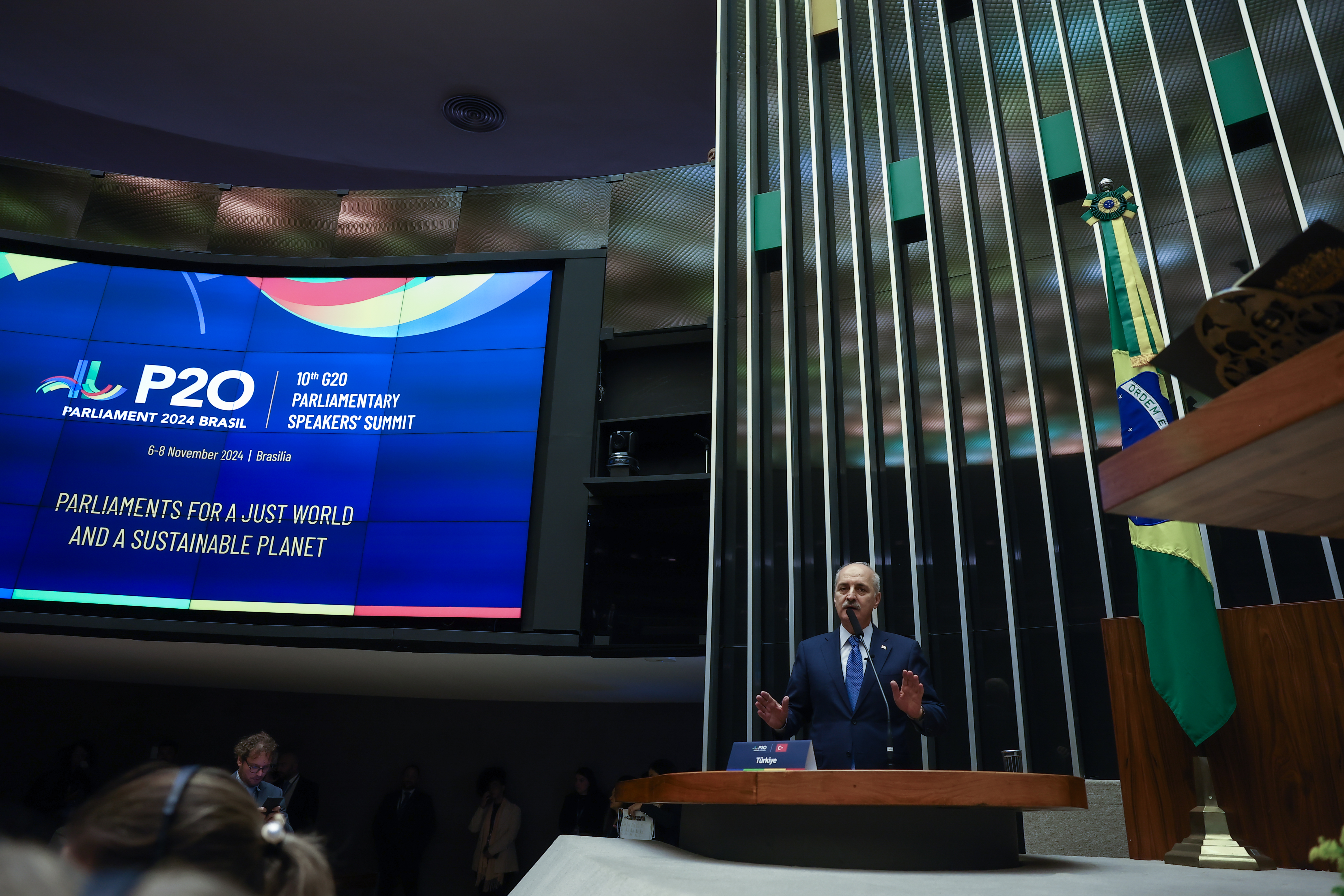Meclis Başkanı Kurtulmuş, Brezilya'nın başkenti Brazilya'da düzenlenen Onuncu G20 Parlamento Başkanları Zirvesi'nin (P20) "21. Yüzyılın Zorluklarına Uyum Sağlayan Küresel Yönetişimin İnşasında Parlamentolar" başlıklı üçüncü oturumunda konuştu.