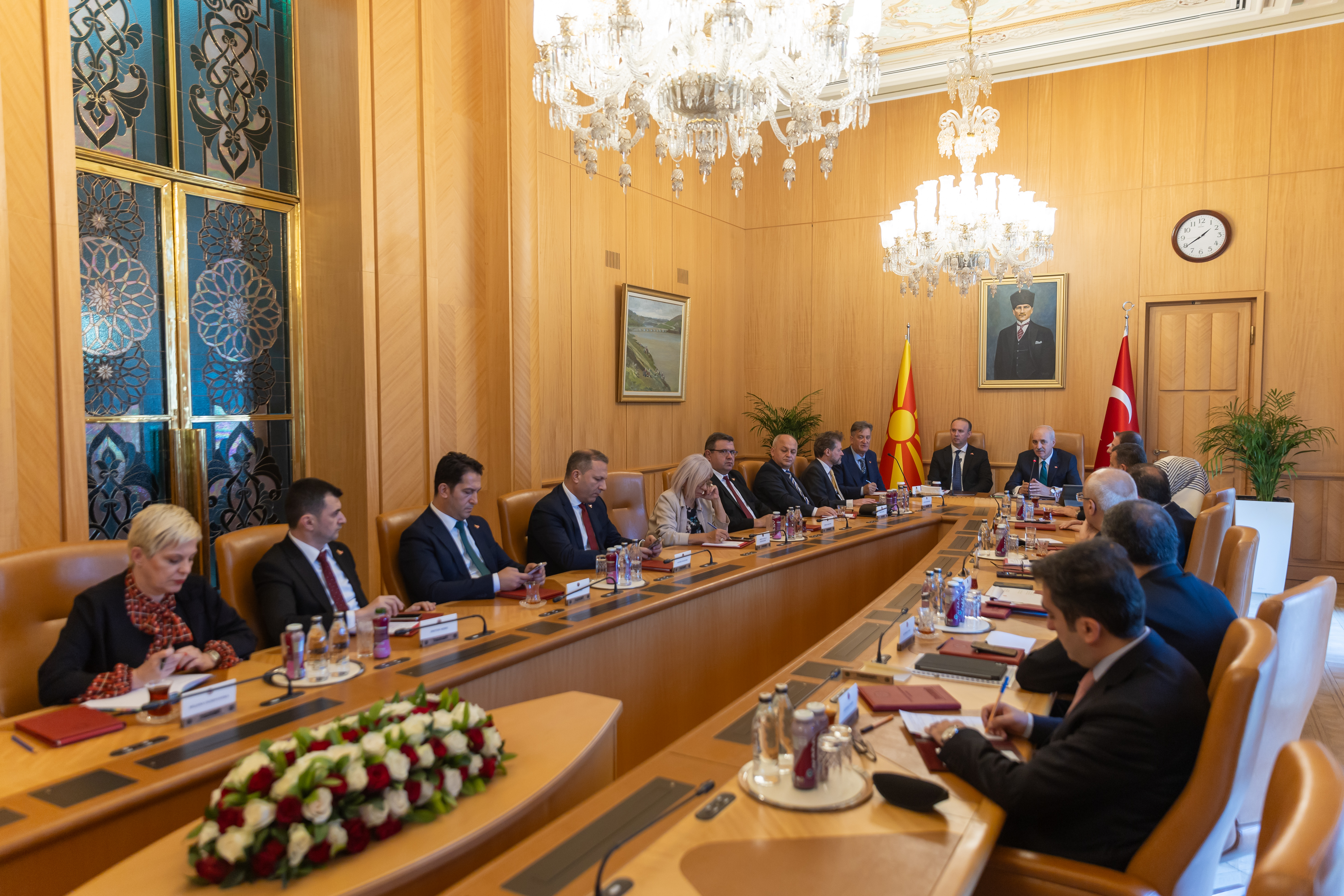 TBMM Başkanı Kurtulmuş, Kuzey Makedonya Meclis Başkanı Gaşi ve heyetini TBMM’de ağırlamaktan duyduğu memnuniyeti dile getirerek, baş başa ve heyetler arası verimli bir toplantı gerçekleştirdiklerini belirtti.