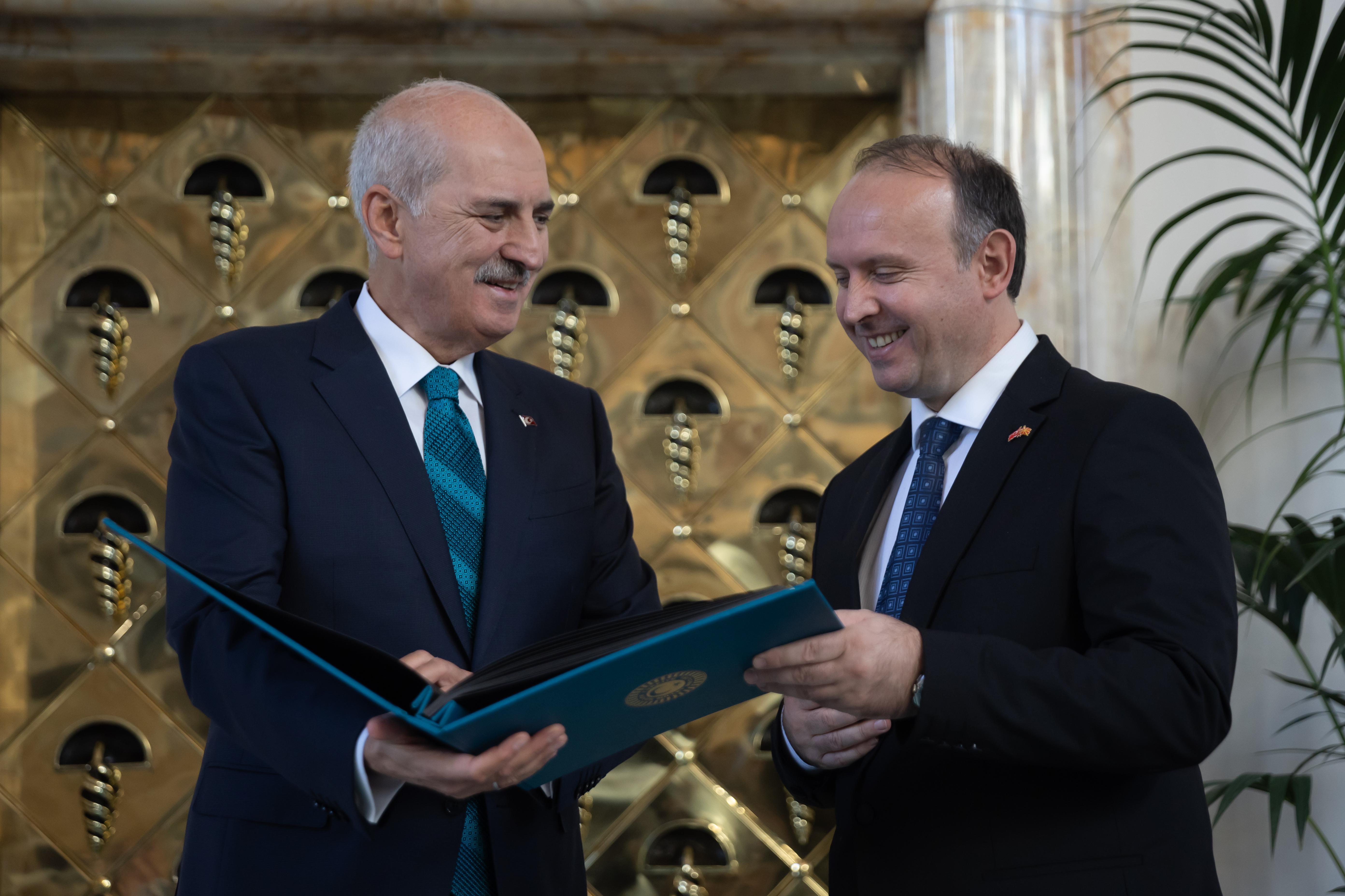 Kurtulmuş, Türkiye’ye resmi ziyaret gerçekleştiren Kuzey Makedonya Meclis Başkanı Afrim Gaşi ile Meclis’te bir araya geldi.