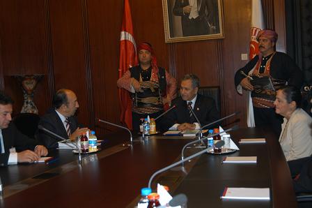 TBMM Başkanı Arınç Ankara Kulübü Derneği Yönetim Kurulu Başkanı Bülent Kalıpçı ve beraberindeki heyet ile Seymenleri kabul etti.