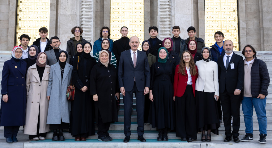 TBMM Başkanı Numan Kurtulmuş, İstanbul Başakşehir Mehmet Emin Saraç Anadolu İmam Hatip Lisesi öğrencilerini kabul etti.