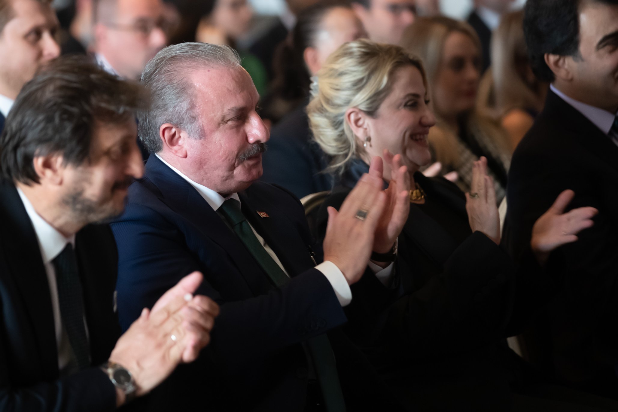 Kongrede, Marmara Üniversitesi Hukuk Fakültesi Deniz Hukuku Anabilim Dalı Başkanı Prof. Dr. Pınar Akan, TBMM Başkanı Şentop'a hediye takdim etti.