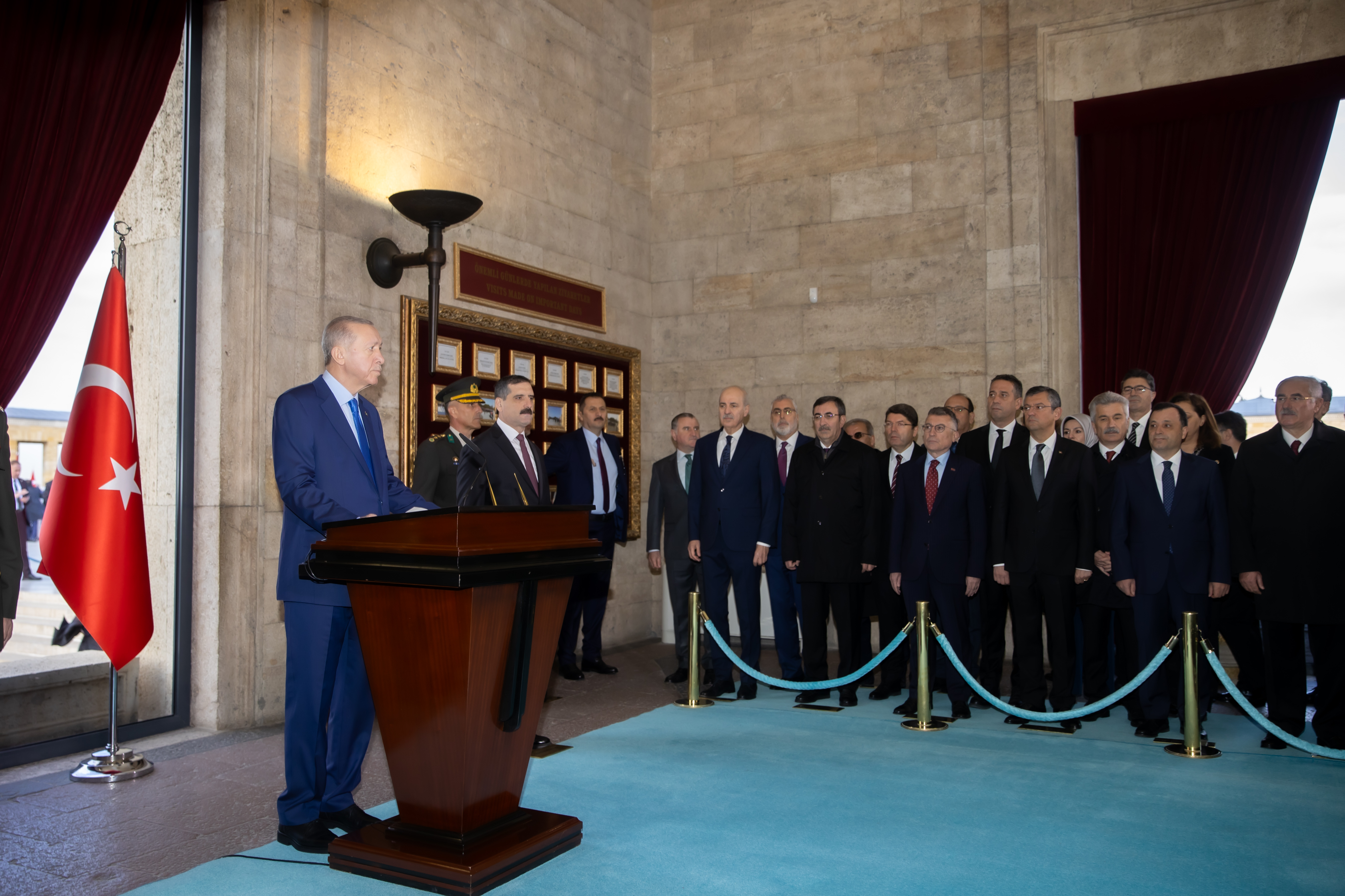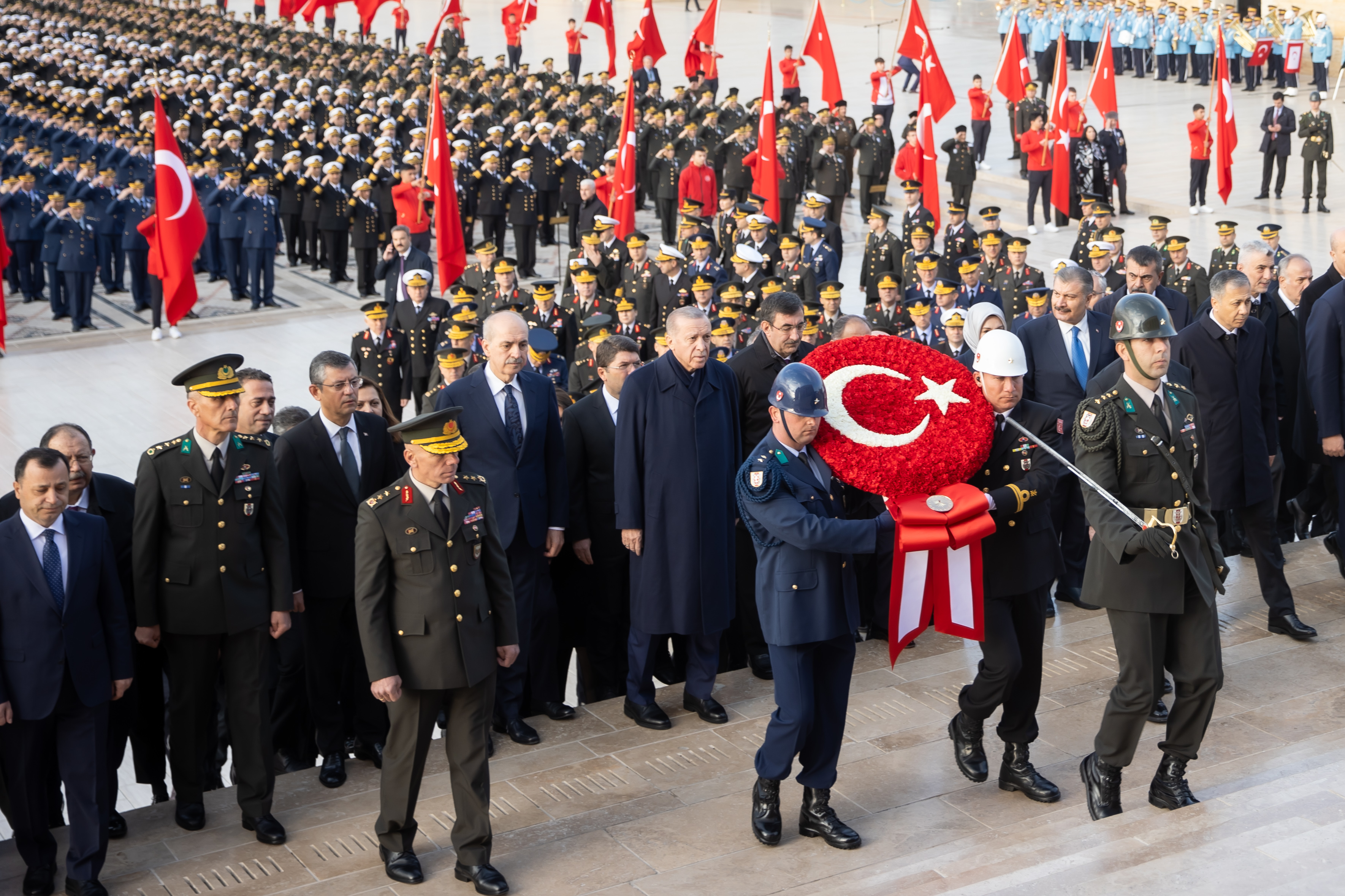 Cumhurbaşkanı Recep Tayyip Erdoğan başkanlığındaki kortejde TBMM Başkanı Numan Kurtulmuş, Cumhurbaşkanlığı Kabinesi üyeleri, CHP Genel Başkanı Özgür Özel, MHP Genel Başkanı Devlet Bahçeli, İYİ Parti Genel Başkanı Meral Akşener, yüksek yargı organlarının başkanları, TSK komuta kademesi, siyasi parti temsilcileri, bürokratlar ve diğer devlet erkanı yer aldı.