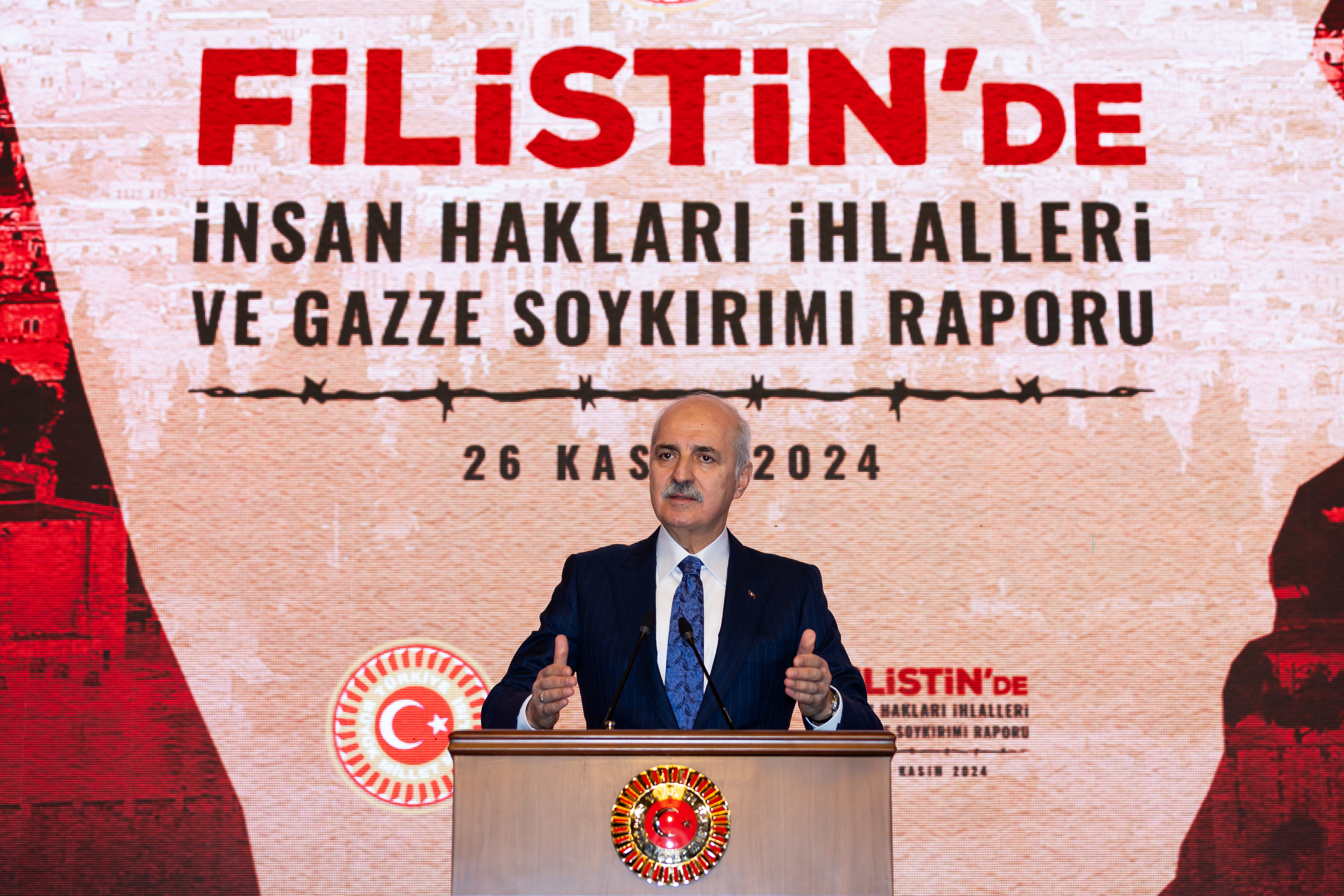 TBMM Başkanı Kurtulmuş, Meclis Tören Salonu’nda düzenlenen, “Filistin’de İnsan Hakları İhlalleri ve Gazze Soykırımı Raporu” tanıtım programında yaptığı konuşmada, Türkiye İnsan Hakları ve Eşitlik Kurumu (TİHEK) tarafından hazırlanan raporda emeği geçenlere teşekkür etti.