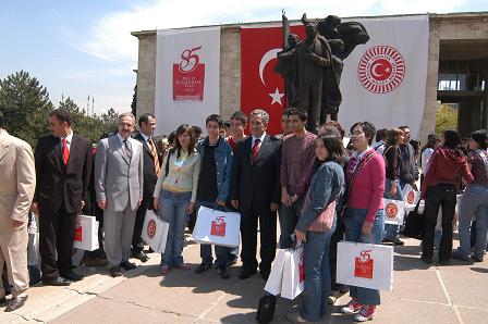 TBMM Başkanı Arınç da Germiyanoğlu'na TBMM madalyonu, öğrencilere de çeşitli hediyeler verdi.