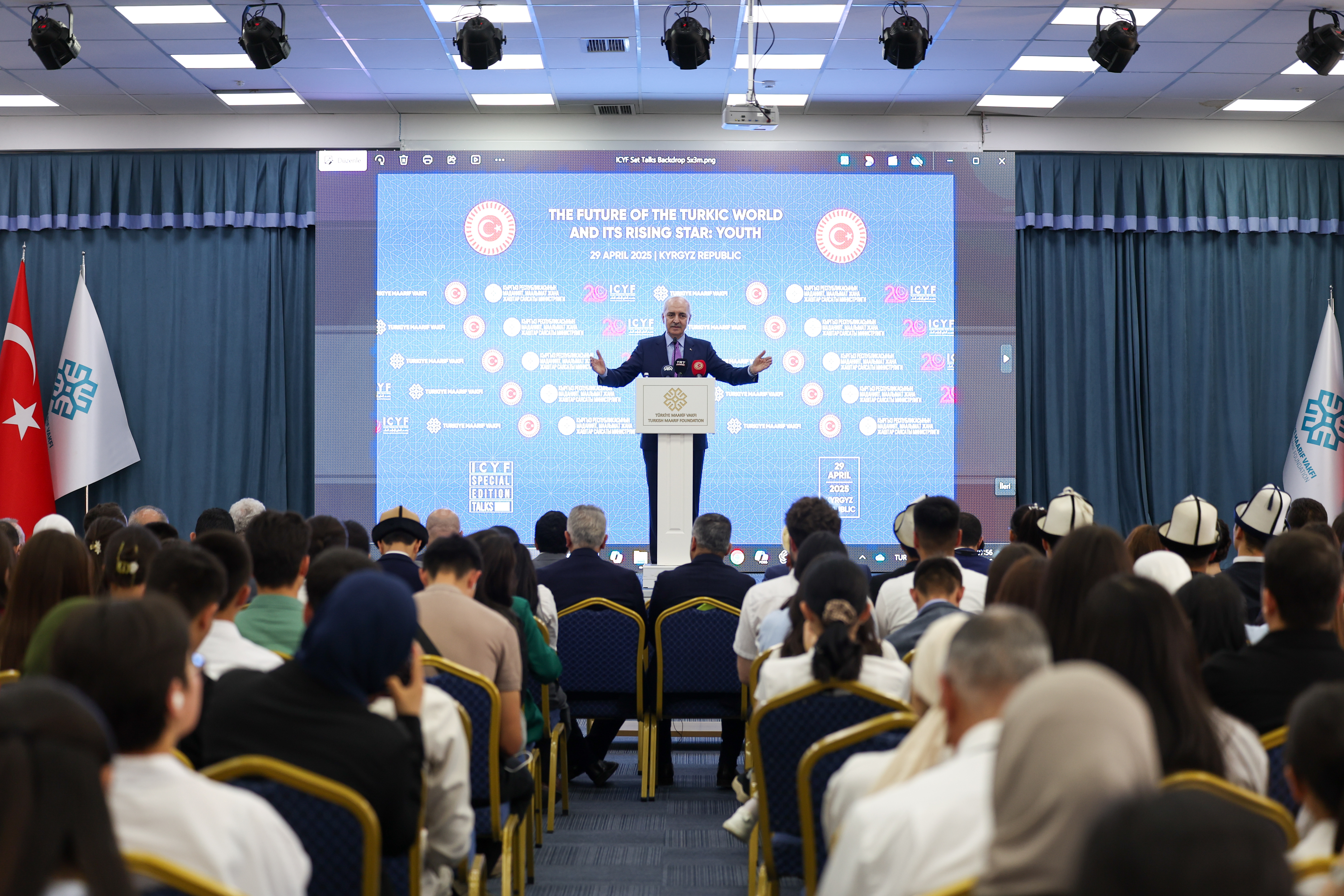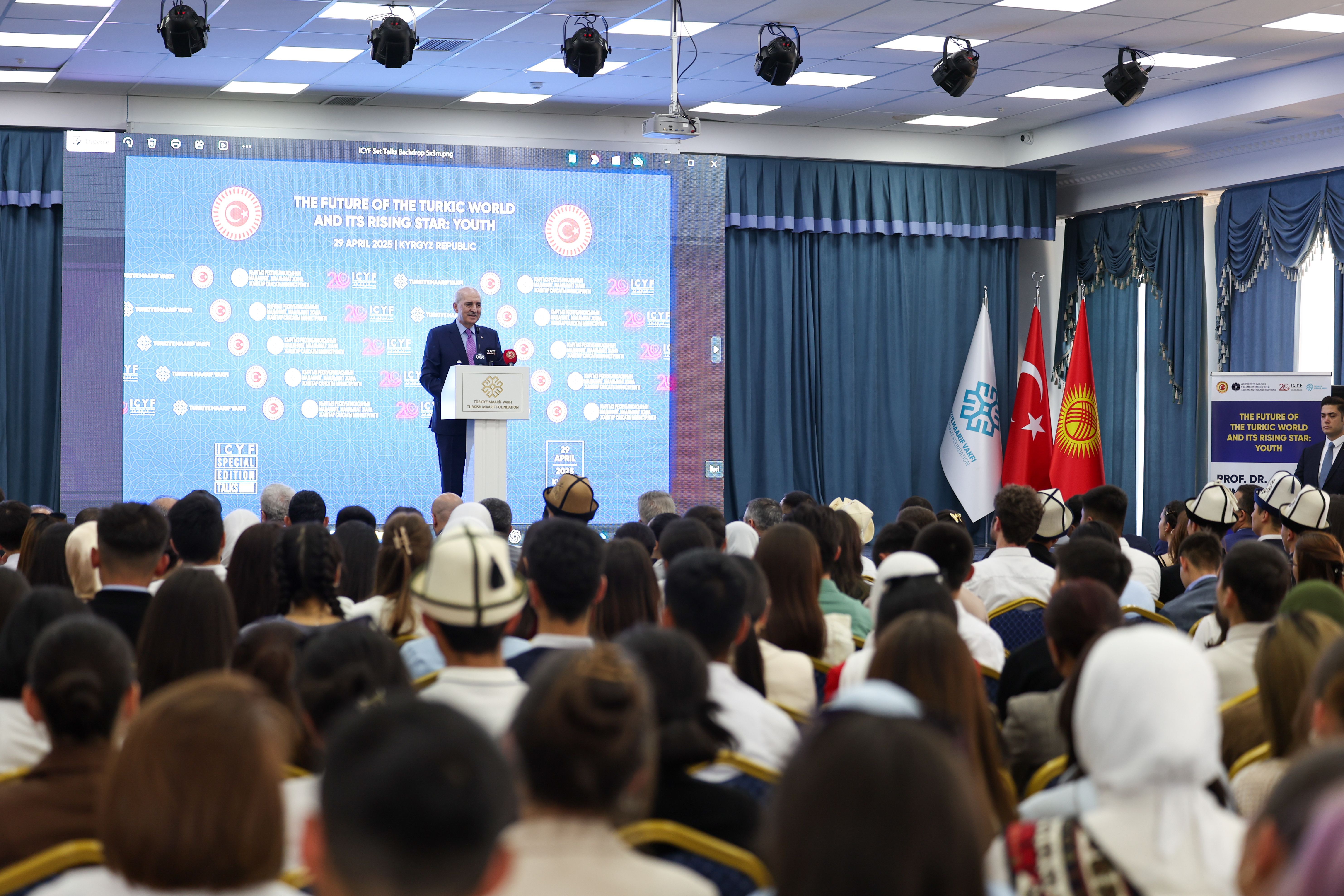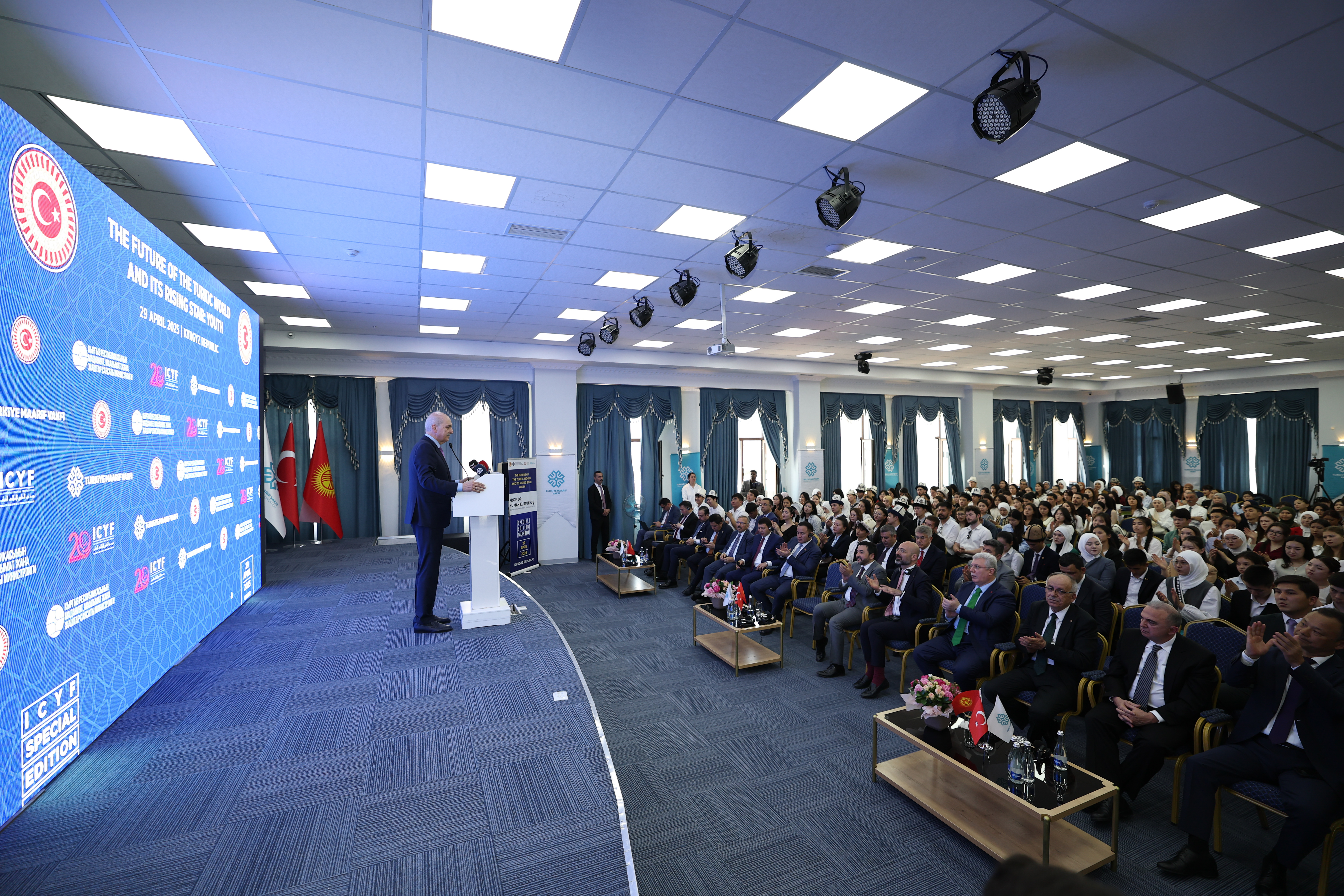 Kurtulmuş, Kırgızistan’ın başkenti Bişkek’teki resmi temasları kapsamında İslam İşbirliği Gençlik Forumu (ICYF) tarafından Türkiye Maarif Vakfı ve Kırgızistan Kültür, Enformasyon ve Gençlik Politikaları Bakanlığı işbirliğinde düzenlenen "Türk Dünyasının Geleceği ve Yükselen Yıldızı Gençlik” temalı konferansta katılımcılara hitap etti.