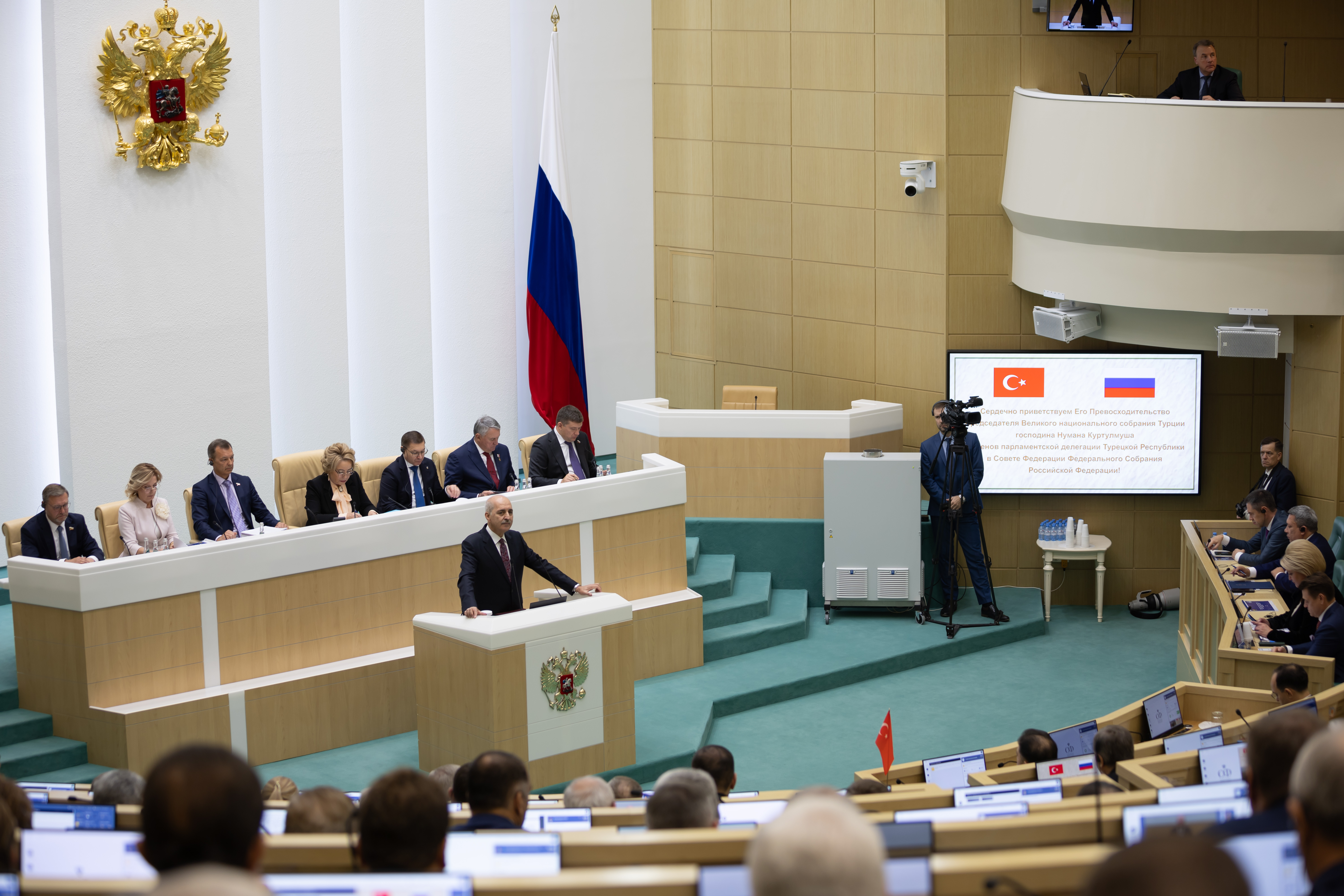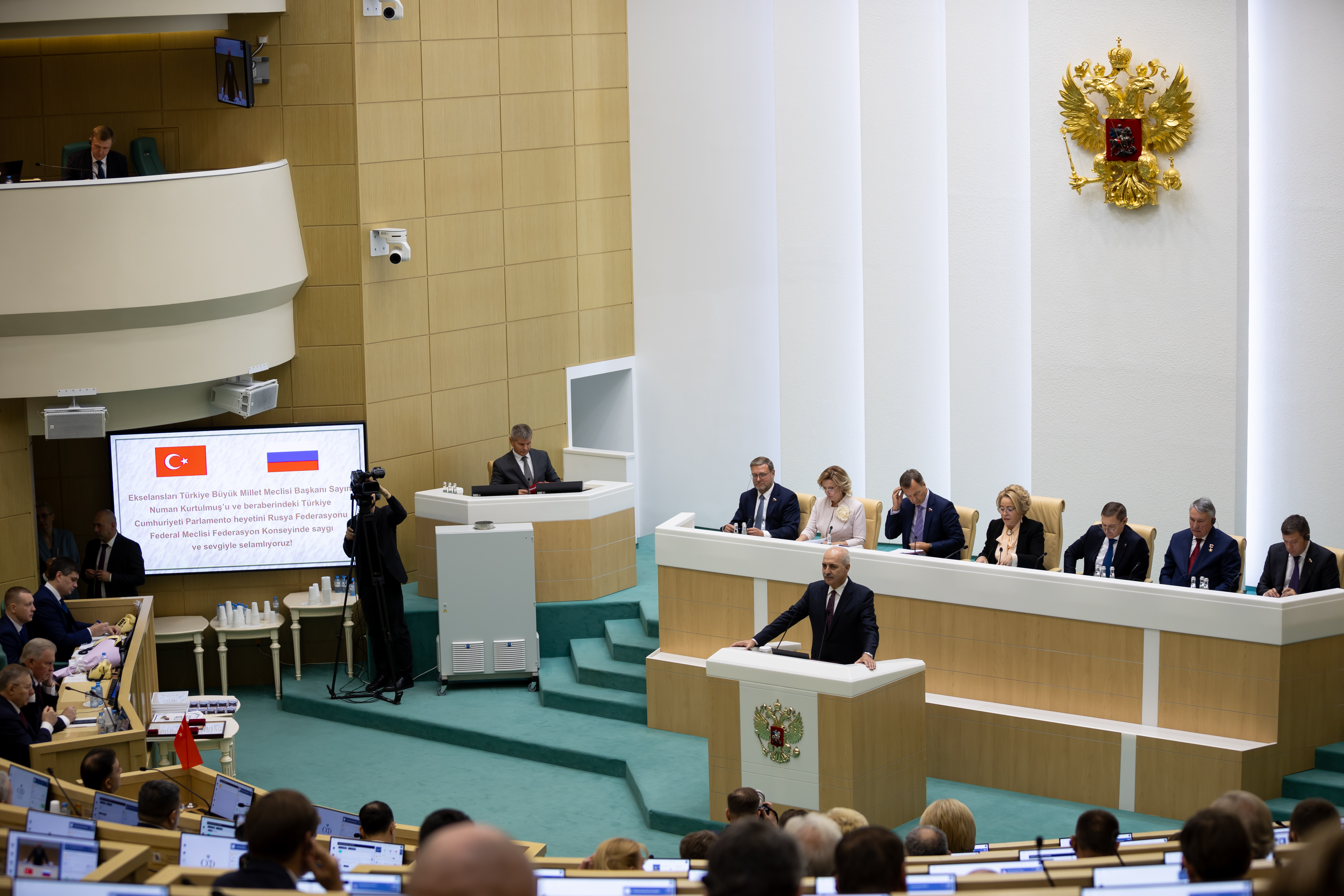 TBMM Başkanı Kurtulmuş, Rusya parlamentosunun üst kanadı Federasyon Konseyi Genel Kurulu'nun yeni yasama dönemi açılış toplantısında senatörlere hitap etti.