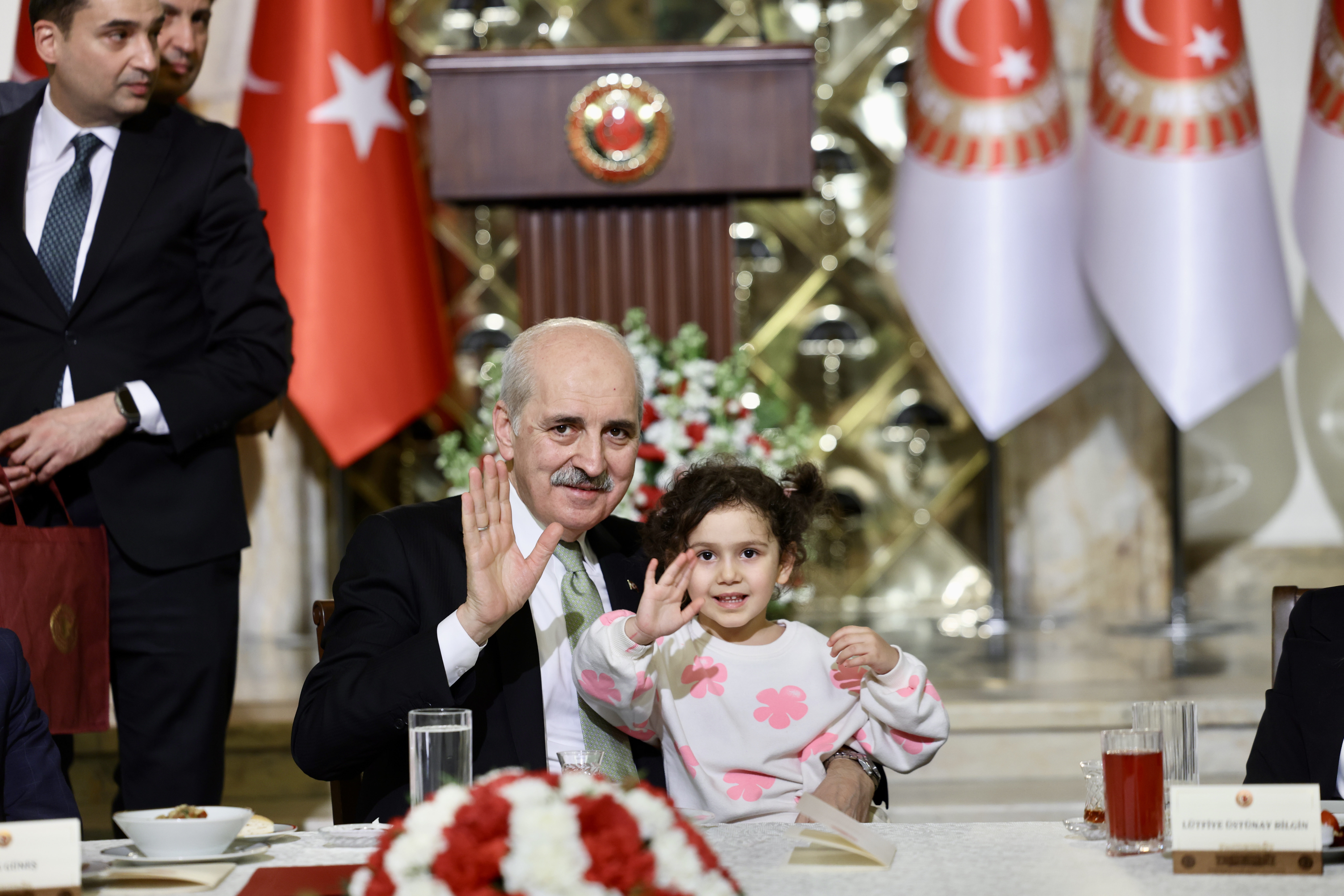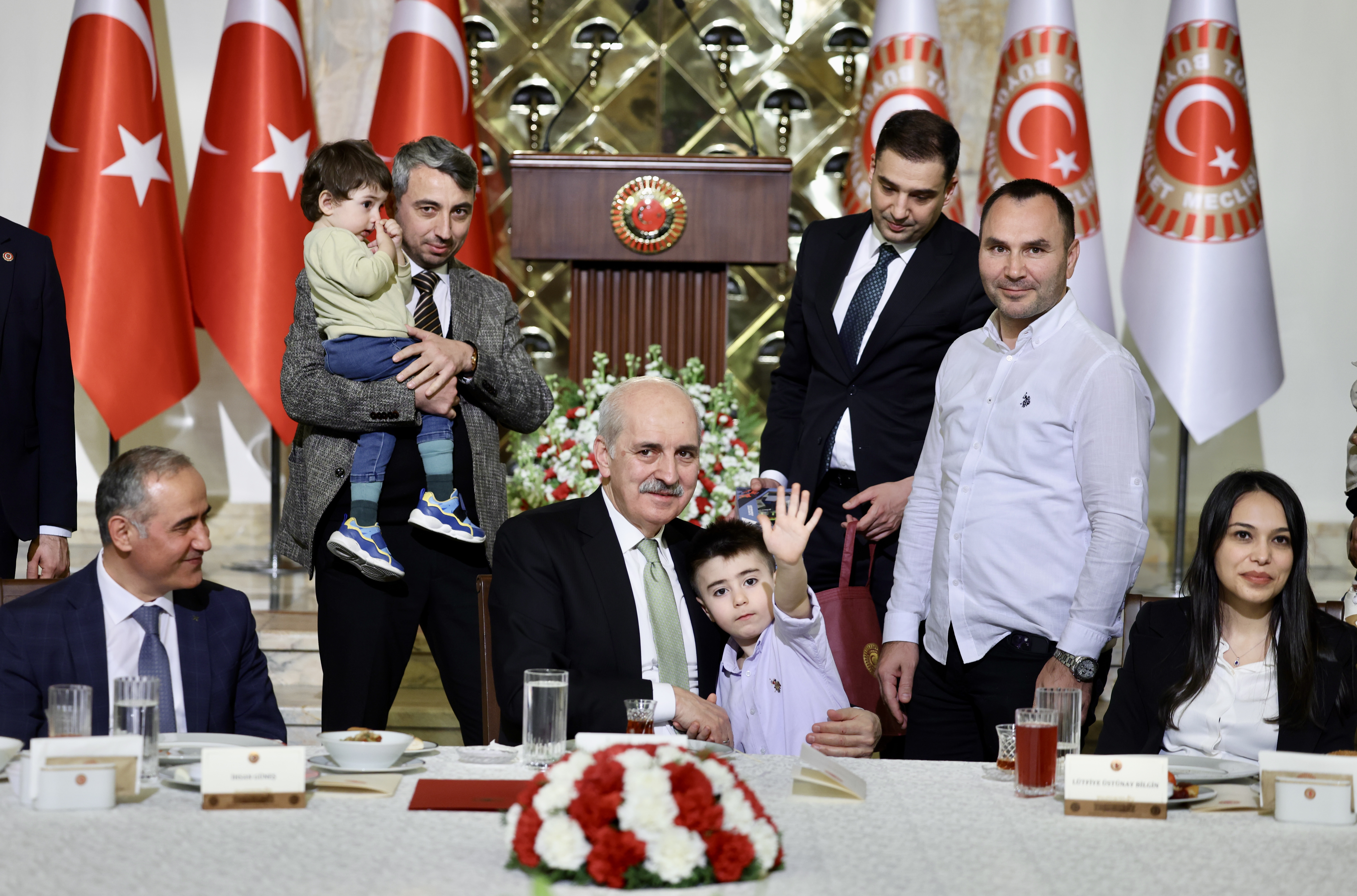 Kurtulmuş, konuşmasının ardından Meclis personeliyle fotoğraf çektirerek, çocuklarla da yakından ilgilendi.