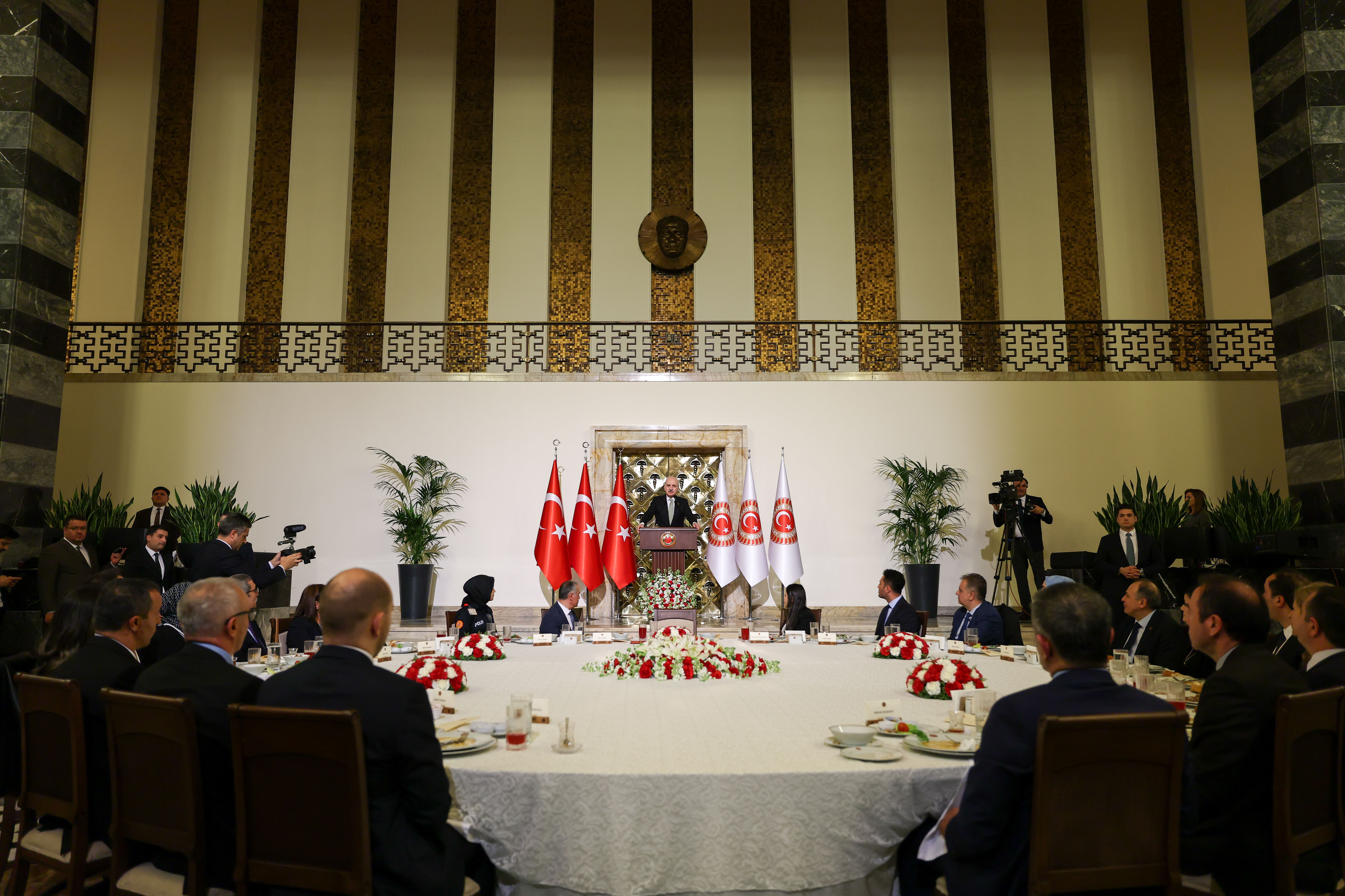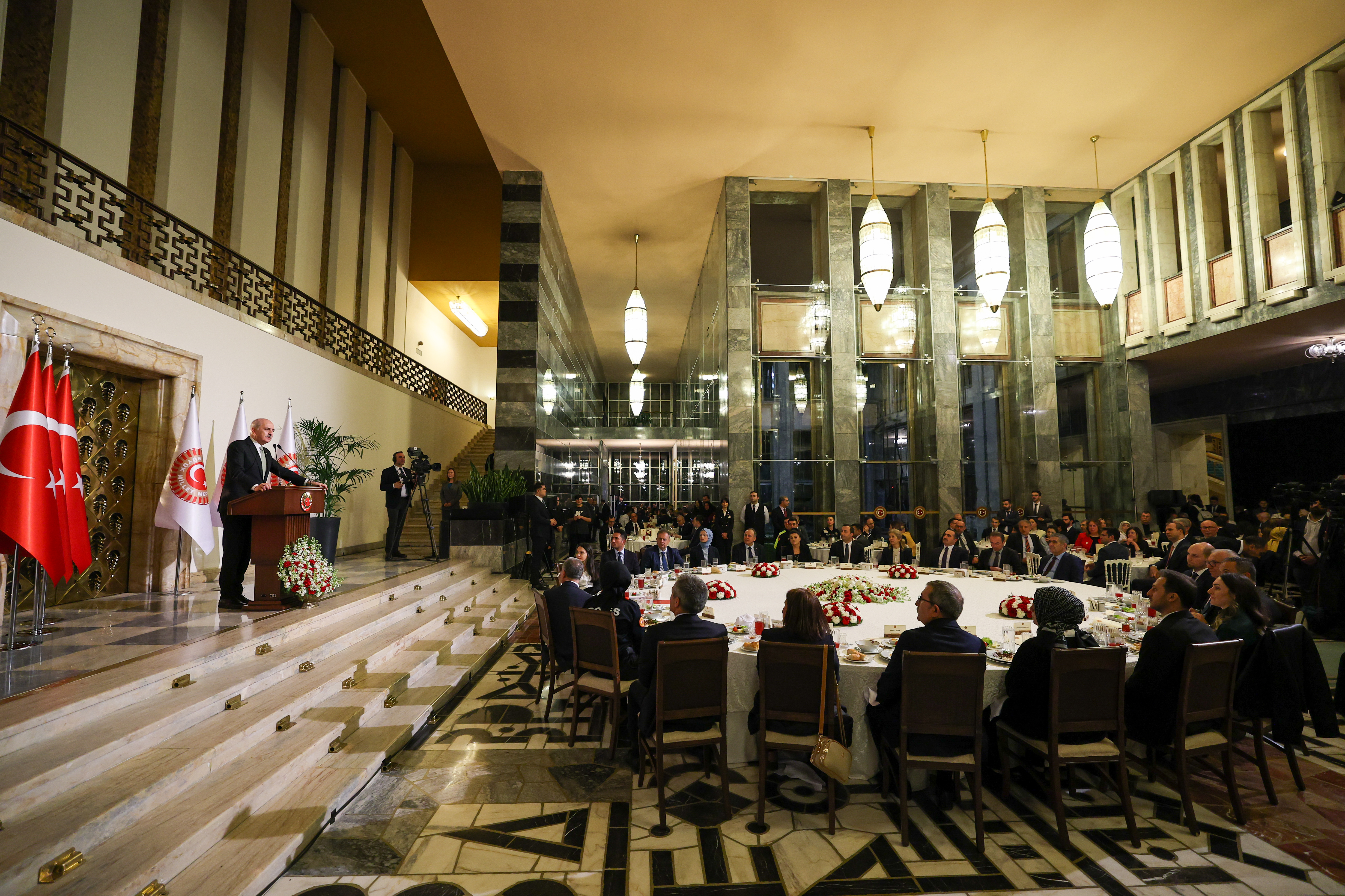 Meclis Başkanı Kurtulmuş, TBMM Şeref Holü’nde düzenlenen Meclis personeliyle iftar programında yaptığı konuşmada, TBMM’nin faaliyetlerinin görünmez kahramanları olan çalışma arkadaşlarıyla bir araya gelmekten memnuniyet duyduğunu söyleyerek, ramazanın herkese huzur ve barış getirmesi temennisini ifade etti.