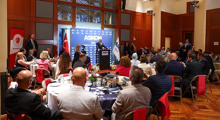 “Özellikle ticaret alanında Türkiye’nin ihracatında iki numara ABD’dir. Türkiye’nin ithalatında, ABD beş numaralı devlettir. Fevkalade yoğun bir ticari ilişkimizin olduğu, aşağı yukarı 38 milyar dolar civarında ikili ticaret hacmine sahip olduğumuz ABD ile olan ilişkilerimizin özellikle siz iş insanları üzerinden daha fazla kuvvetlendirmek durumundayız. İki ülke arasındaki bu ikili ticaret hacminin 100 milyar dolar seviyesine çıkması için iki tarafta da irade mevcuttur, bunun için yeterli potansiyel ortadadır. Bunun için gayret sarf edeceğiz.