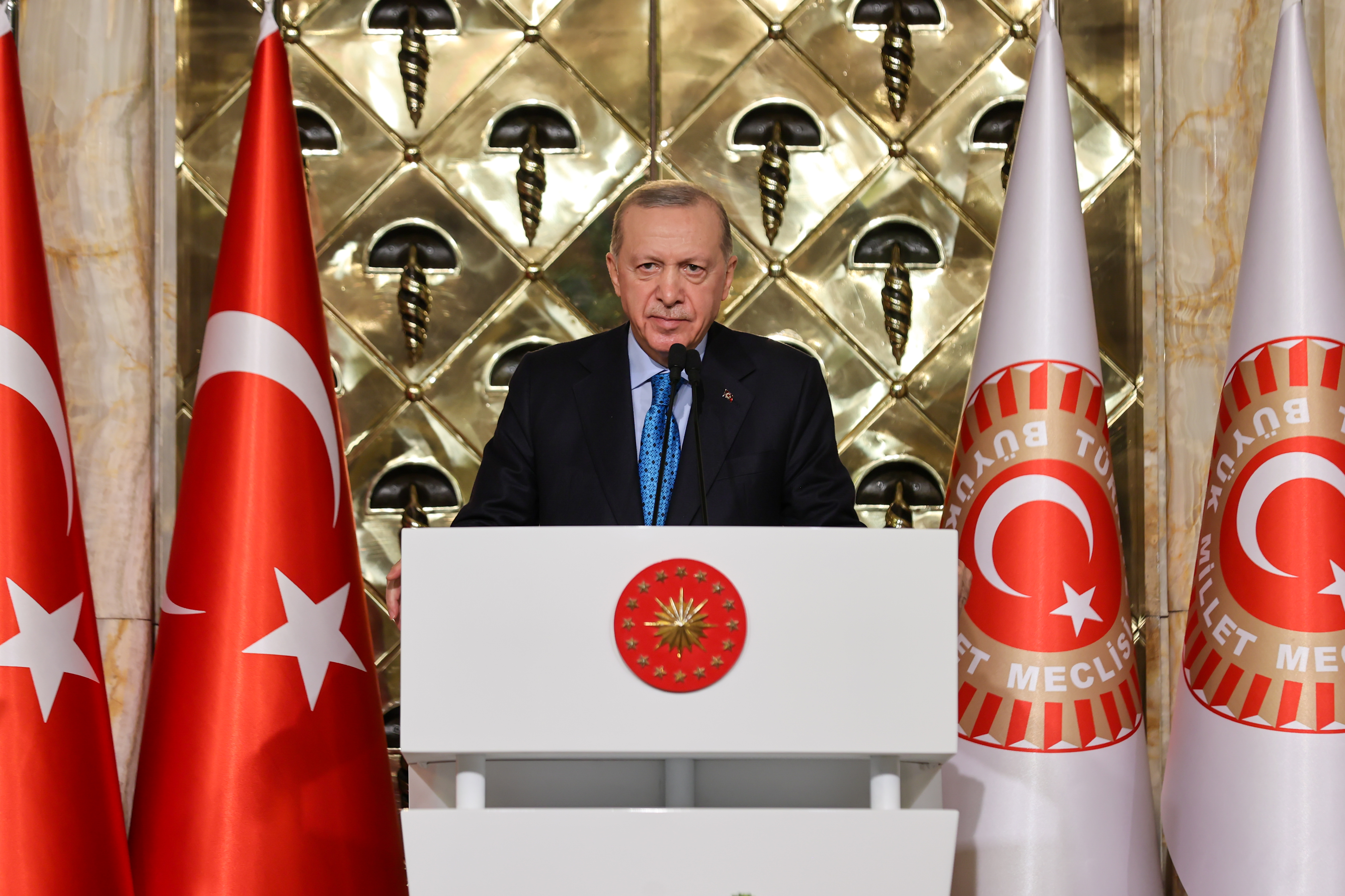 Hiç şüphesiz, bu süreçte Meclis’teki siyasi partilerimize de tarihi sorumluluklar, yükümlülükler düşüyor. İnşallah en kısa zamanda bu mesele bütünüyle geride bırakıldığında, Türkiye daha fazla huzurlu, daha fazla istikrarlı, daha fazla güvenli ve bölgesinin bir istikrar adası olma vasfını artık tamamen pekiştirmiş bir ülke olacaktır.”