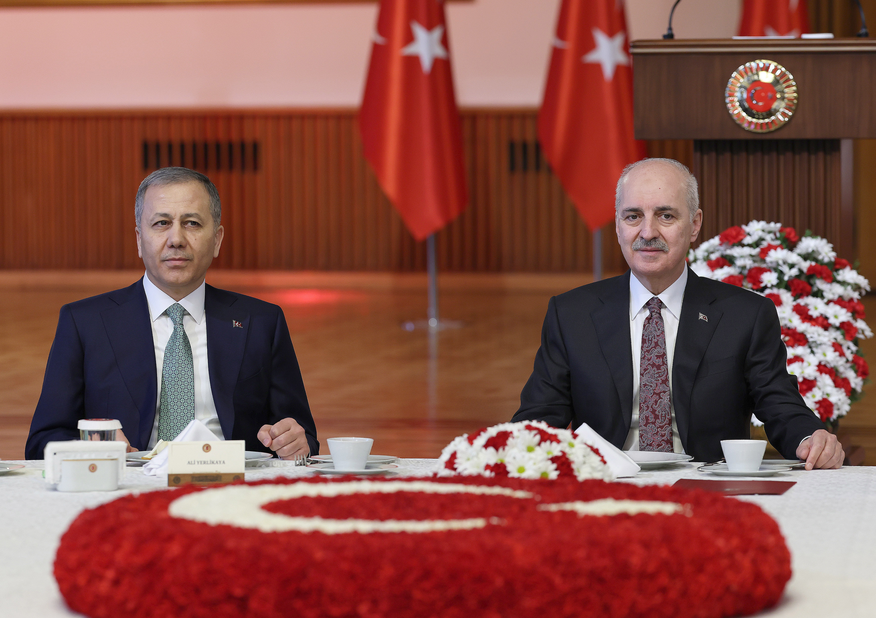 TBMM Başkanı Kurtulmuş, konuşmasının ardından İçişleri Bakanı Ali Yerlikaya ve valilerle fotoğraf çektirdi.