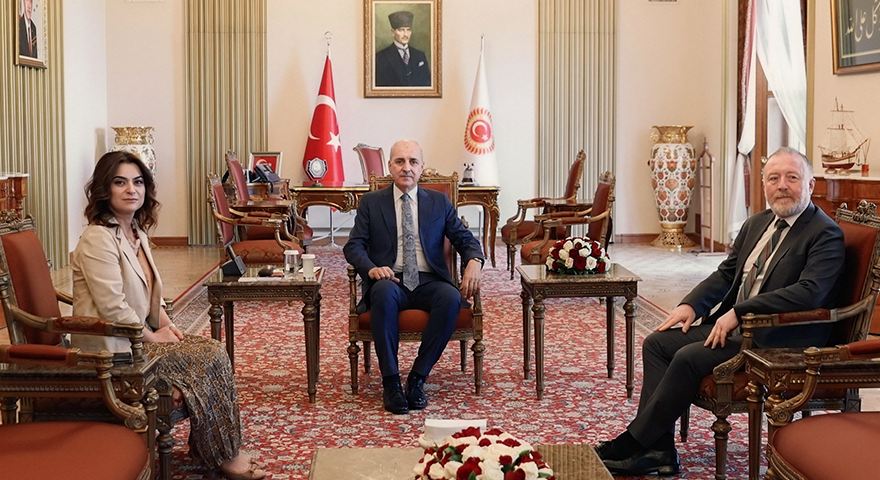 TBMM Başkanı Numan Kurtulmuş, DEM Parti Grup Başkanvekilleri Gülüstan Kılıç Koçyiğit ve Sezai Temelli'yi kabul etti.