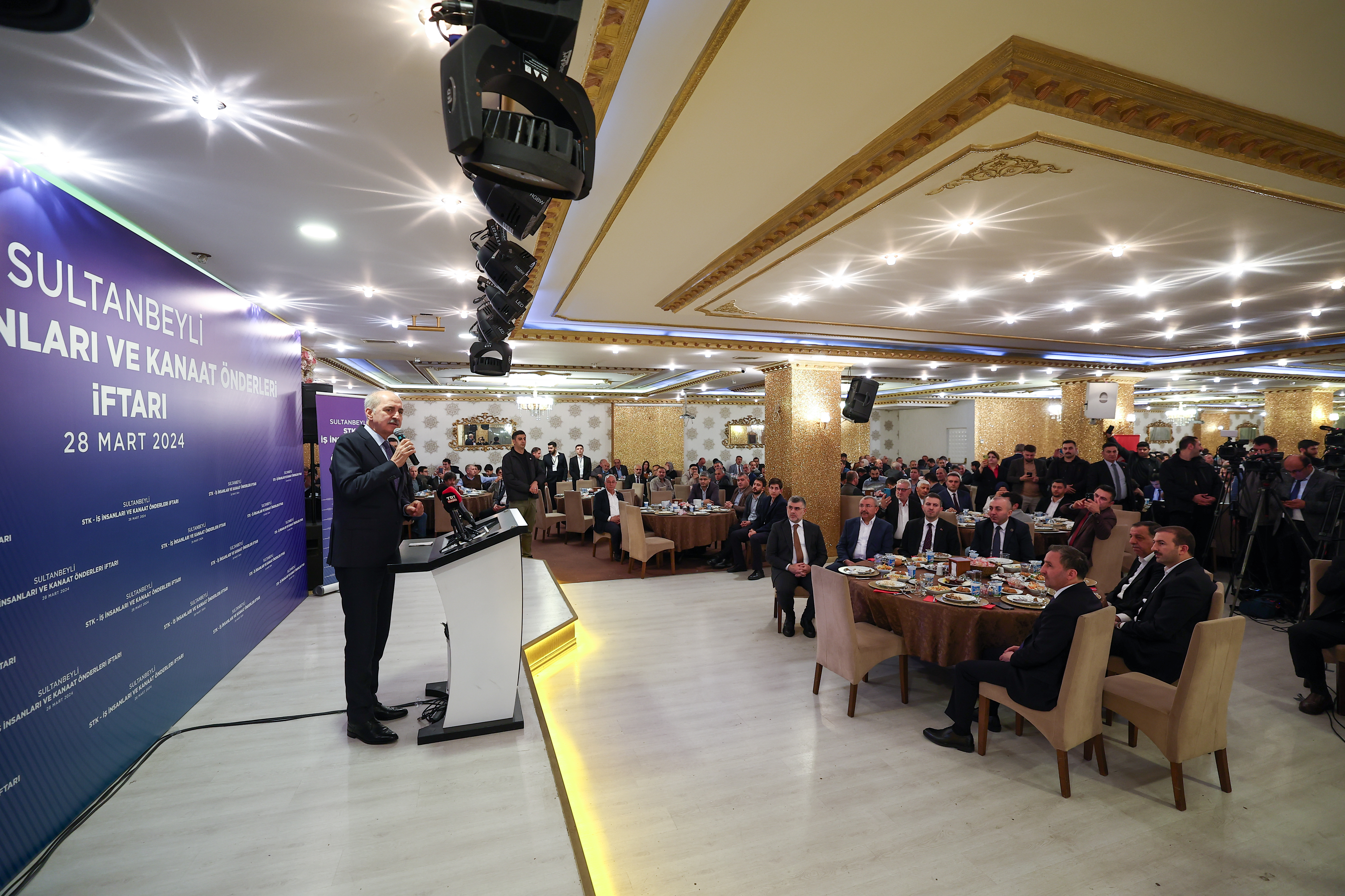Meclis Başkanı Kurtulmuş, Sultanbeyli’deki bir salonda, sivil toplum kuruluşları, iş insanları ve kanaat önderleriyle bir araya geldiği iftar programında yaptığı konuşmada, Sultanbeyli’deki vatandaşlarla bir arada olmaktan duyduğu memnuniyeti dile getirerek, ramazanın hayırlı olmasını diledi.