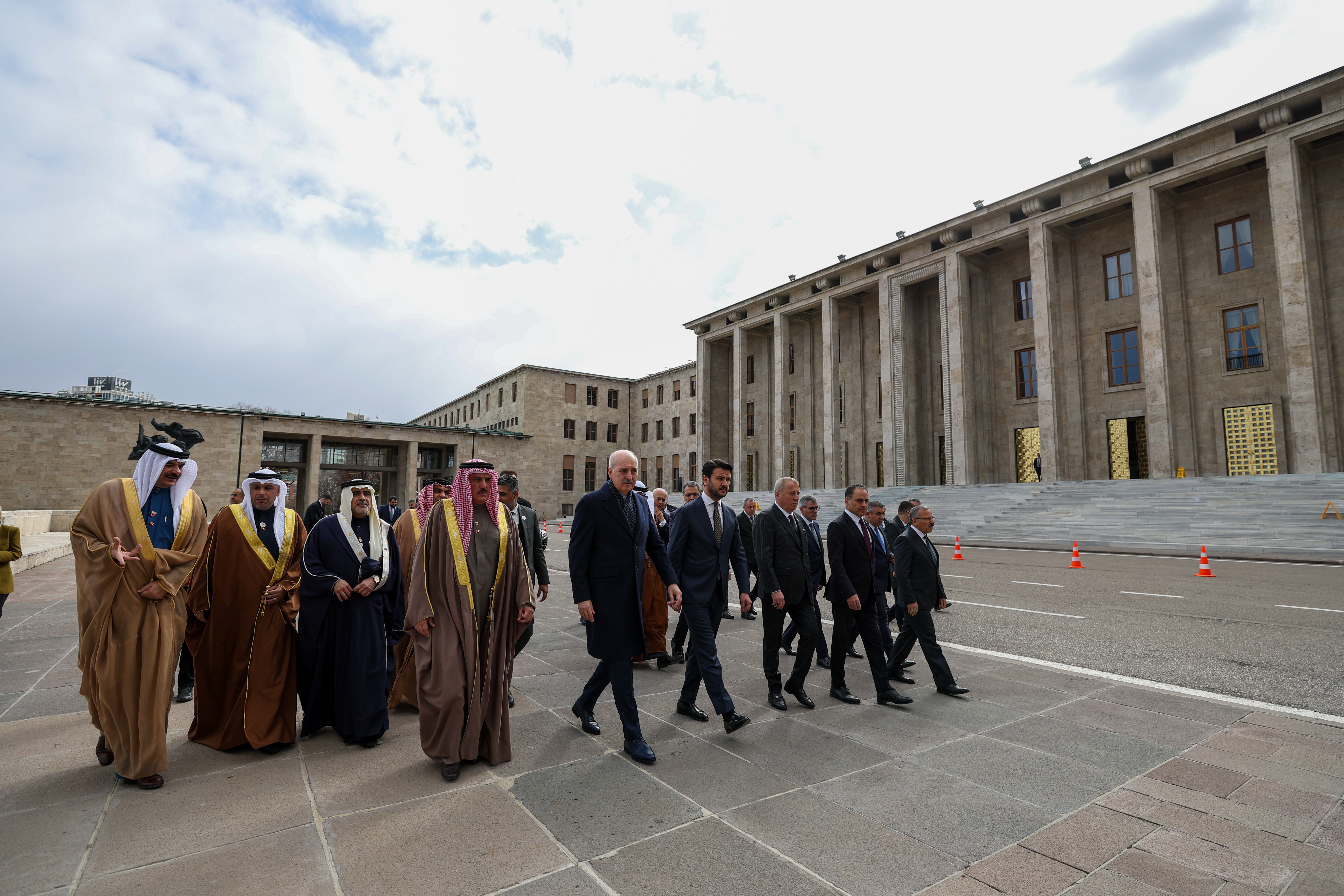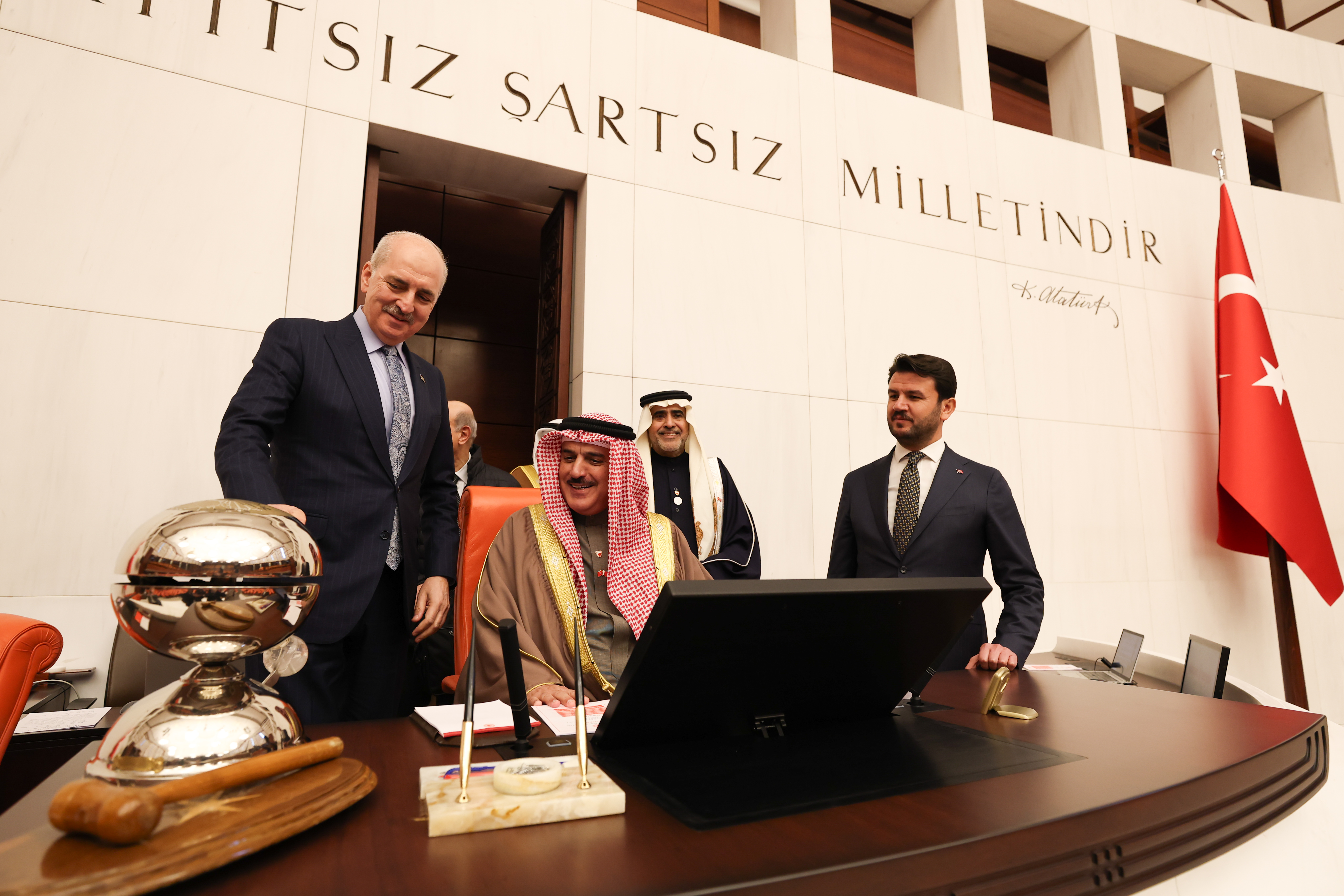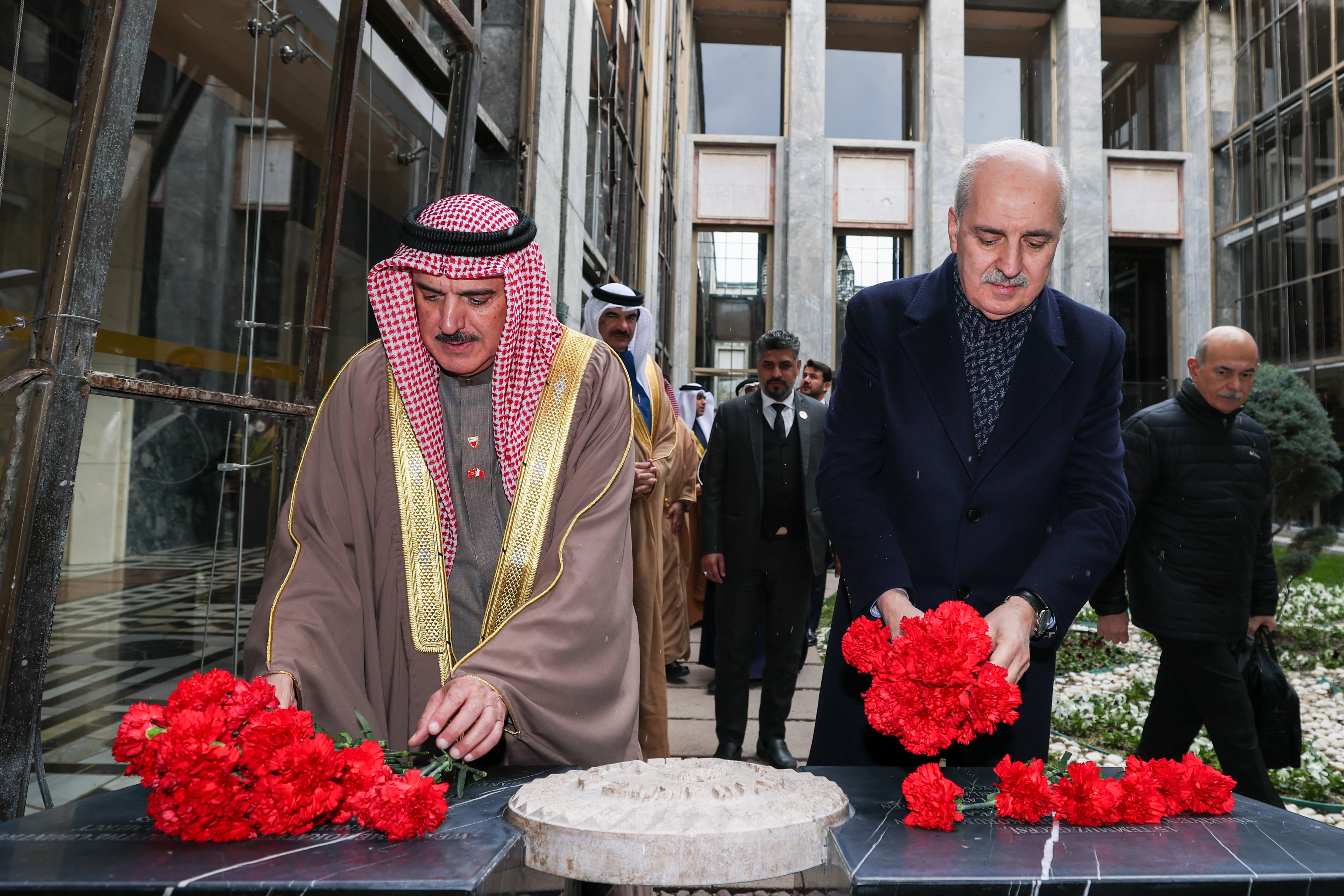 Kurtulmuş ve Al Musalam, daha sonra FETÖ'nün 15 Temmuz'daki darbe girişimi sırasında bombalanan Meclis'teki alana karanfil bıraktı, TBMM Genel Kurul Salonu'nu ziyaret etti.
