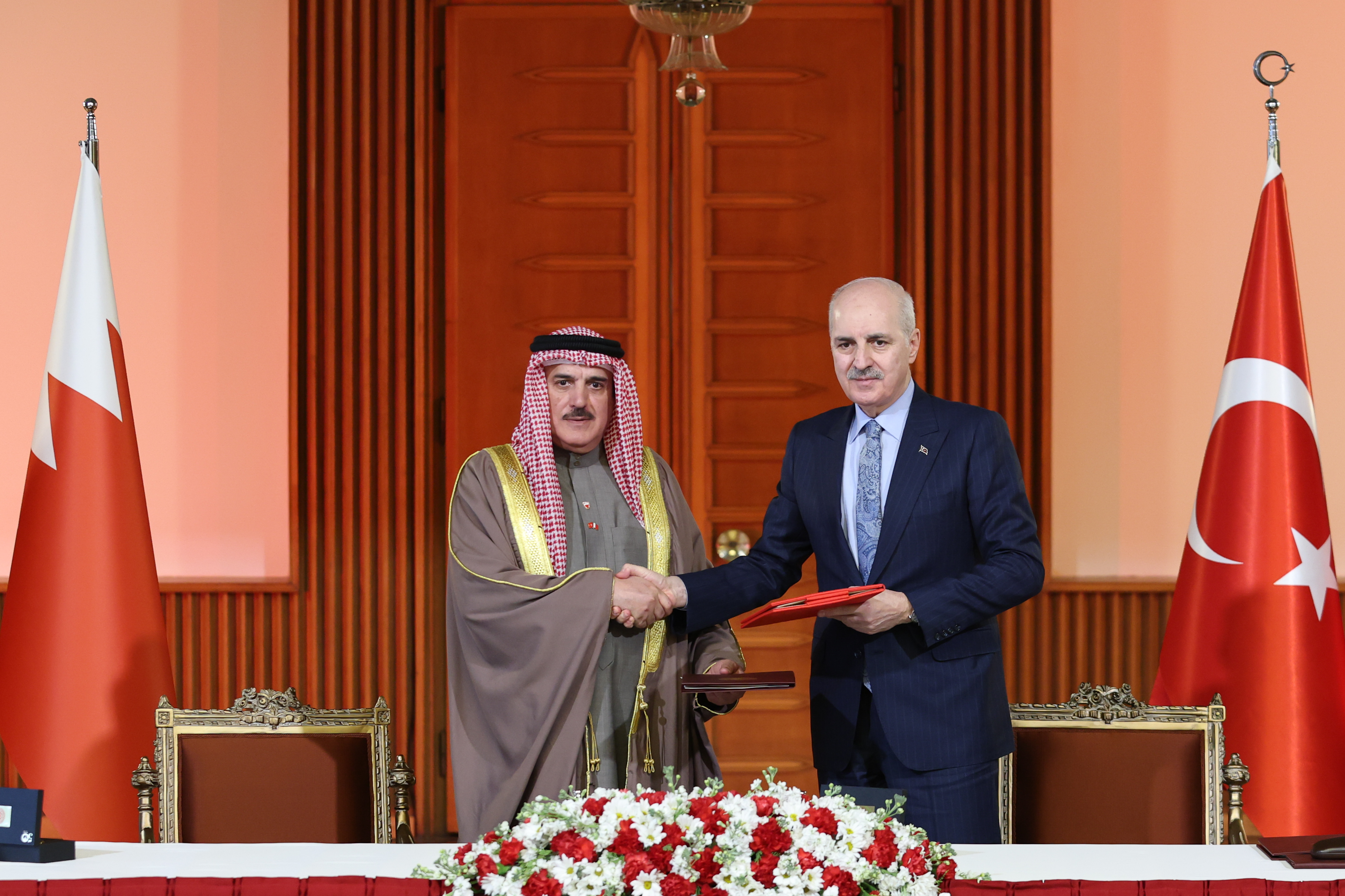 Kurtulmuş ve Al Musalam, baş başa ve heyetler arası görüşmenin ardından TBMM Tören Salonu’nda, “Türkiye Büyük Millet Meclisi ile Bahreyn Temsilciler Meclisi Arasında İş Birliği Protokolü”nü imzaladı.