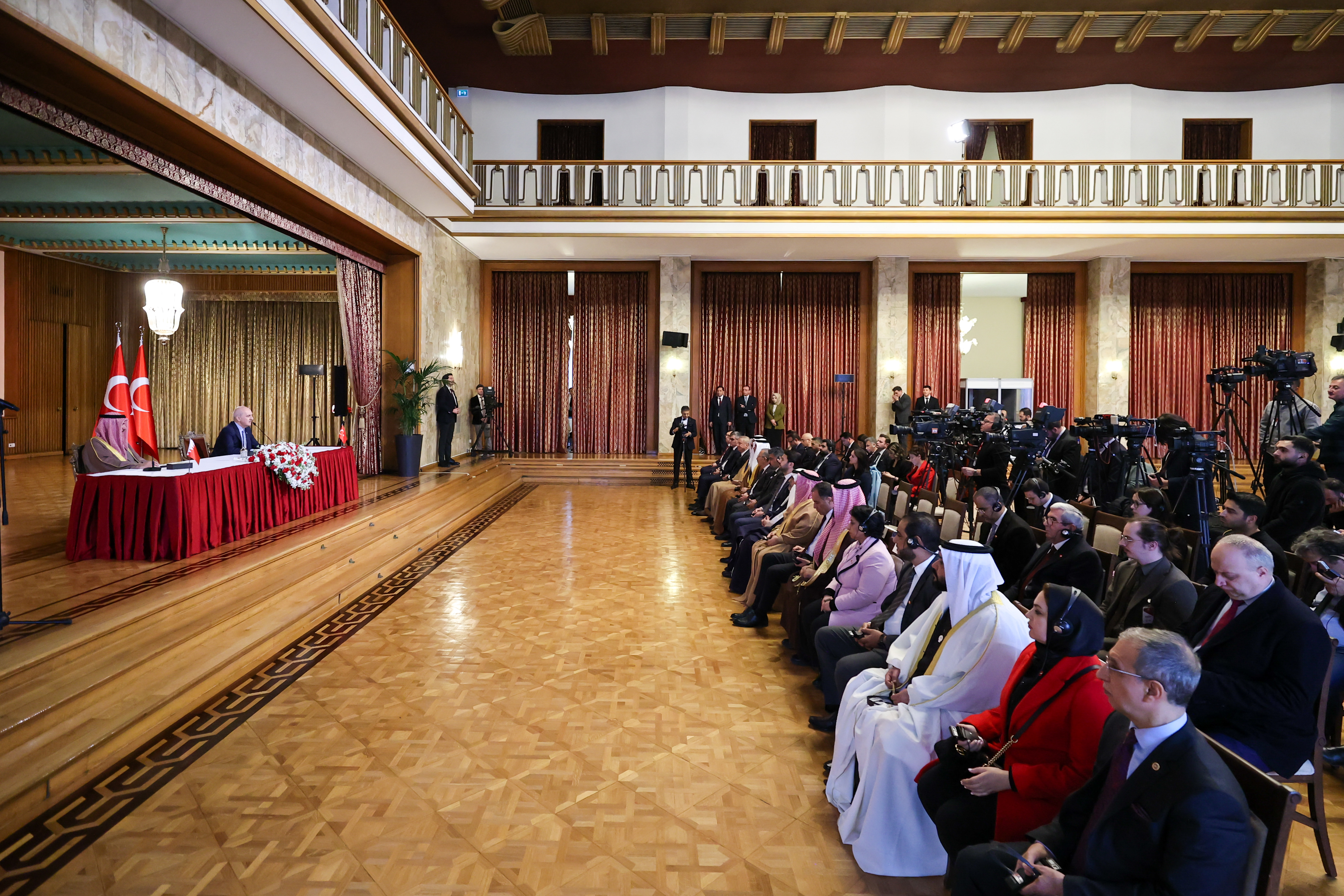 TBMM Başkanı Kurtulmuş ve Al Musalam, imza töreninin ardından ortak basın toplantısı düzenledi.