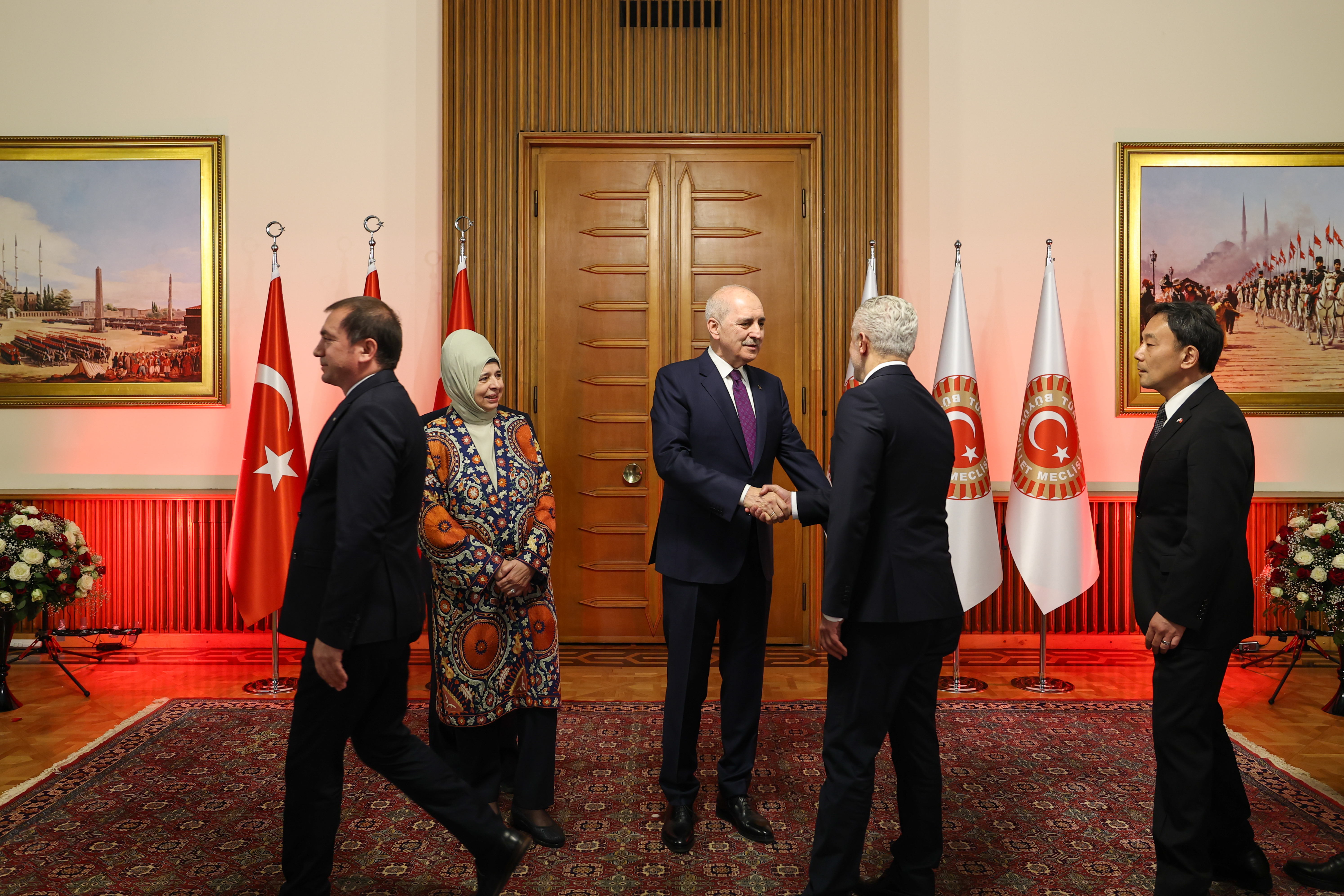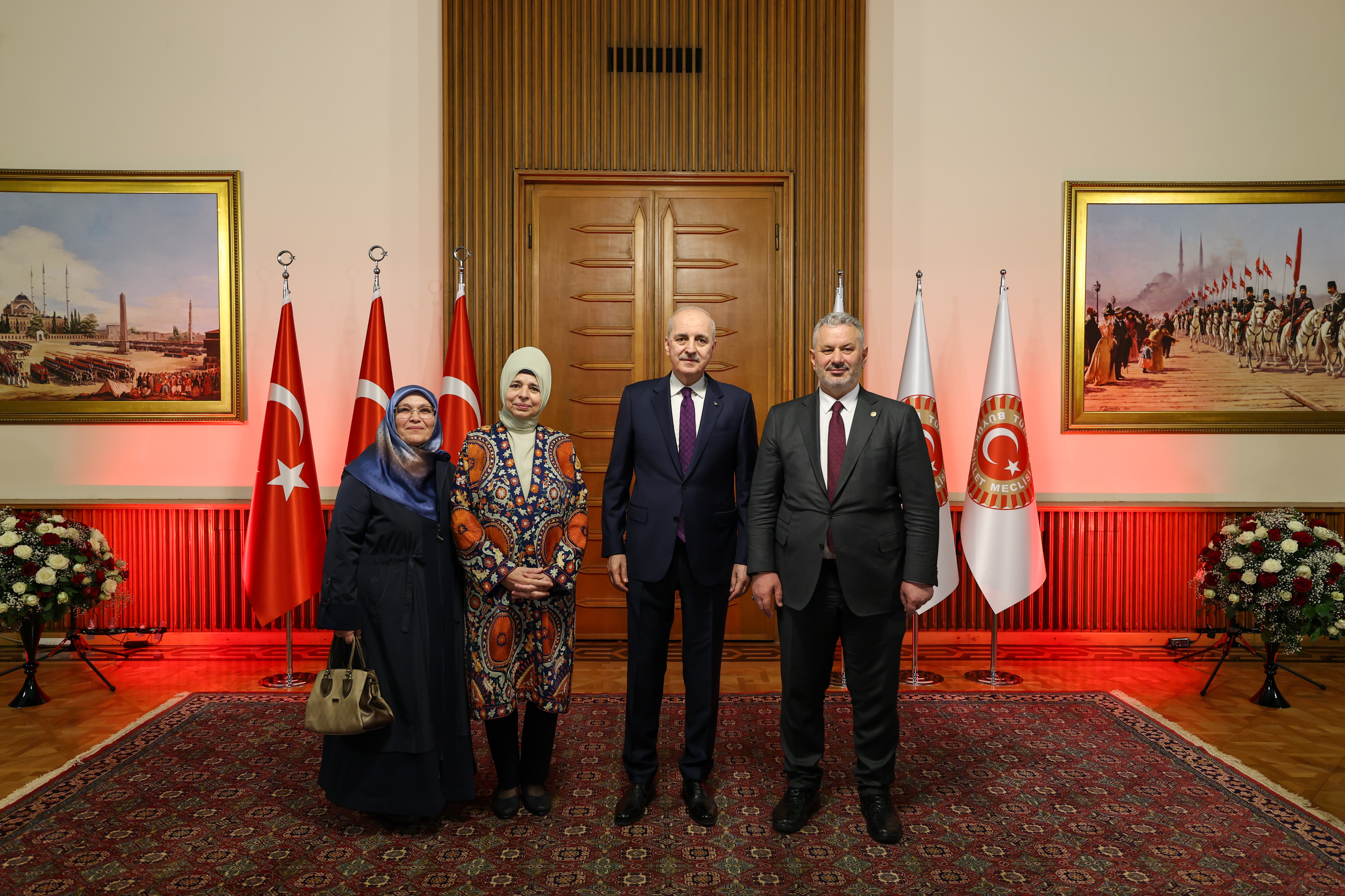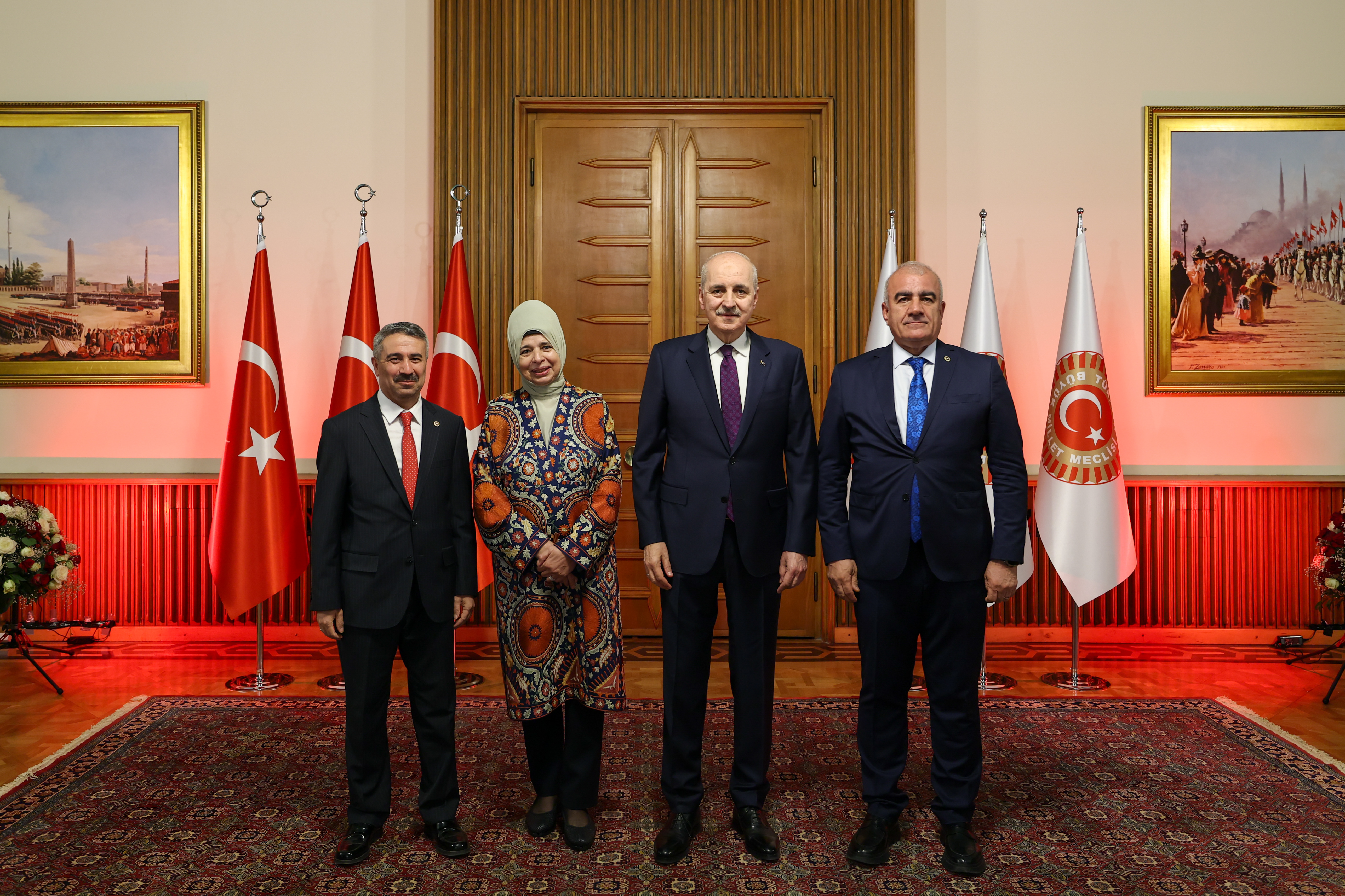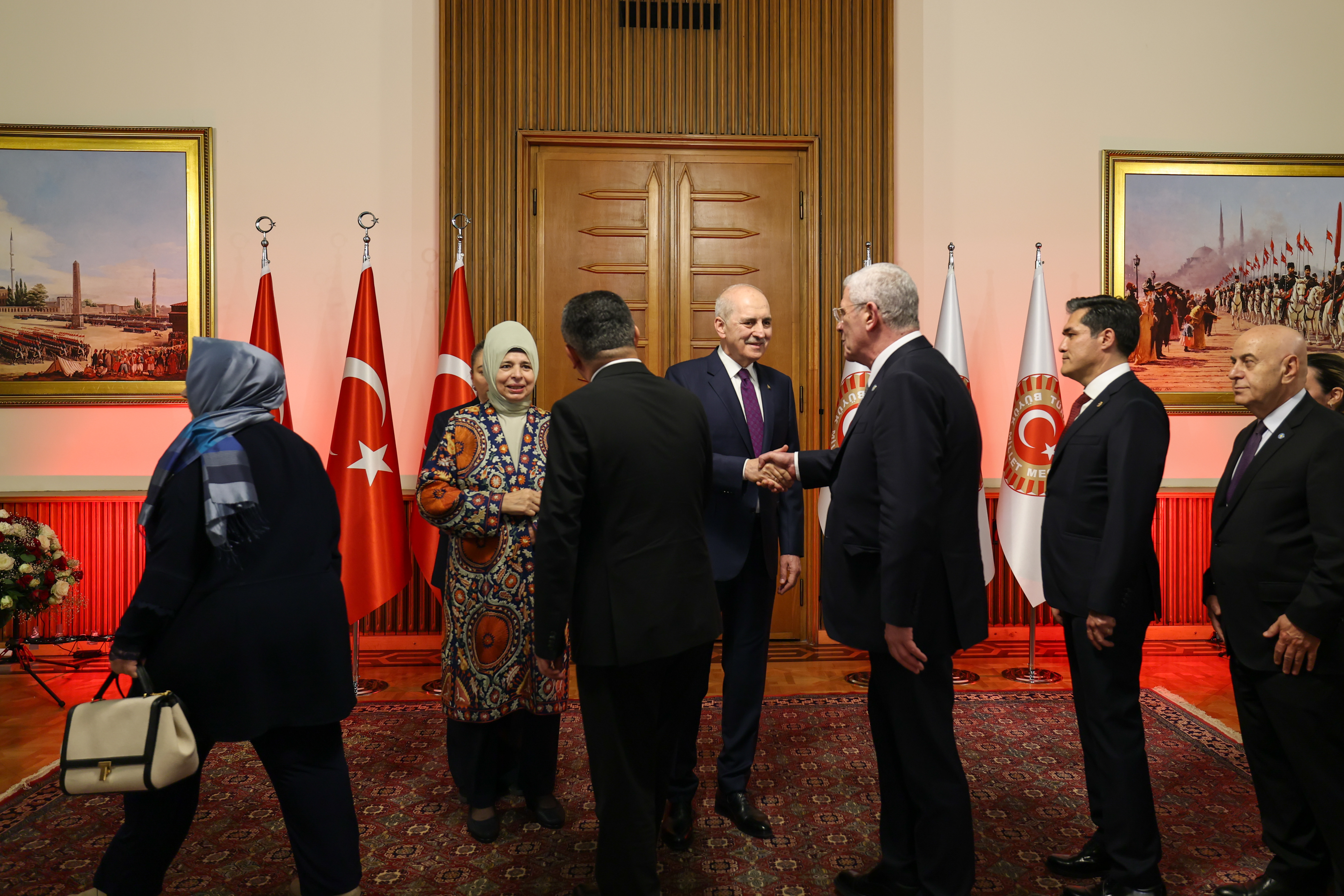 Meclis Tören Salonu'ndaki resepsiyonda Kurtulmuş ve eşi Sevgi Kurtulmuş, davetlileri salonun girişinde karşıladı, tebrikleri kabul etti ve fotoğraf çektirdi.