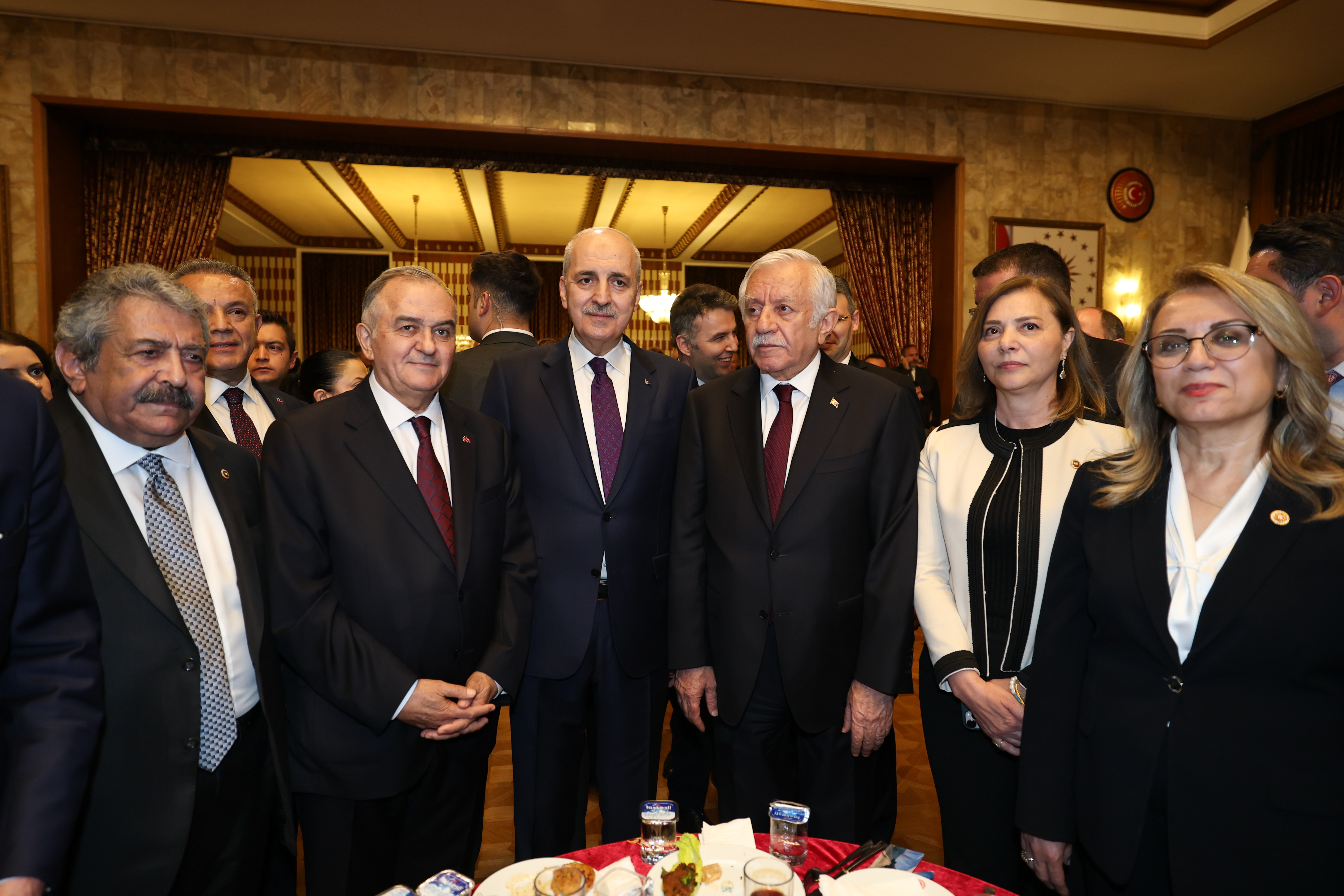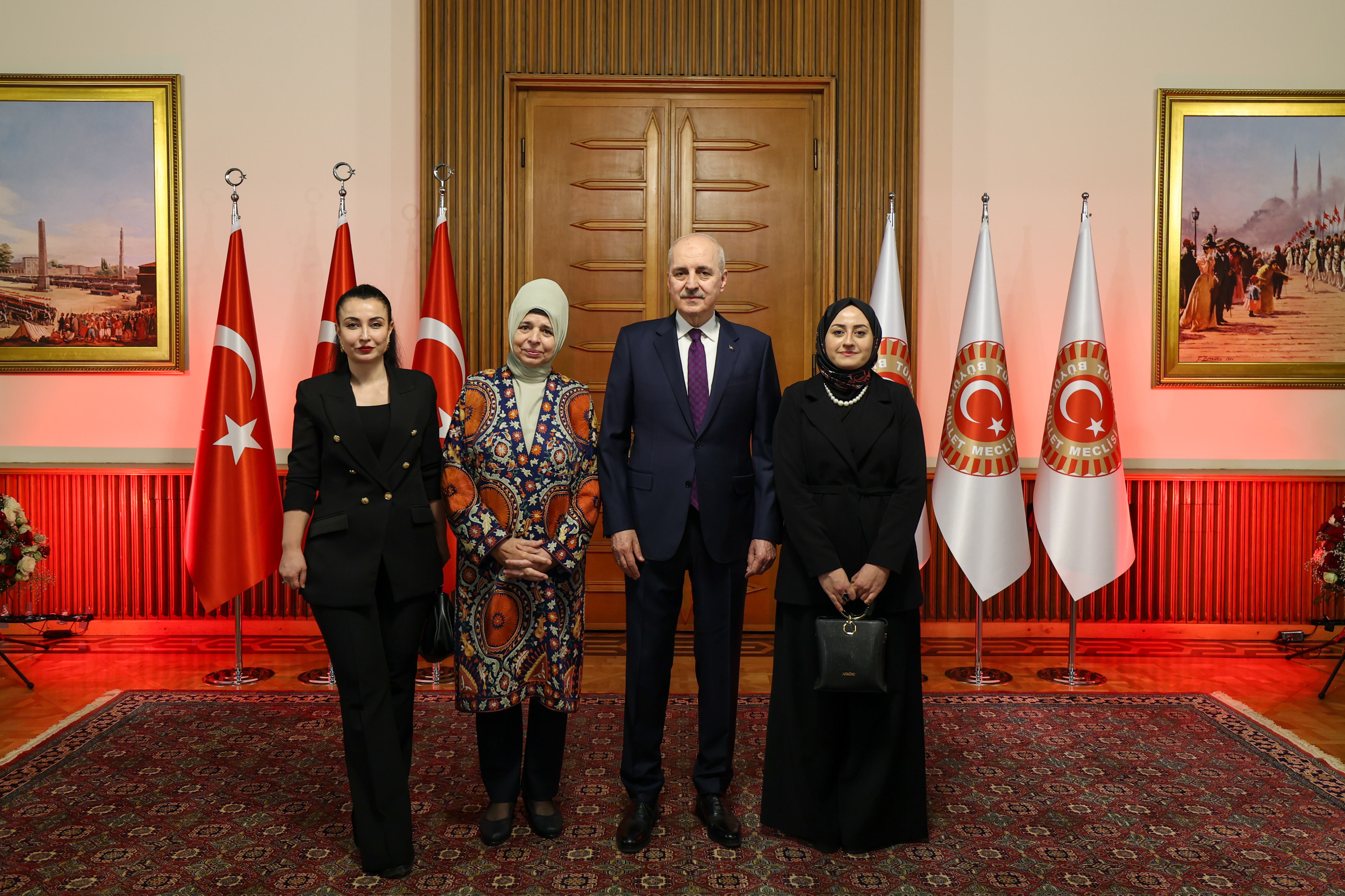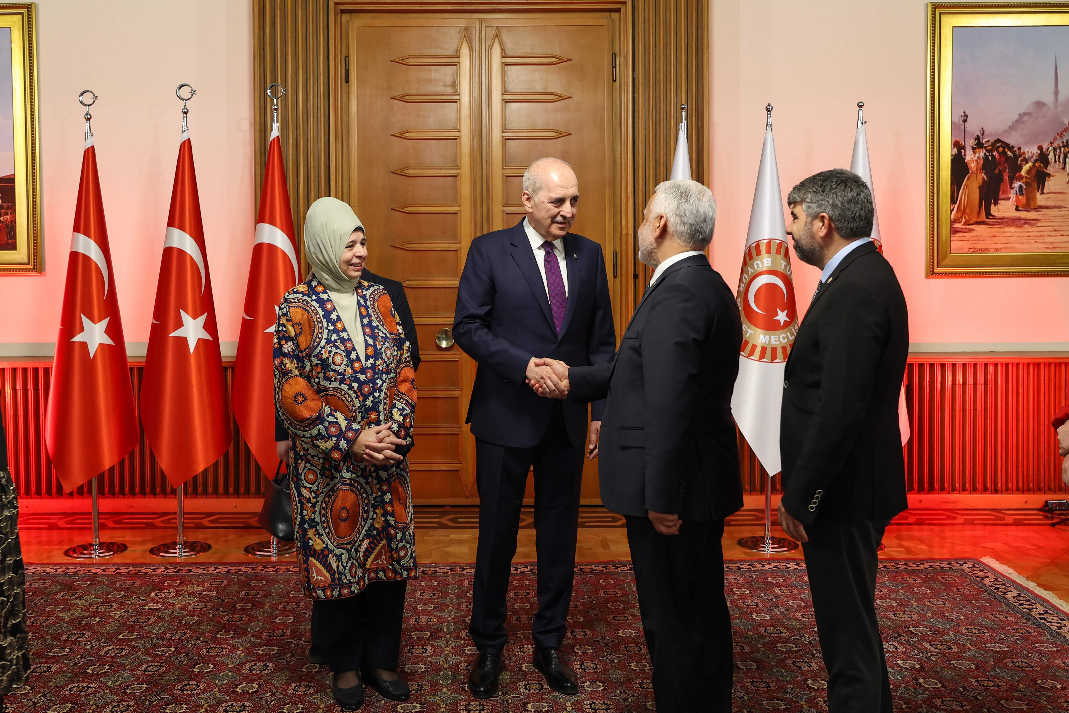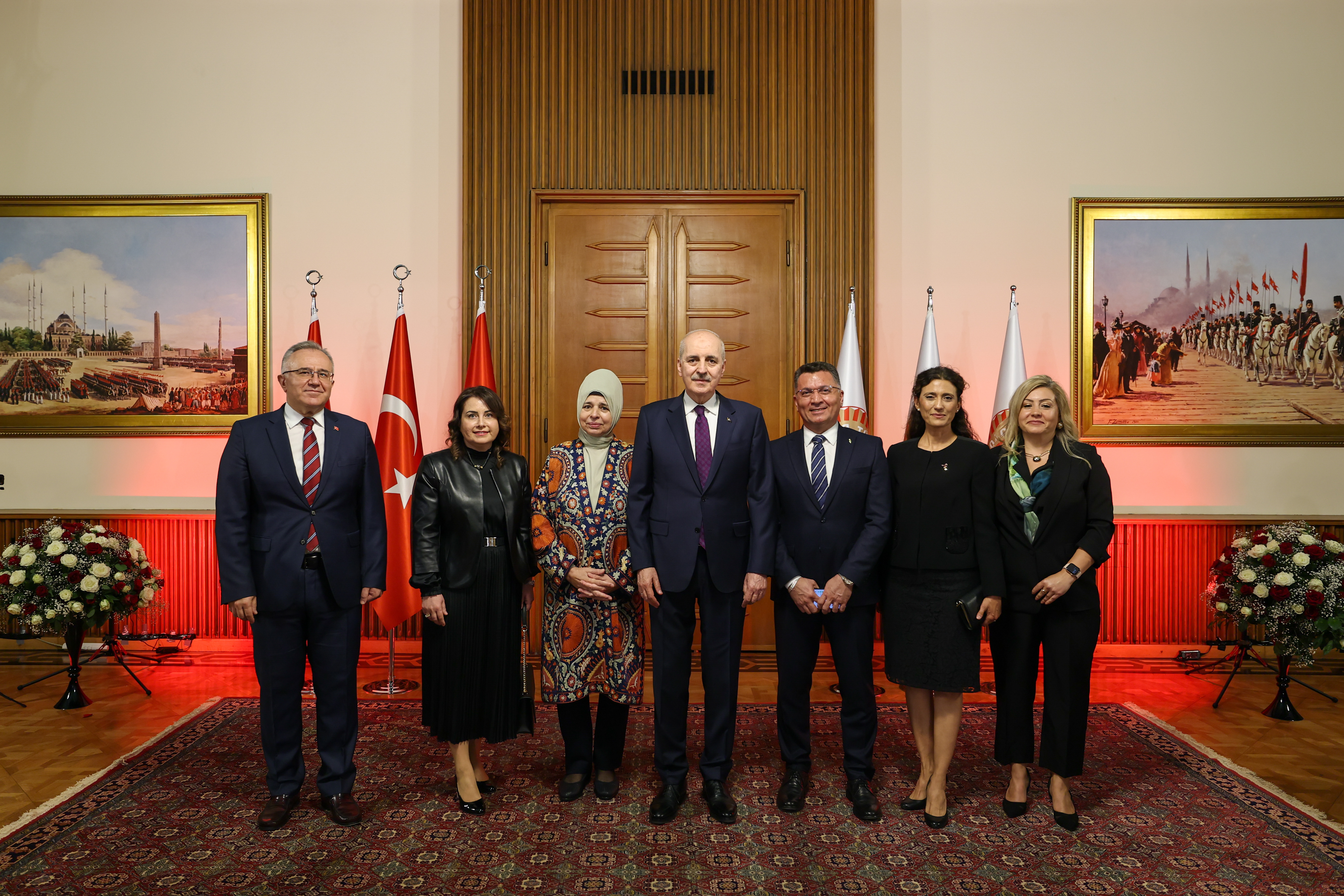 Meclis Tören Salonu'ndaki resepsiyonda Kurtulmuş ve eşi Sevgi Kurtulmuş, davetlileri salonun girişinde karşıladı, tebrikleri kabul etti ve fotoğraf çektirdi.