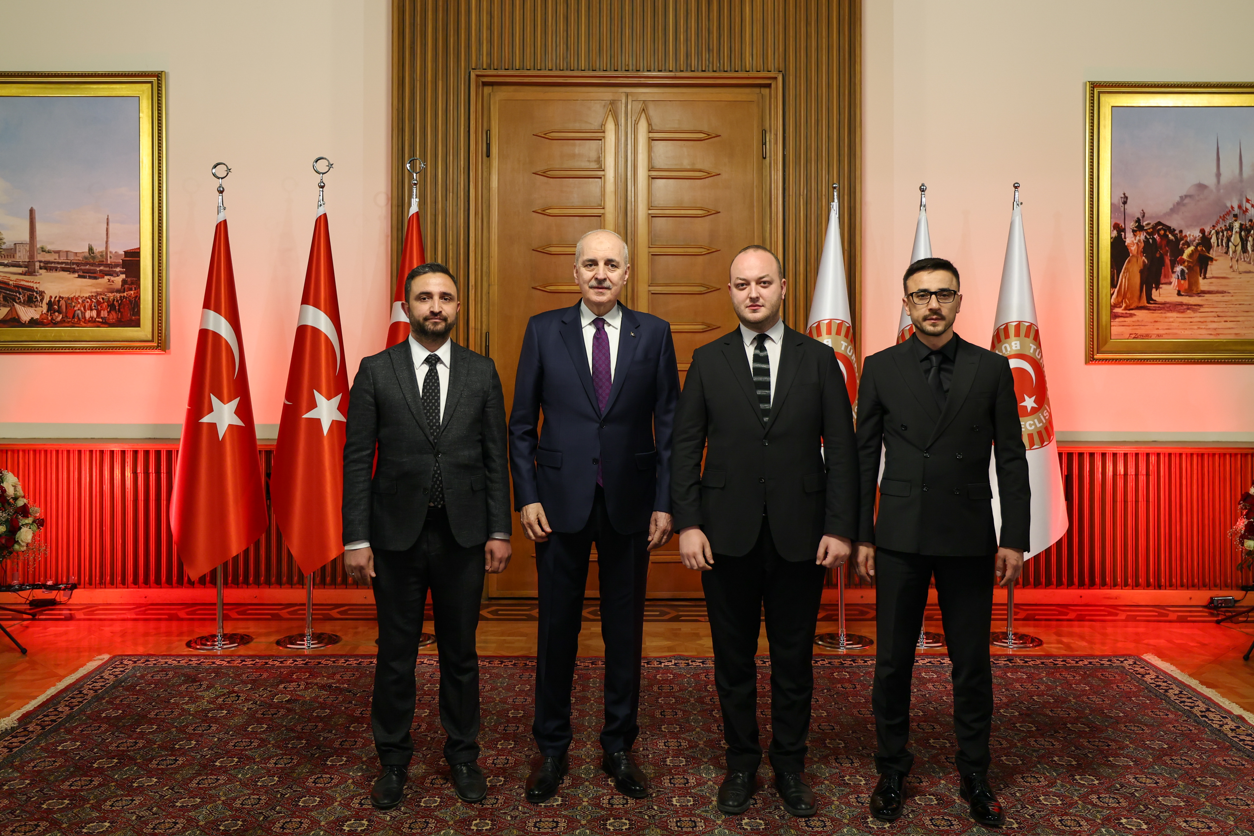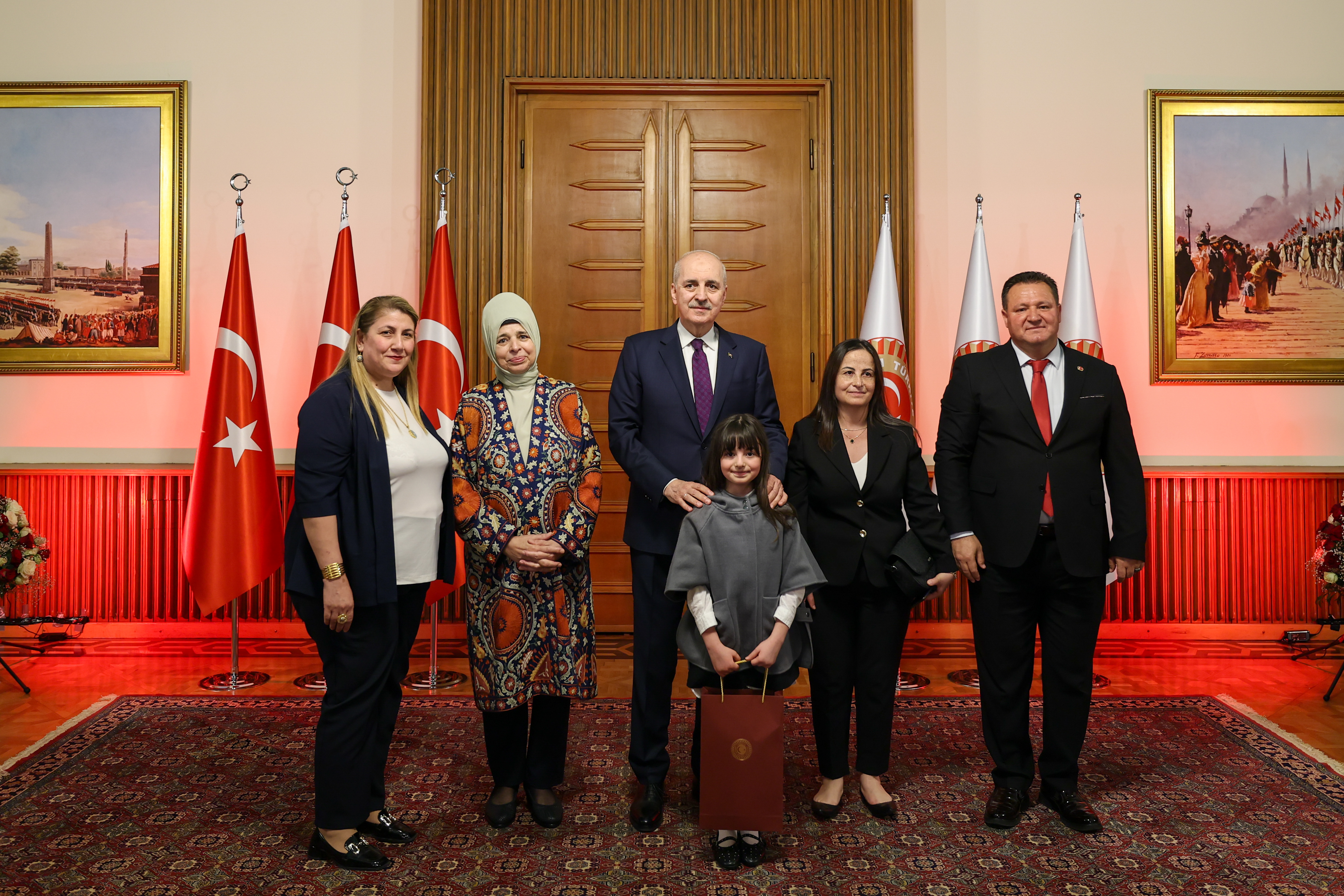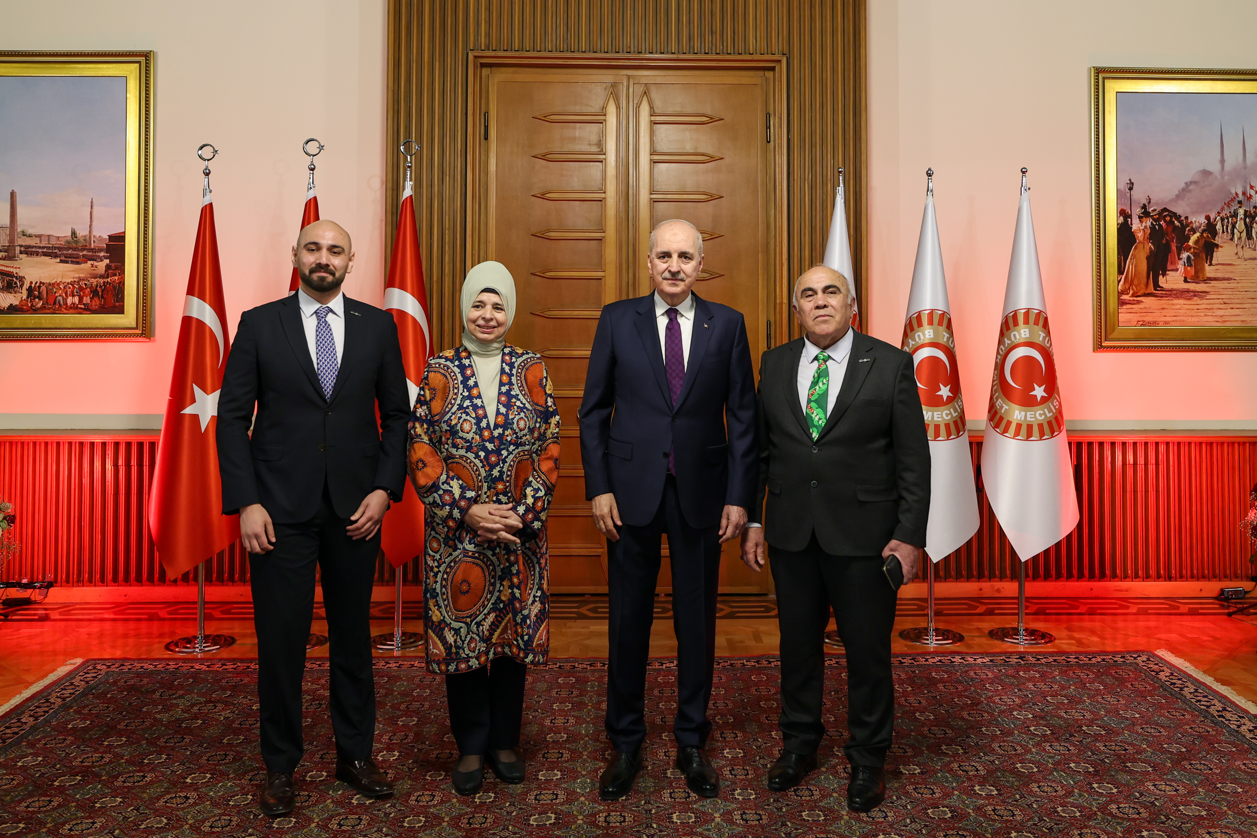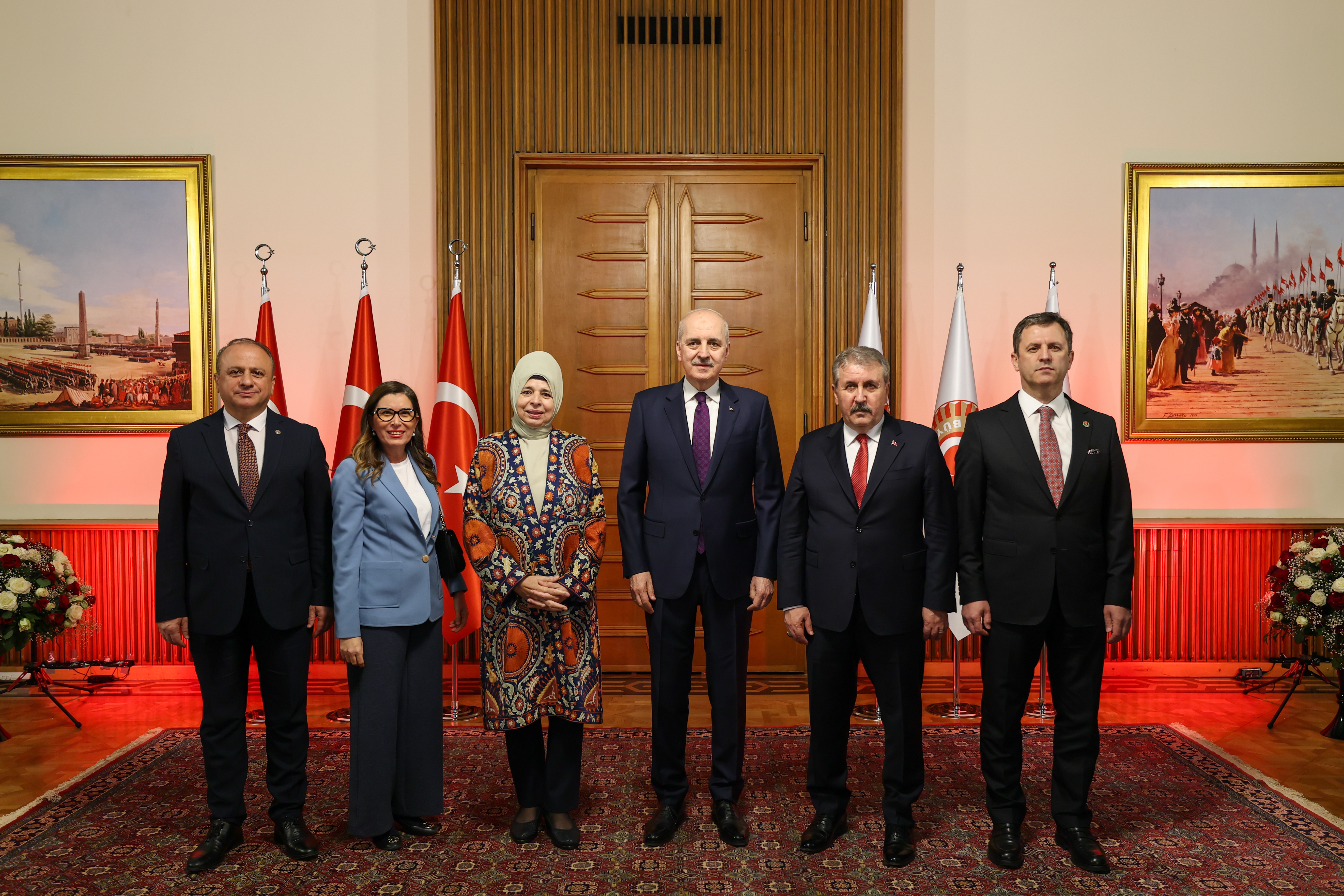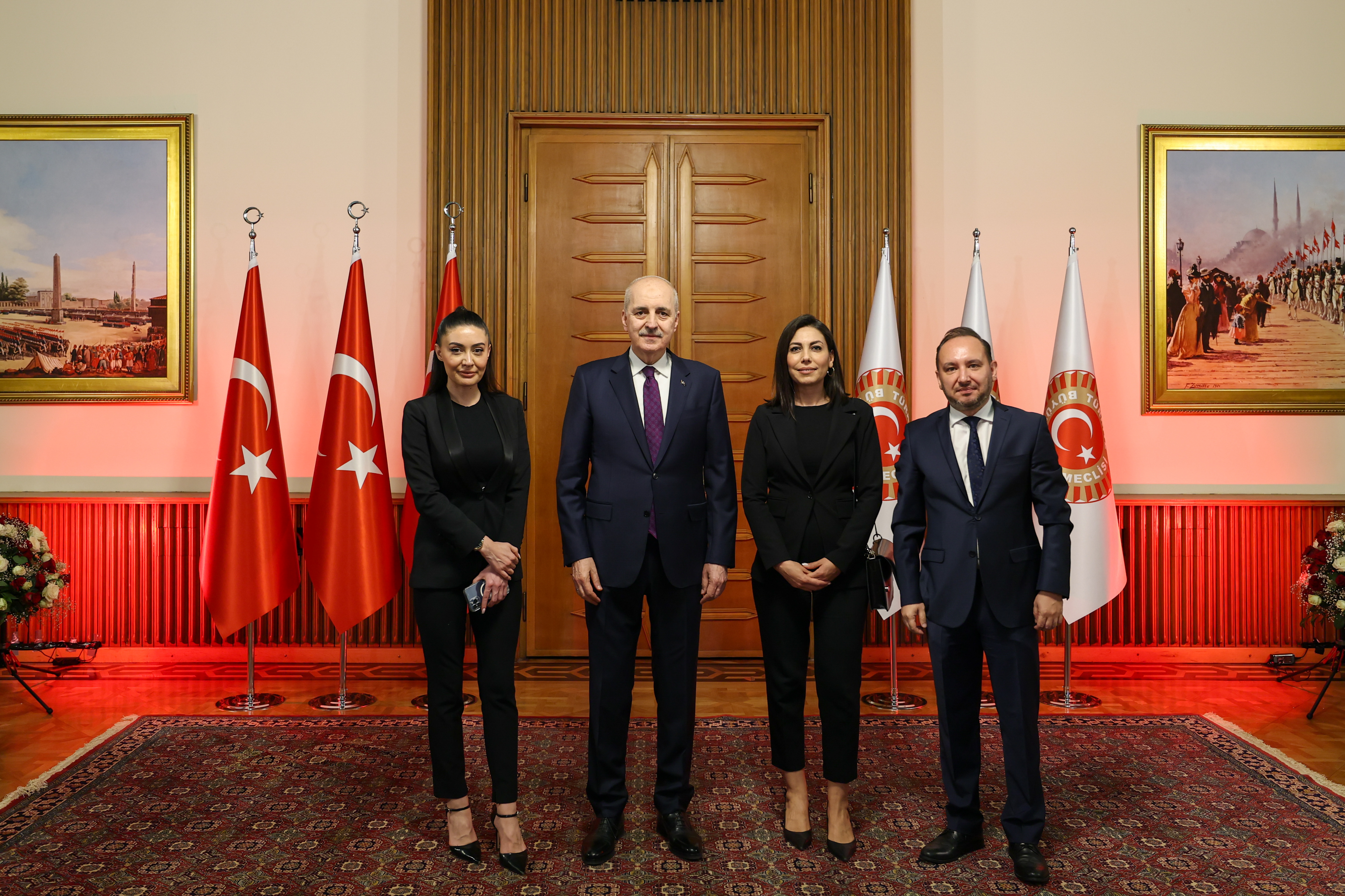 Meclis Tören Salonu'ndaki resepsiyonda Kurtulmuş ve eşi Sevgi Kurtulmuş, davetlileri salonun girişinde karşıladı, tebrikleri kabul etti ve fotoğraf çektirdi.