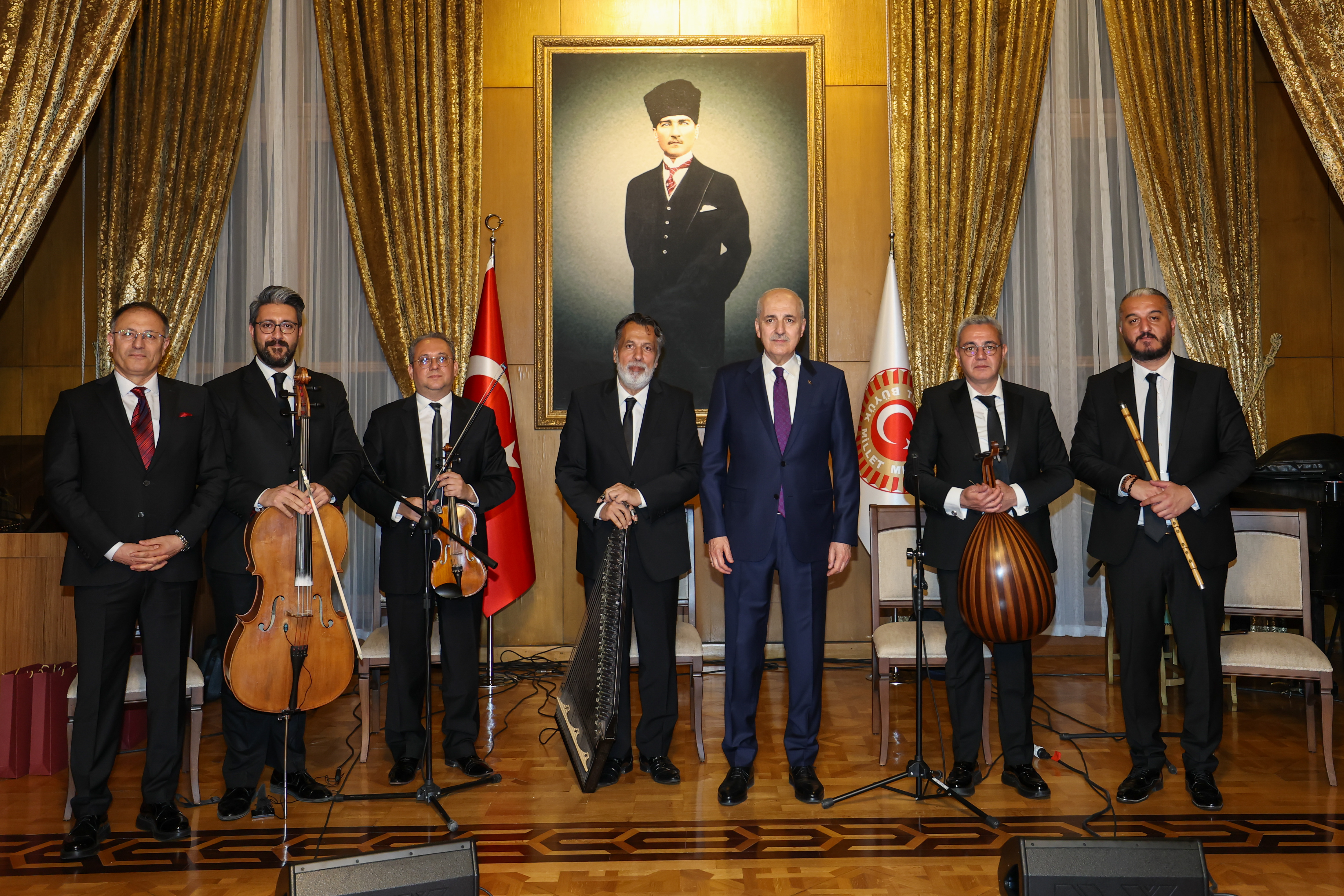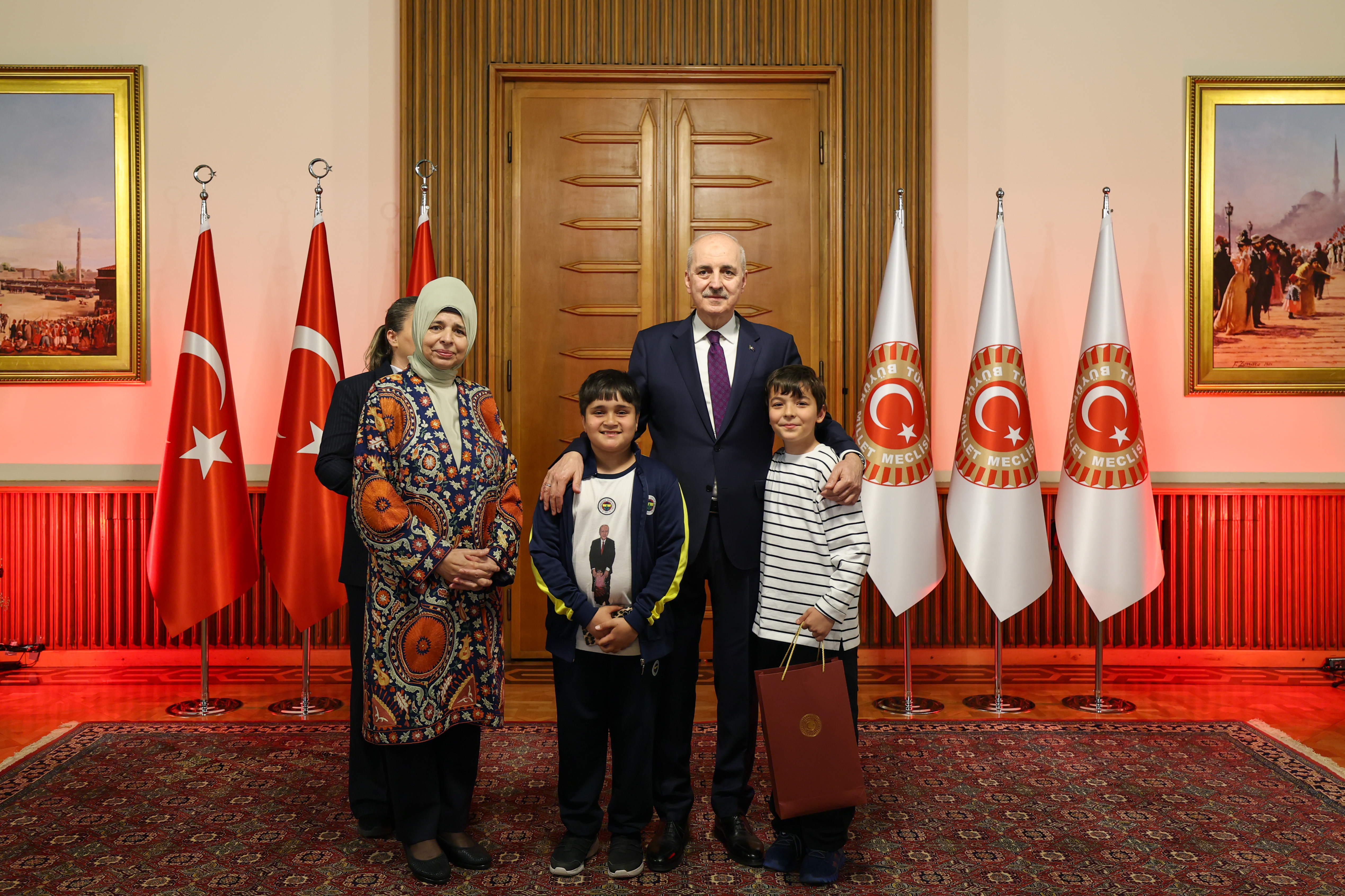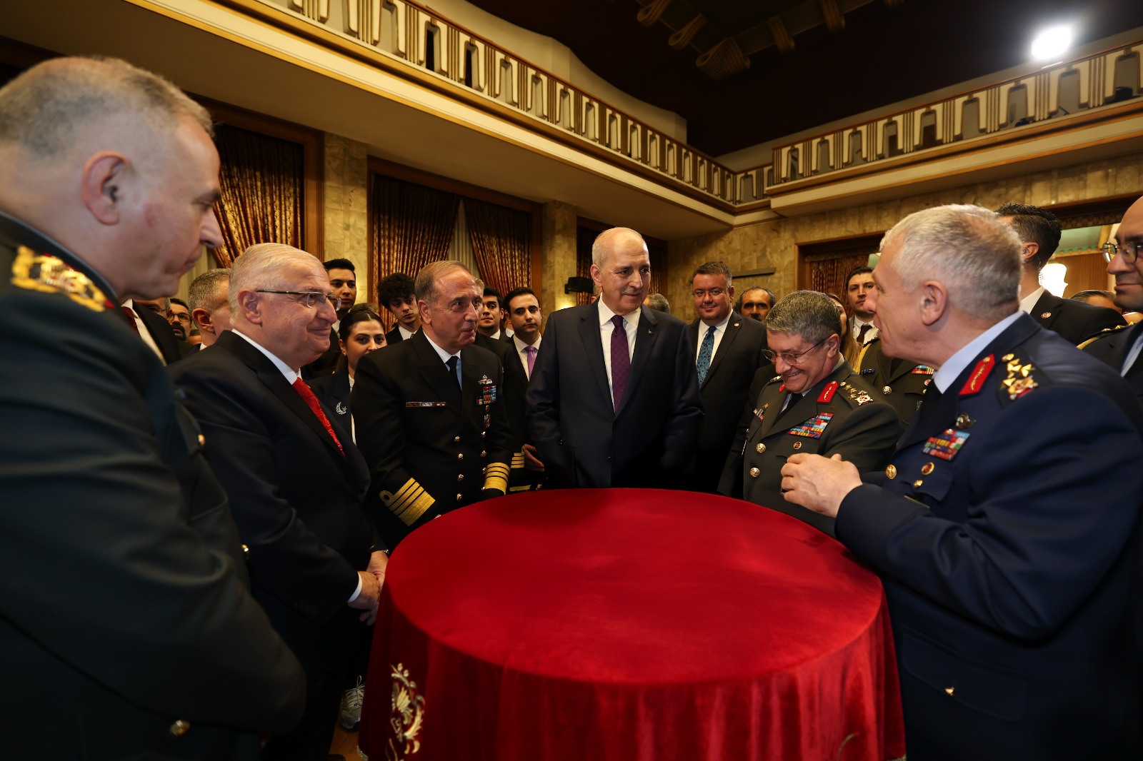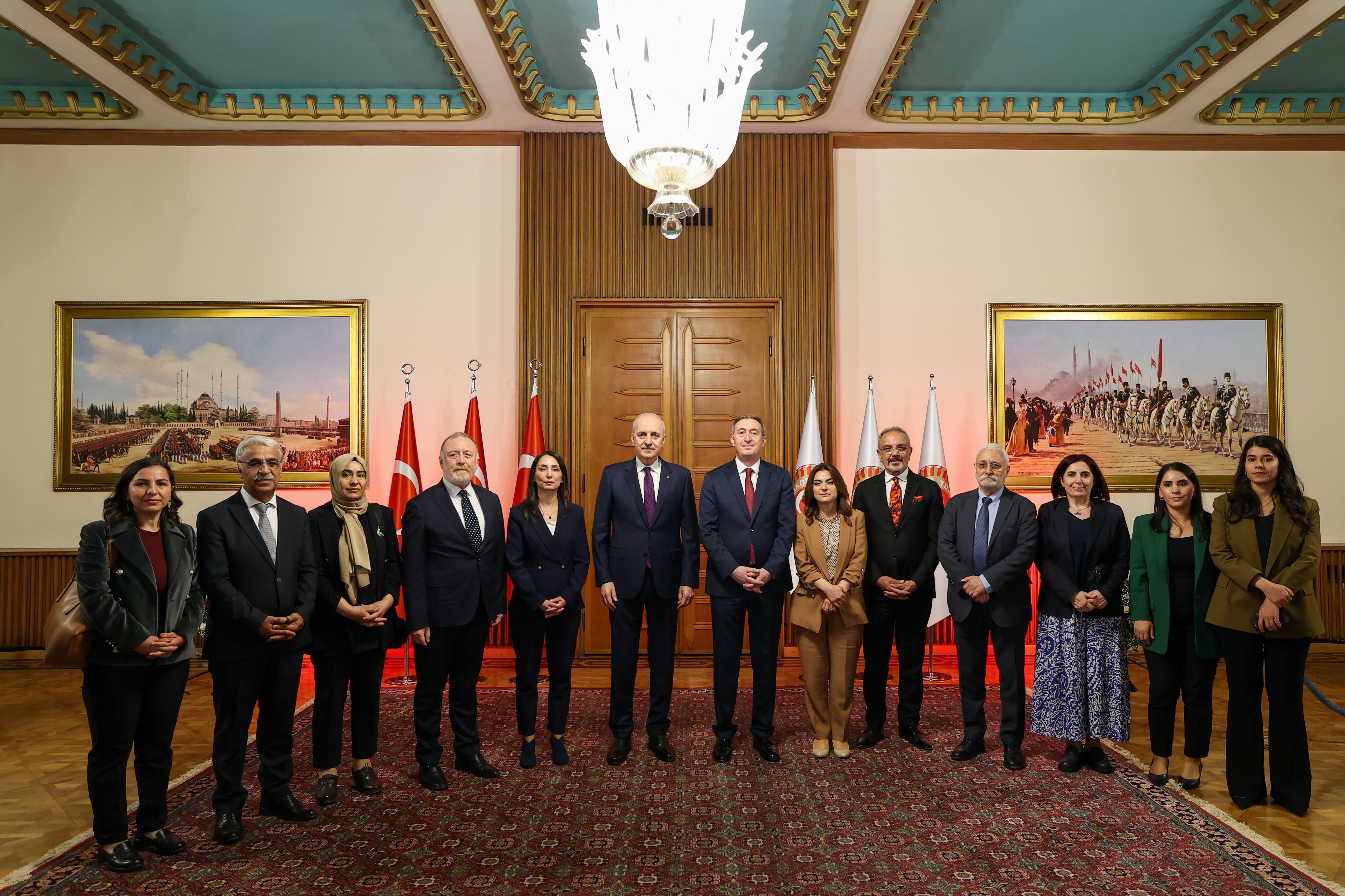 Meclis Tören Salonu'ndaki resepsiyonda Kurtulmuş ve eşi Sevgi Kurtulmuş, davetlileri salonun girişinde karşıladı, tebrikleri kabul etti ve fotoğraf çektirdi.