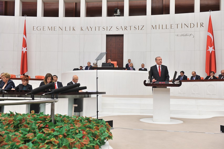 Cumhurbaşkanı Erdoğan, 7 Haziran seçimlerinin, hiçbir siyasi partinin tek başına iktidarı sağlayamadığı bir tabloyla sonuçlandığına işaret ederek, TBMM'nin 25. Dönemi'nin kısa sürdüğünü anımsattı. Erdoğan, sözlerini şöyle sürdürdü: