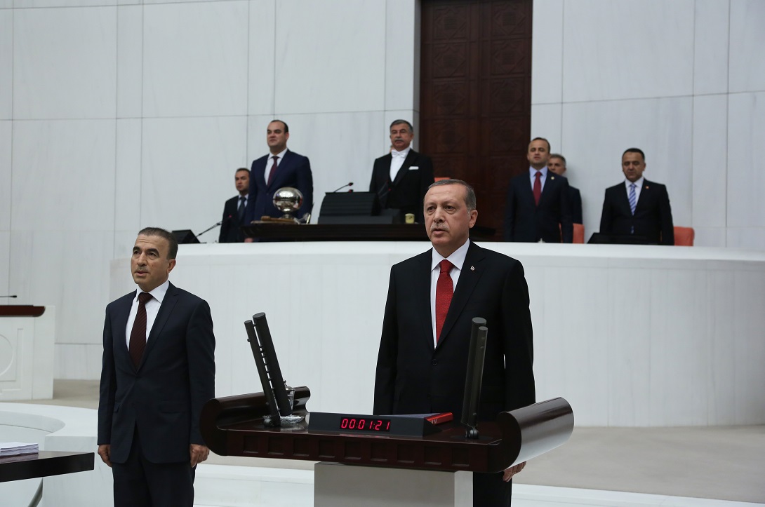 TBMM Başkanı Yılmaz'ın konuşmasının ardından, Cumhurbaşkanı Recep Tayyip Erdoğan, milletvekillerine hitap etmek üzere Genel Kurul salonuna girdi ve ardından İstiklal Marşı okundu.