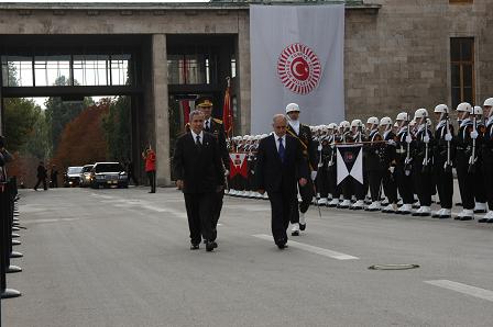 Anıtkabir'de düzenlenen törenin ardından saat 09.07'de TBMM'ye gelen Cumhurbaşkanı Sezer'i, Meclis Başkanı Bülent Arınç, askeri törenle karşıladı.
