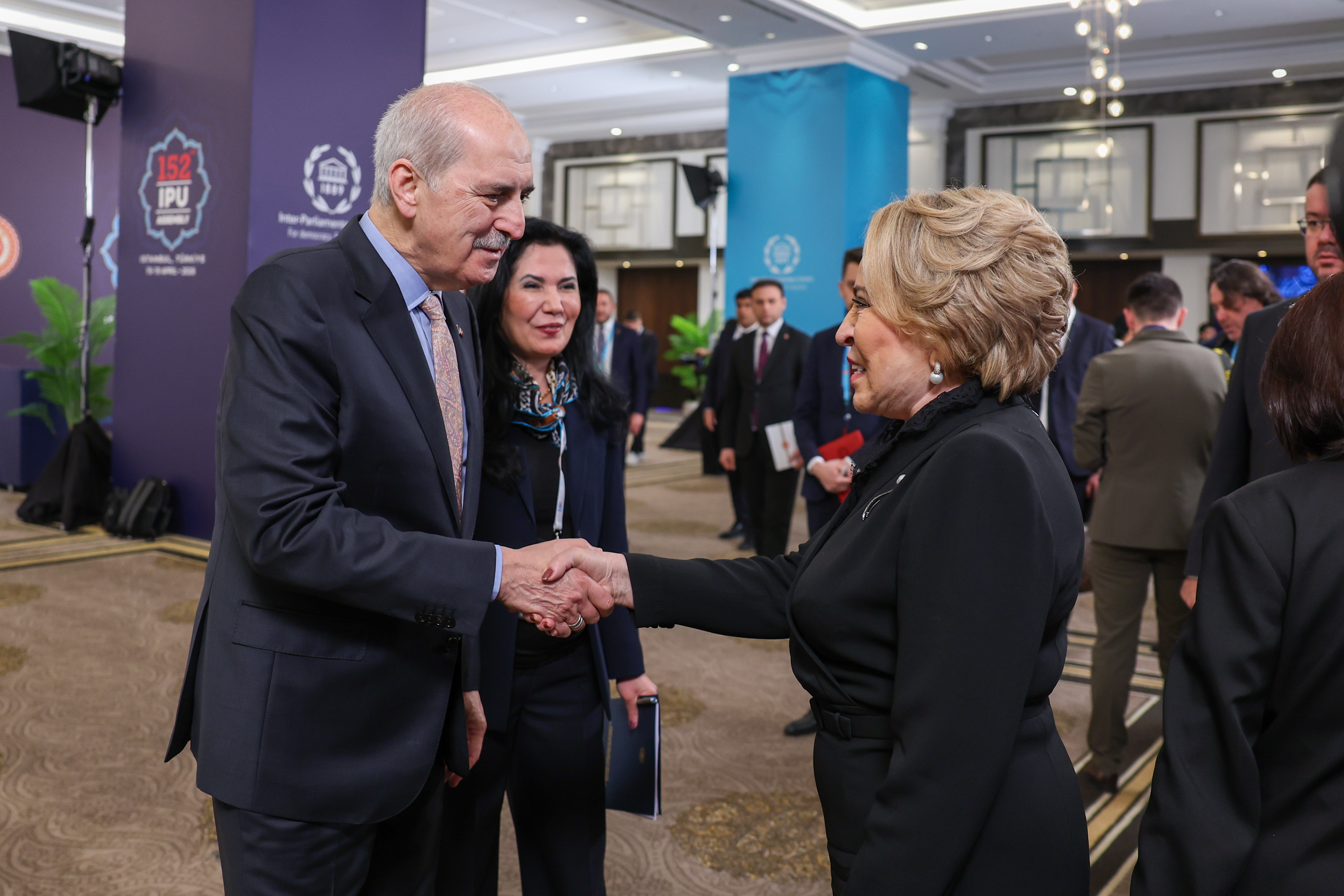 TBMM Başkanı Kurtulmuş, görüşmede, Rusya Federasyon Konseyi Başkanı Matviyenko’yu PAB 152’nci Genel Kurulu dolayısıyla Türkiye’de ağırlamaktan memnuniyet duyduklarını belirterek, buradaki temaslarının ve yürüttükleri müzakerelerin yararlı olması temennisinde bulundu.